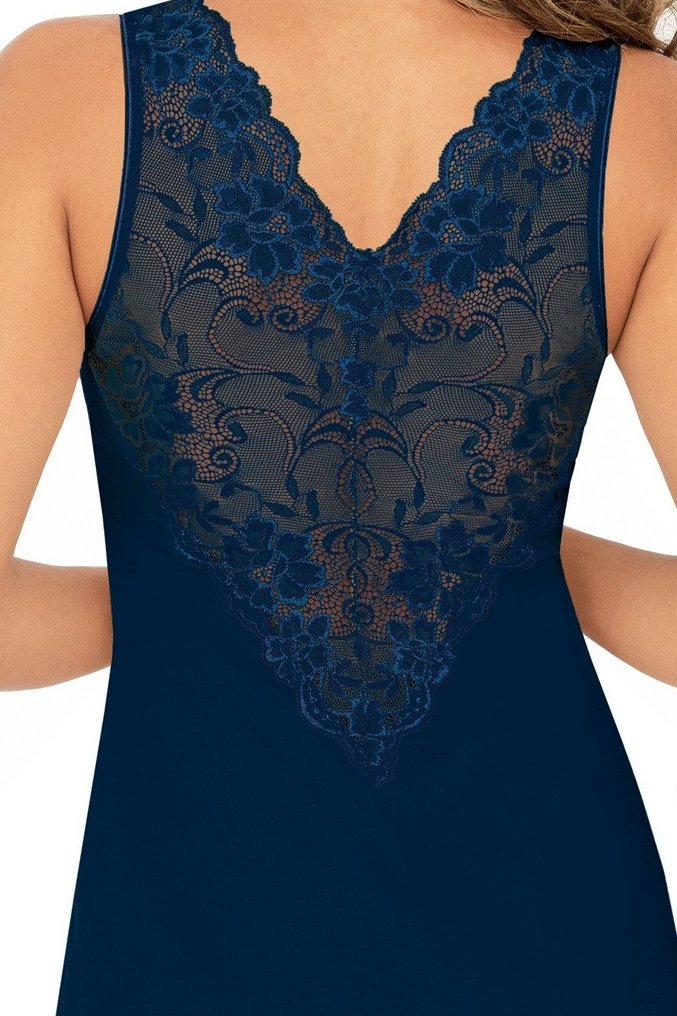 Noční košilka Kristina je symbolem elegance a ženskosti. Kombinuje jemnou viskózu s bohatě zdobenou krajkou, která krásně zvýrazňuje poprsí i záda. Díky pružnému materiálu a preciznímu střihu se dokonale přizpůsobí postavě a poskytuje maximální pohodlí. Ideální pro ženy, které chtějí spojit komfort s atraktivním vzhledem — jak pro klidný spánek, tak i romantické večery.