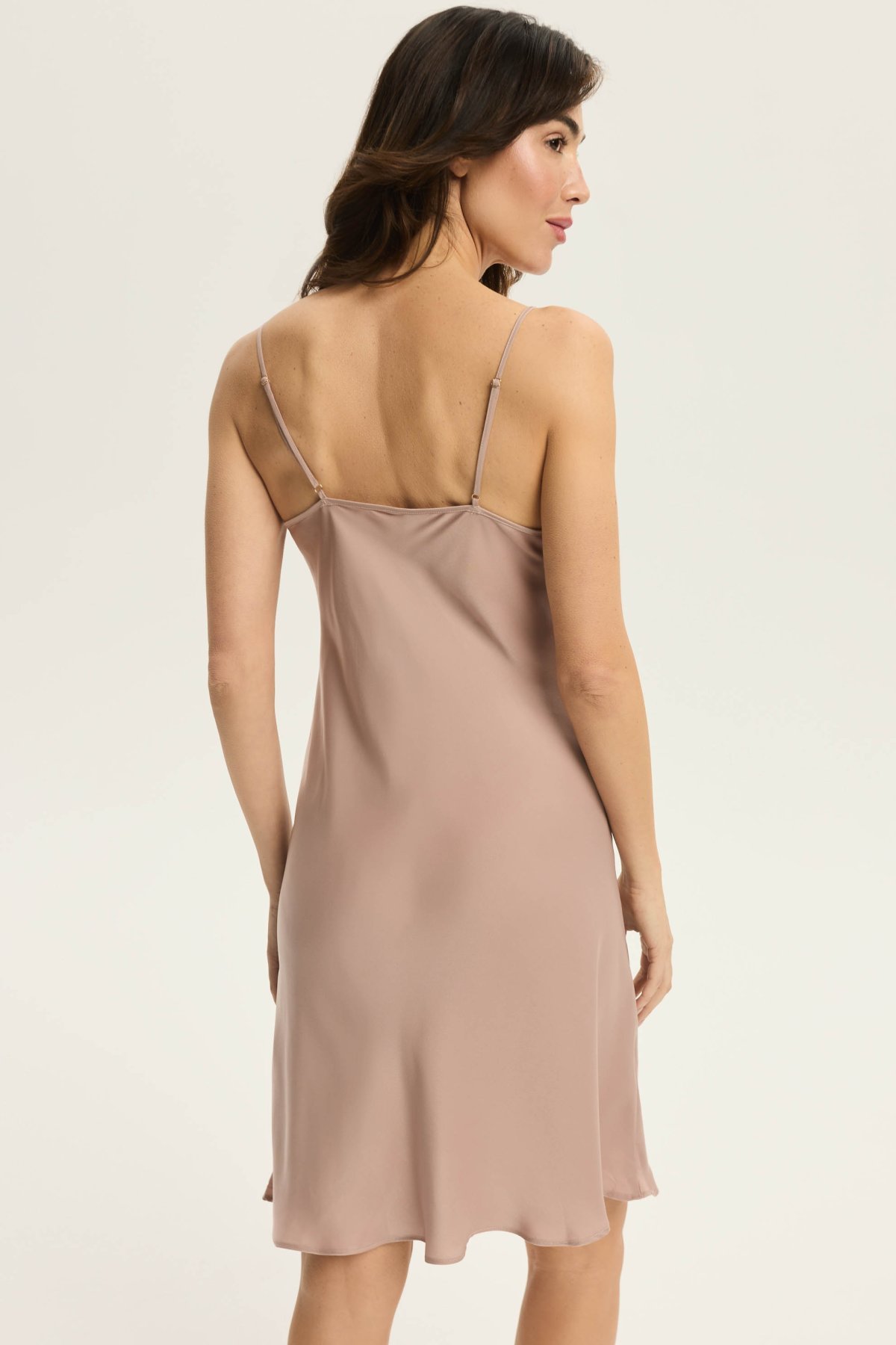 Minimalistický střih nechává vyniknout přirozené linii postavy a působí elegantně. Dekolt s drobným průstřihem ve tvaru kapky přitahuje pozornost a dodává modelu šmrnc. Tenká, nastavitelná ramínka umožní snadné přizpůsobení podle potřeby. Lehký materiál se jemně přizpůsobí pohybu a je příjemný při nošení, což oceníte zejména během teplejších nocí.