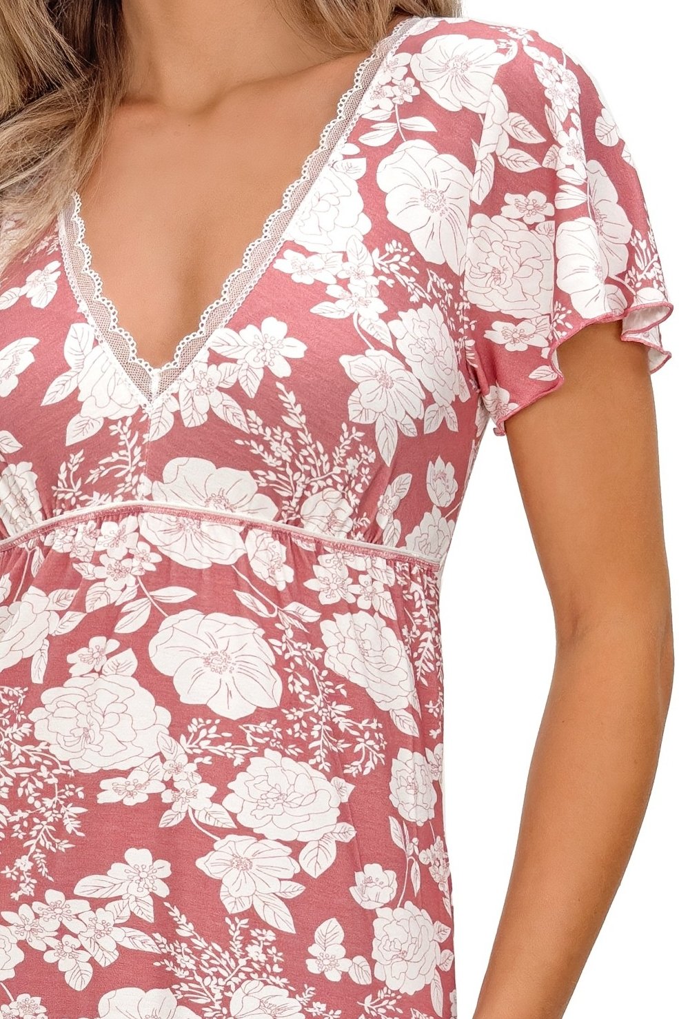 Krátký rukáv a vzdušný střih zaručují komfort i během teplejších nocí — ideální pro ženy, které ocení ženský styl a kvalitu v jednom.