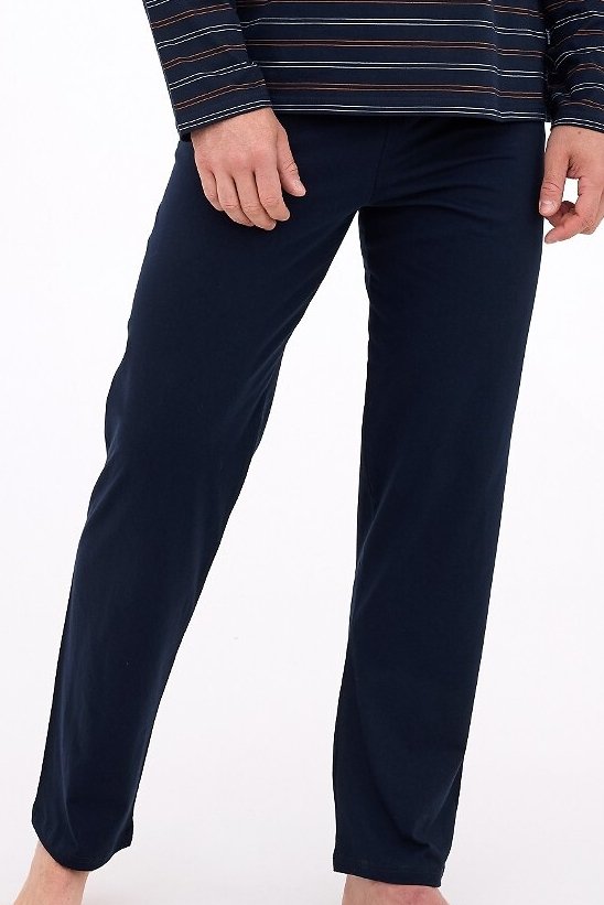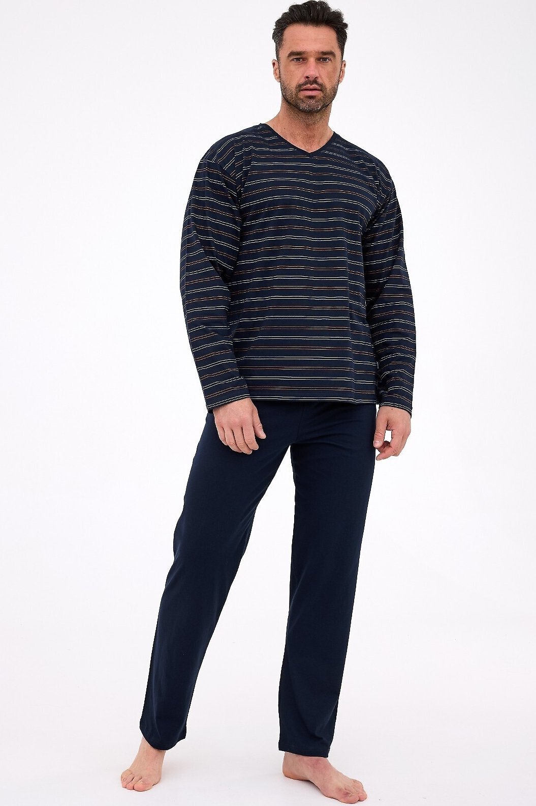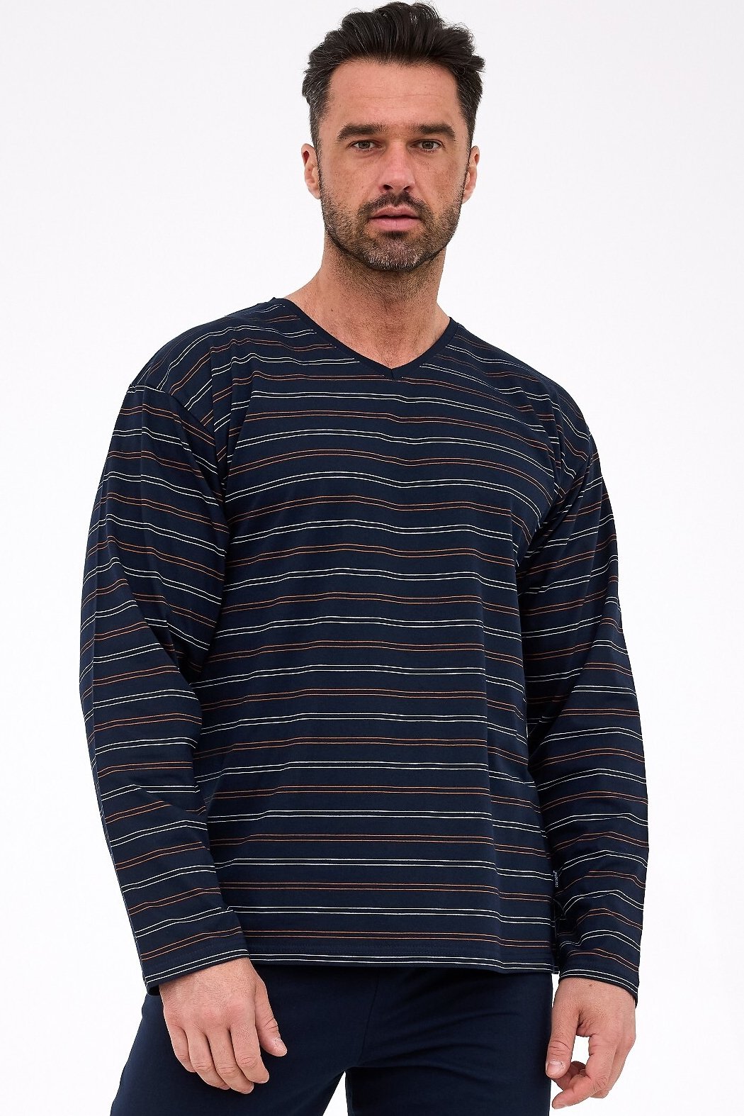 Klasické pánské pyžamo, které vyniká kombinací pohodlí a nadčasového designu. Měkký bavlněný úplet příjemně přiléhá k tělu, zaručuje volnost pohybu a optimální prodyšnost během spánku. Decentní pruhy dodávají tričku elegantní vzhled, díky čemuž je tento model ideální nejen pro spánek, ale i pro domácí relax po dlouhém dni.