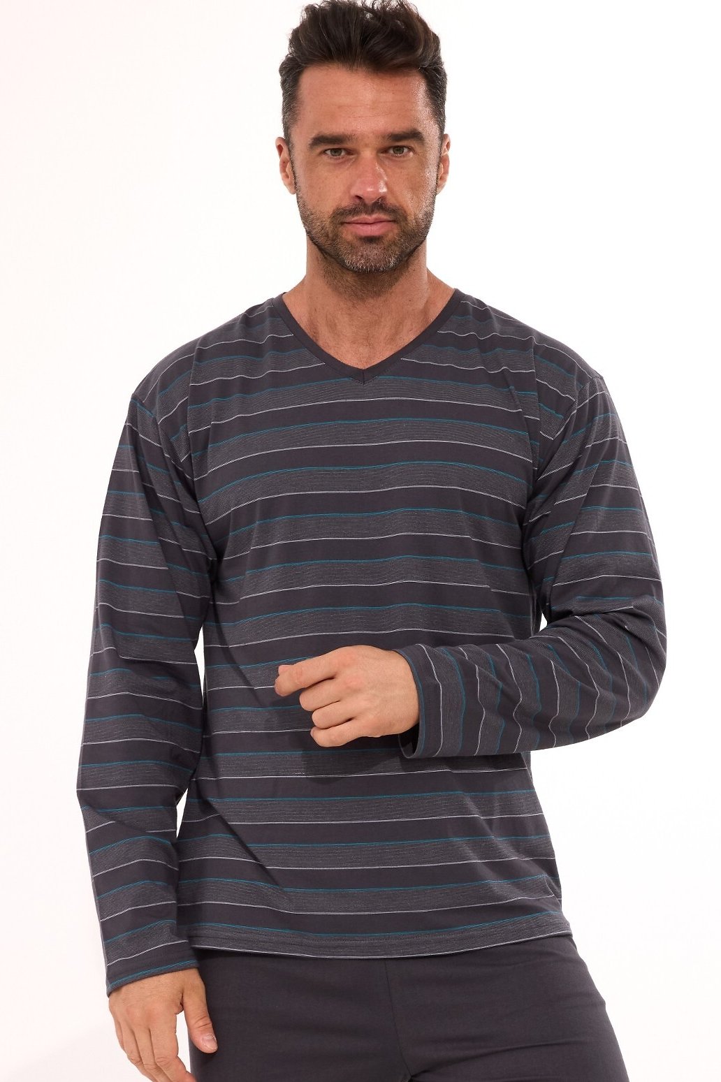 Tričko s dlouhým rukávem a výstřihem do V zdobí decentní proužky, které působí elegantně a nadčasově. Dlouhé kalhoty v jednobarevném provedení doplňují celý outfit. Měkká bavlna se postará o maximální komfort při nošení i spánku – je hebká na dotek, prodyšná a příjemná k pokožce. Tento model je ideální pro chladnější období a díky dárkovému balení potěší i jako stylový dárek pro muže.