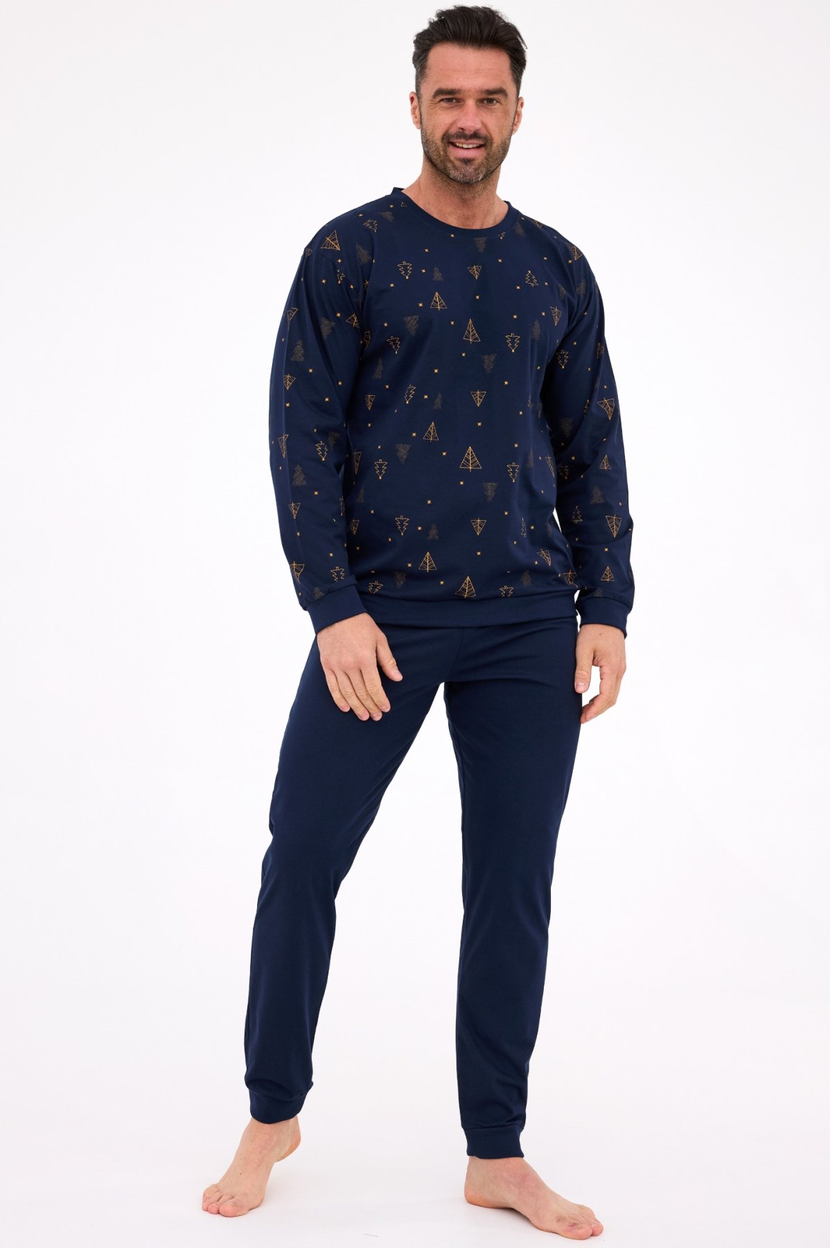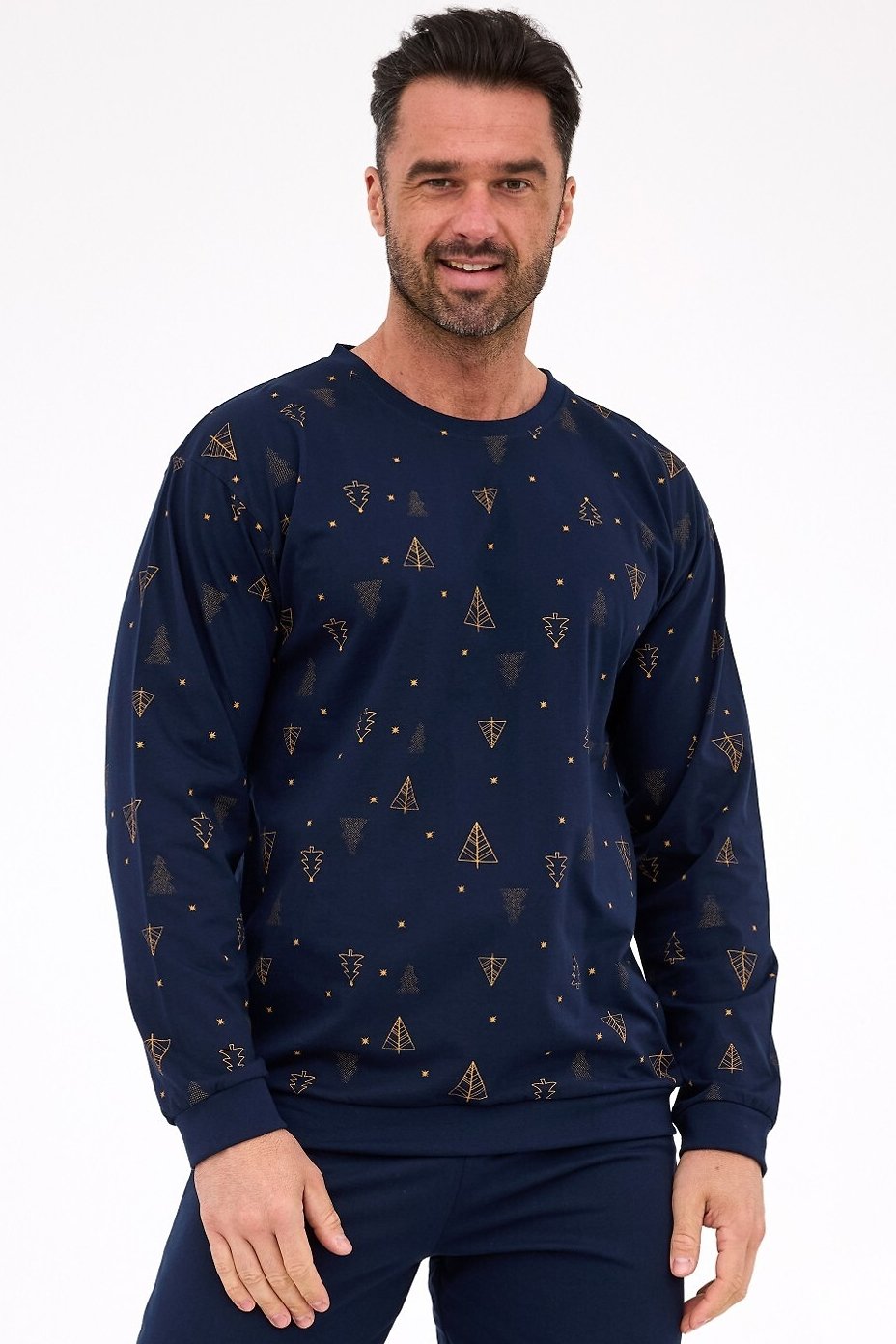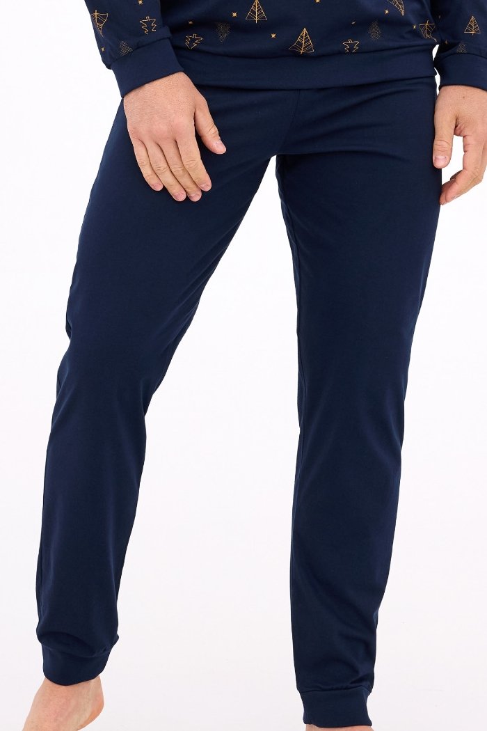 Pánské pyžamo Night 3 je stylová a pohodlná volba pro zimní období a sváteční čas. Vánoční motiv na horním dílu vytváří útulnou atmosféru, zatímco jednobarevné kalhoty dodávají klasický vzhled. Díky elastickému pasu a měkkým manžetám se skvěle přizpůsobí postavě a zajistí volnost pohybu i komfort během spánku.