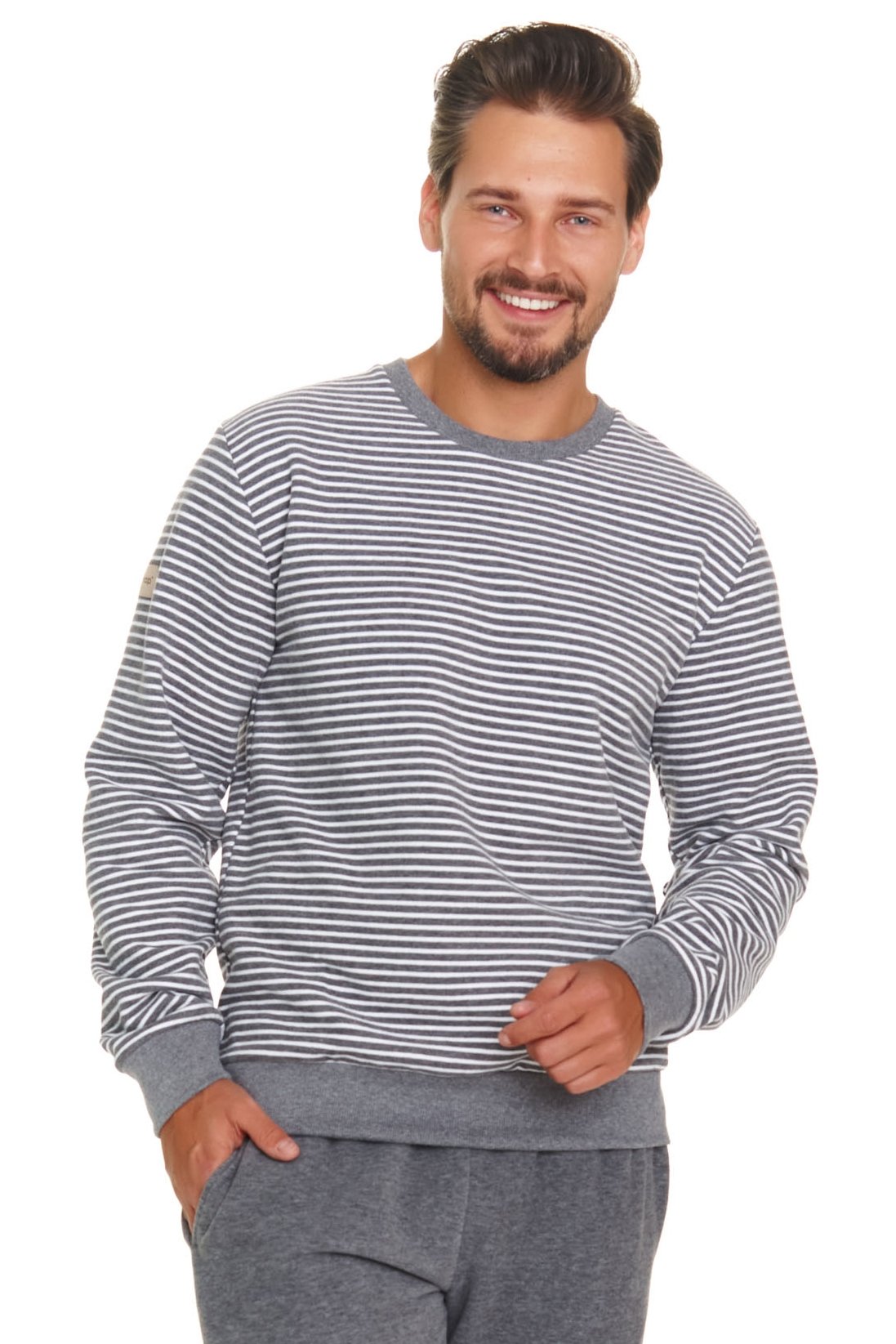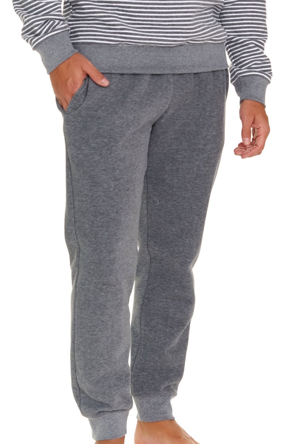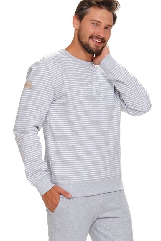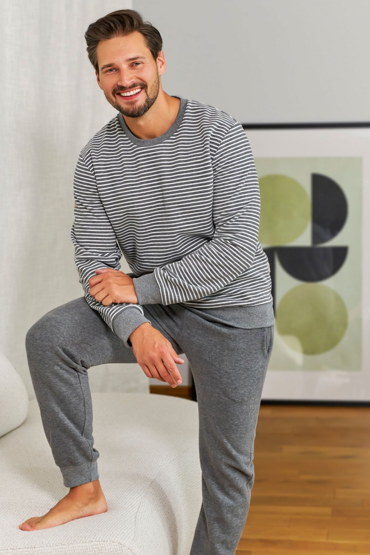 Pánské pyžamo Doctor Nap v šedých tónech s jemnými proužky. Vyrobené z kvalitní směsi bavlny a polyesteru, nabízí příjemný pocit na pokožce a ideální tepelný komfort během chladnějších dnů. Dlouhé rukávy a kalhoty s volnějším střihem zaručují naprostou volnost pohybu, zatímco elastický pas zvyšuje pohodlí při nošení. Materiál je jemně hřejivý, díky čemuž lze pyžamo využít nejen na spaní, ale také jako stylový domácí komplet. Klasický střih, decentní barvy a precizní zpracování dělají z tohoto modelu univerzální volbu pro muže, kteří dávají přednost kvalitě, jednoduchosti a pohodlí.