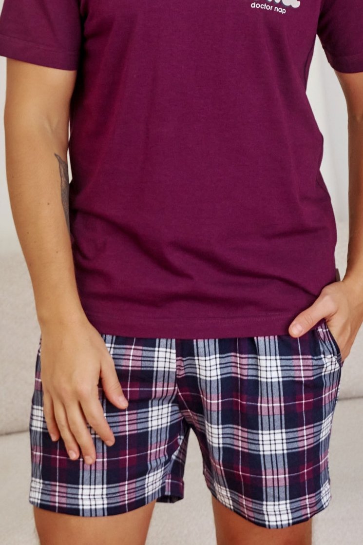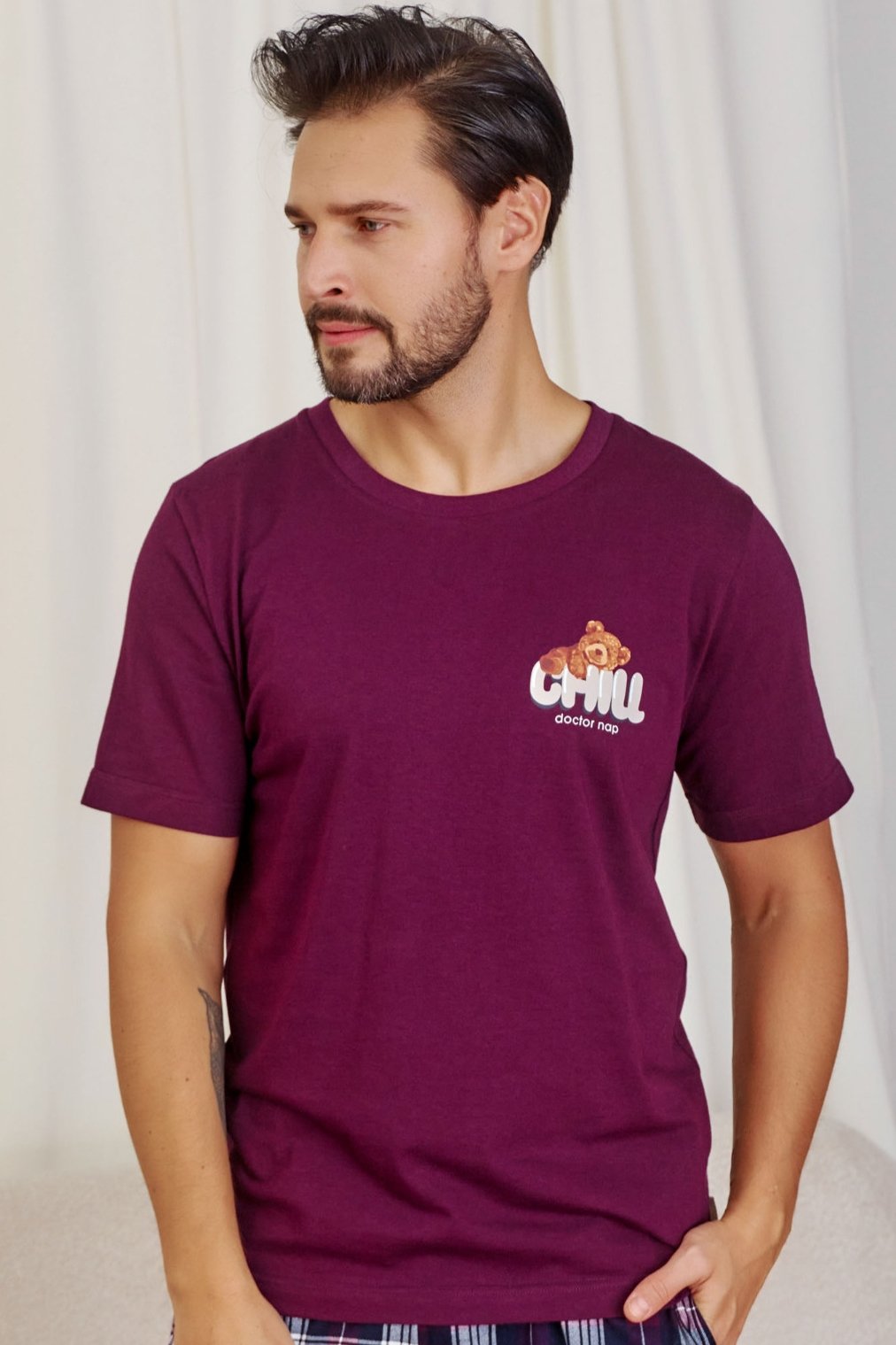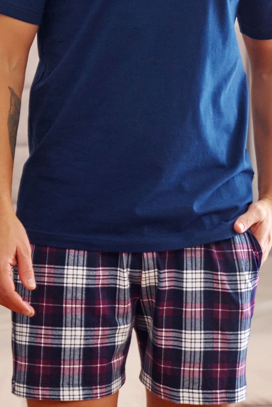 Pánské dvoudílné pyžamo kombinující jednoduchý design a funkční pohodlí. Tričko s potiskem „Chill“ je s krátkým rukávem a kulatým dekoltem. Krátké šortky s kostkovaným vzorem mají elastický pas a praktické kapsy po stranách. Pyžamo má ležérní střih, který neomezuje a je vhodné jak na spaní, tak na domácí relaxaci.