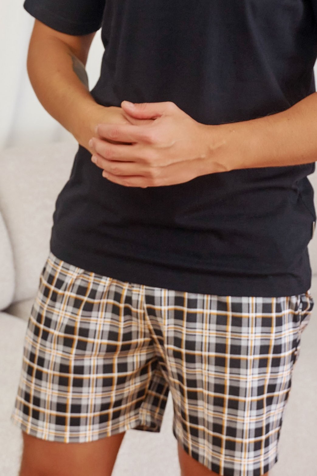 Pánské bavlněné pyžamo kombinující jednoduchý design a praktické provedení. Tričko s nápisem „Get Some Rest“ je s krátkým rukávem a kulatým dekoltem. Kostkované šortky s elastickým pasem a kapsami poskytují volnost pohybu a pohodlí během spánku i domácího odpočinku. Kvalitní materiál a pečlivé zpracování zaručují dlouhou životnost a stabilitu tvaru.