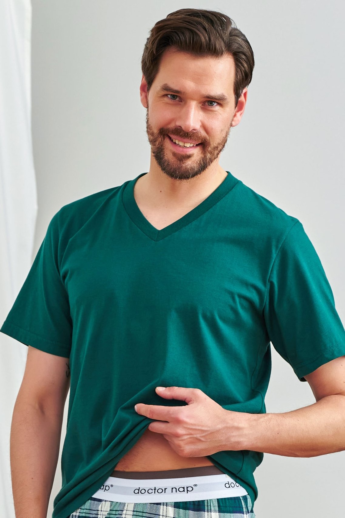 - tričko s krátkým rukávem a výstřihem do „V“ v zeleném tónu