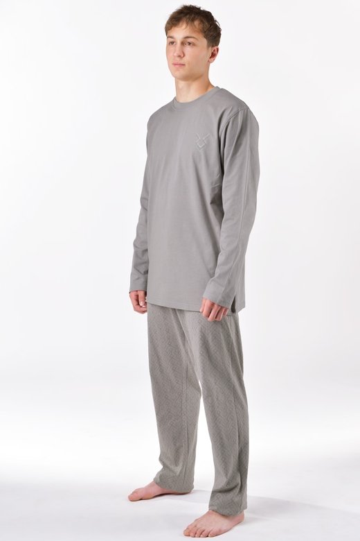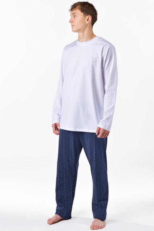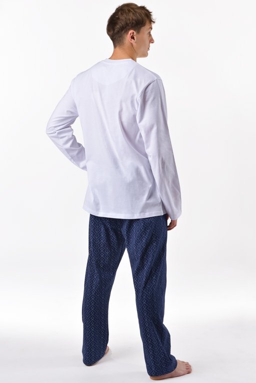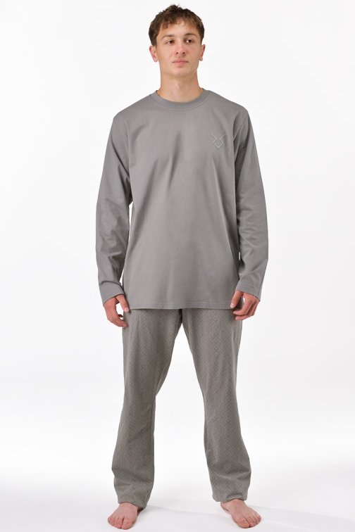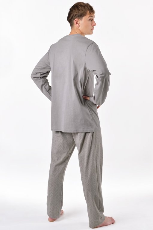 Toto pánské pyžamo je ideální volbou pro muže, kteří oceňují jednoduchost, kvalitu a pohodlí. Vyrobené ze 100% bavlny, poskytuje příjemný pocit na pokožce a zaručuje výbornou prodyšnost i během delšího nošení. Měkký úplet a volný střih zajišťují naprostou volnost pohybu, takže se budete cítit pohodlně po celou noc. Dlouhé kalhoty s jemným potiskem dodávají pyžamu elegantní vzhled, zatímco tričko s decentním motivem na hrudi podtrhuje nadčasový styl. Skvělé pro chladnější období i domácí relax po náročném dni.