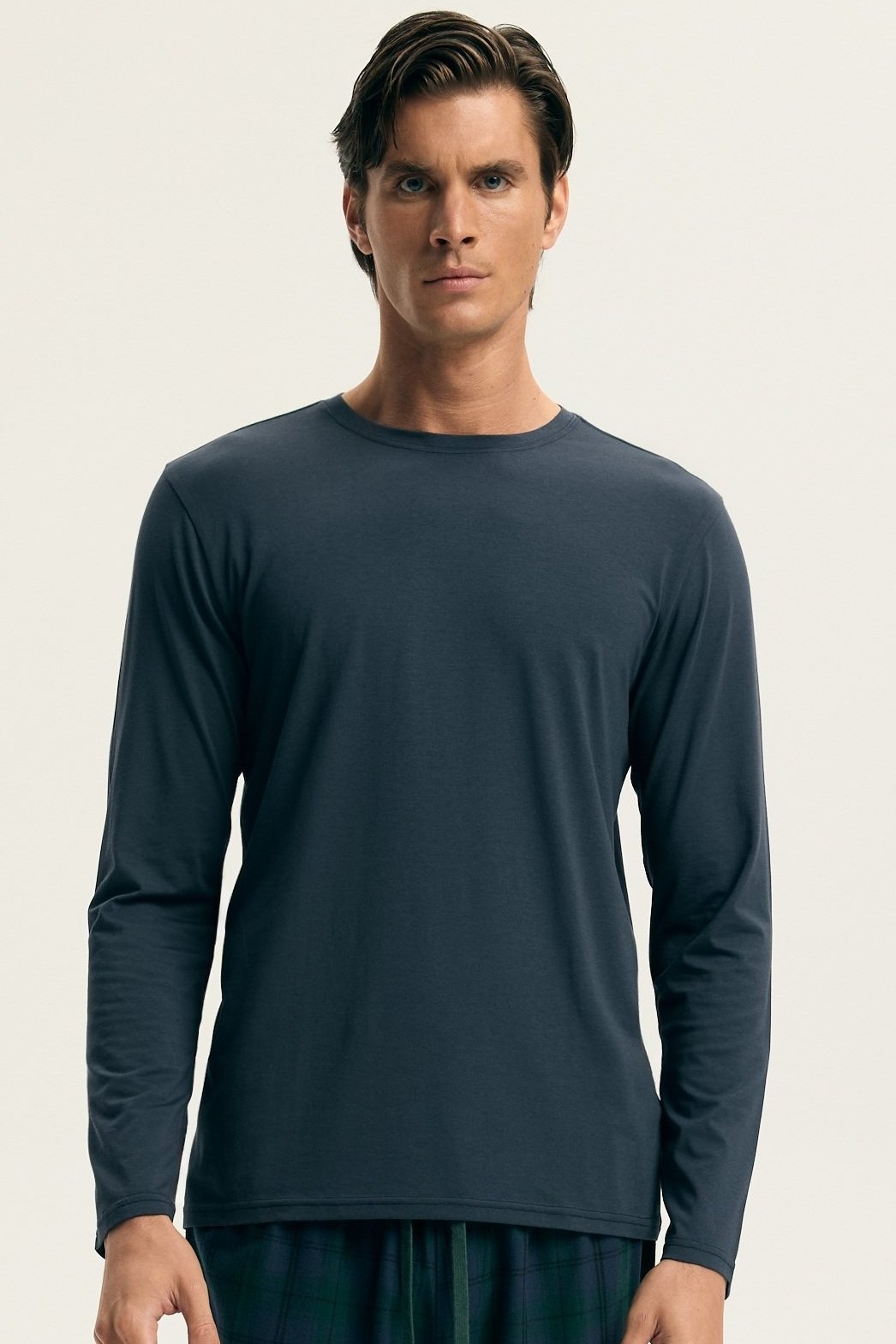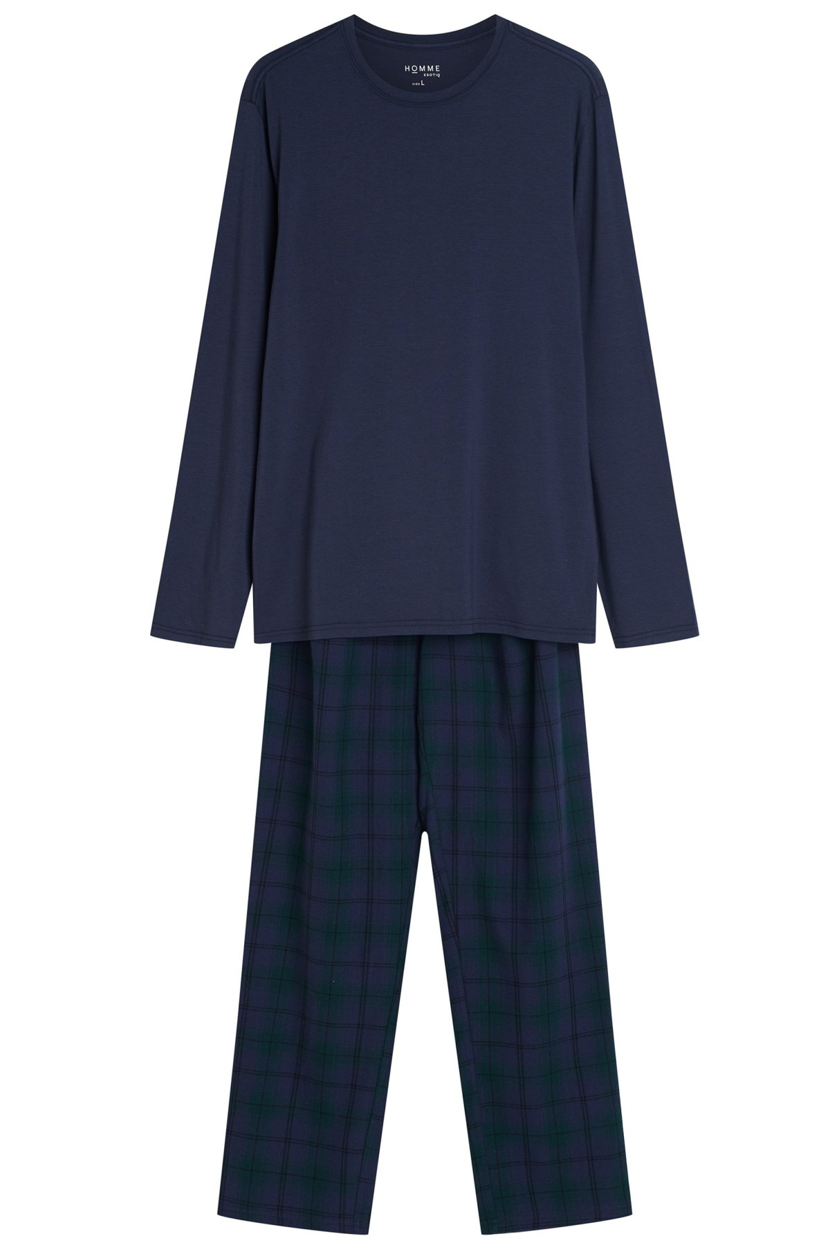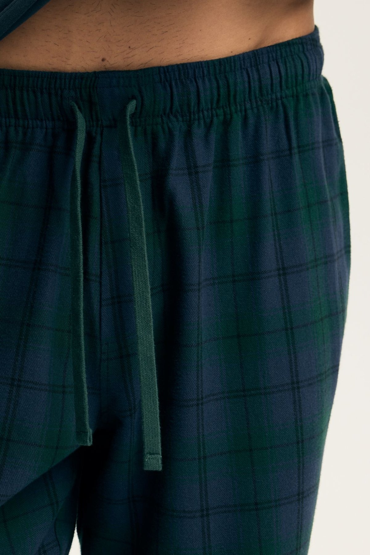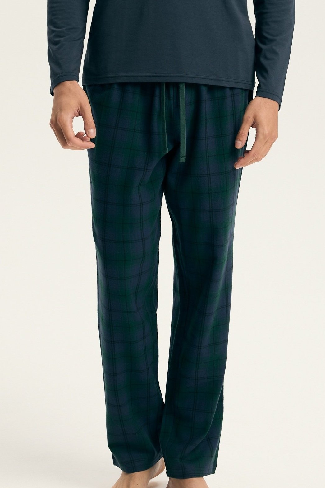 Pánské pyžamo Annex představuje ideální rovnováhu mezi komfortem a kvalitou. Jednobarevný horní díl z bavlny a modalu je výjimečně měkký, pružný a prodyšný, díky čemuž se dokonale přizpůsobí tělu a poskytne maximální pohodlí během noci. Spodní část tvoří kostkované kalhoty z přírodní bavlny, které umožňují pokožce volně dýchat a přinášejí příjemný pocit svěžesti. Elastický pas doplňují stahovací šňůrky.