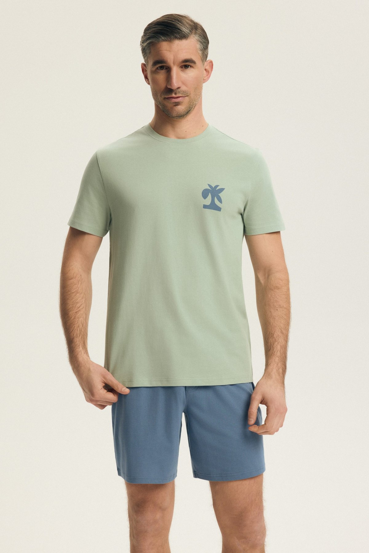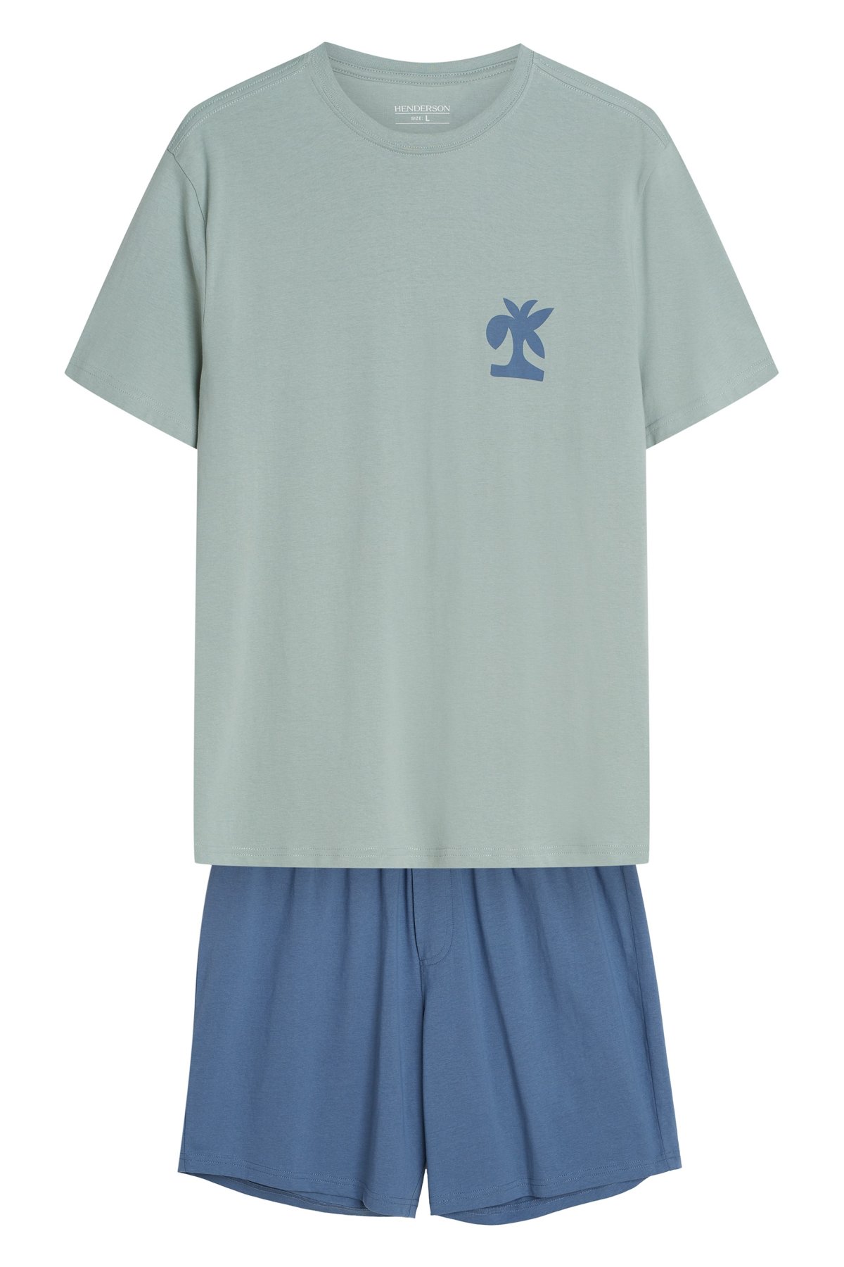 Pánské pyžamo Henderson Break je pohodlná dvoudílná souprava pro spánek i domácí odpočinek. Tvoří ho tričko s krátkým rukávem a šortky s krátkými nohavicemi, takže se hodí hlavně na teplejší období nebo pro ty, kdo dávají přednost lehkému pyžamu. Barevná kombinace působí svěže a uvolněně.