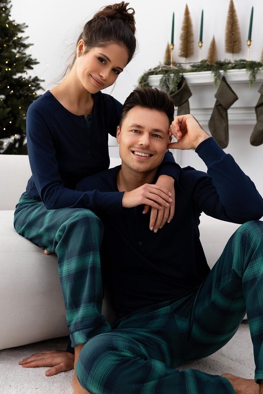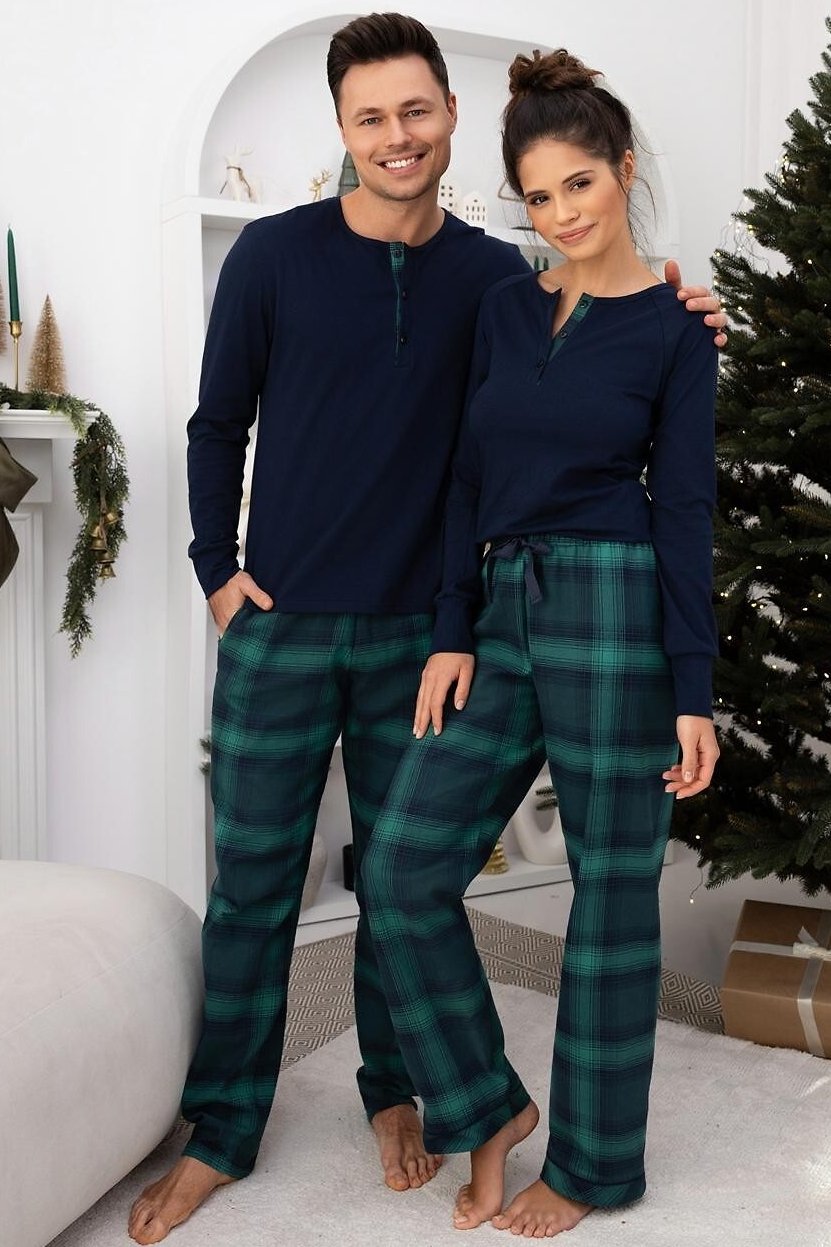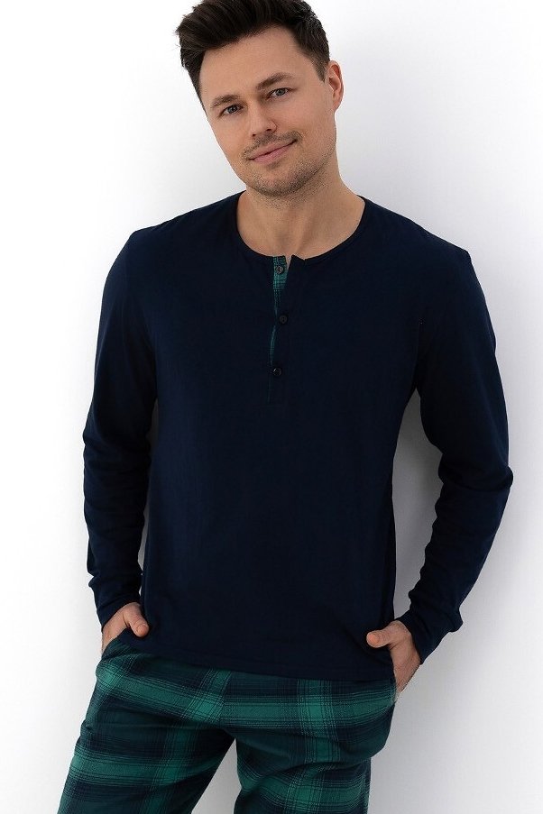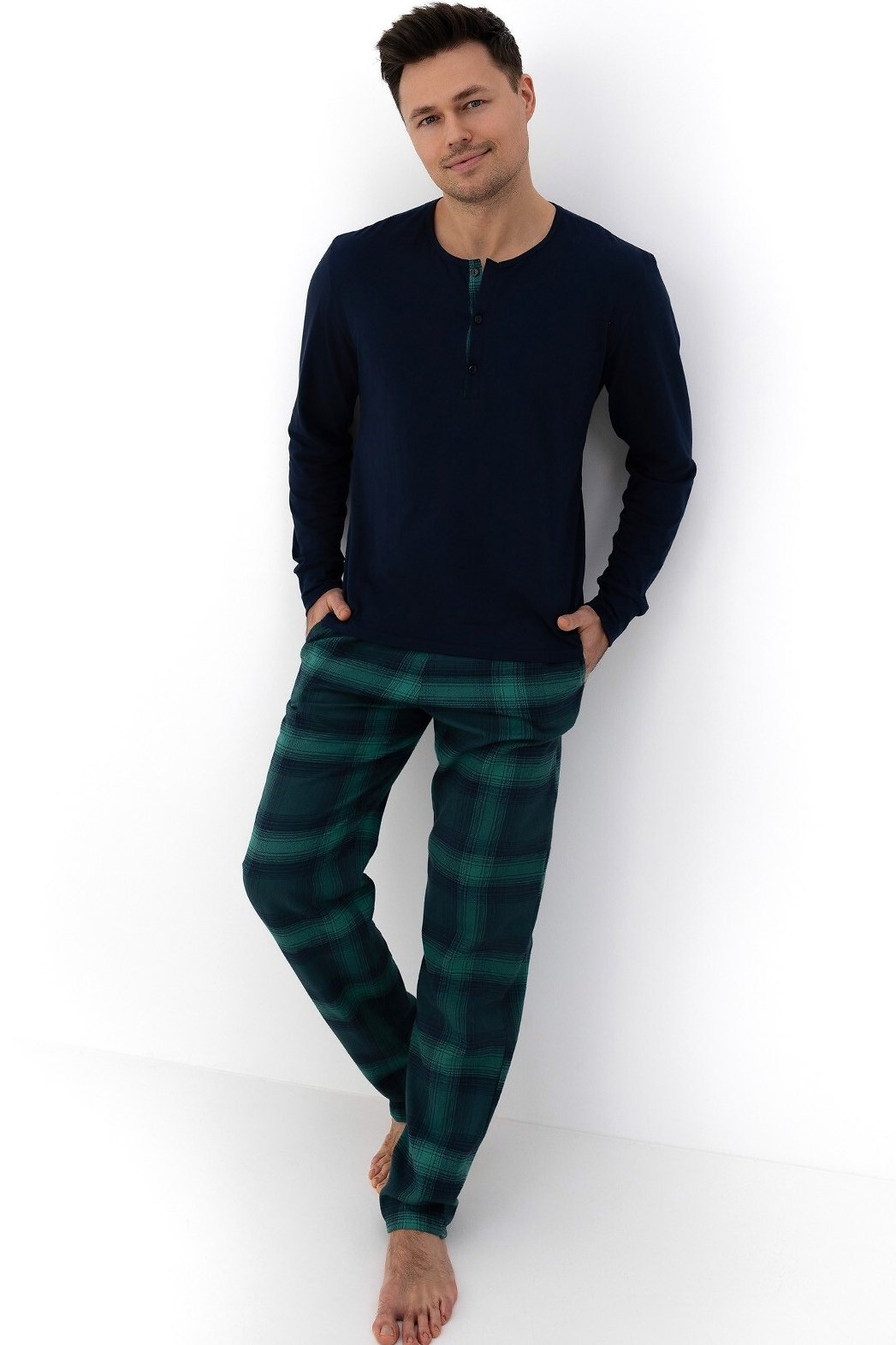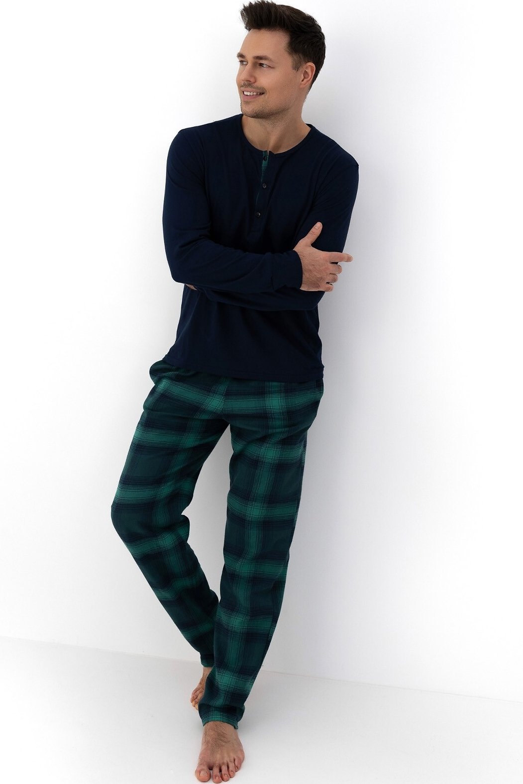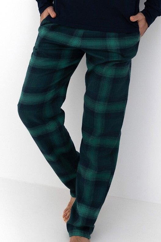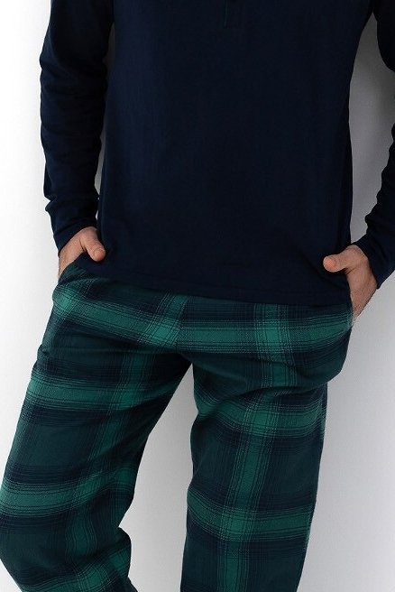 Pánské pyžamo Luke spojuje klasiku, kvalitu a maximální komfort. Hladké tričko s dlouhým rukávem a ležérním výstřihem na knoflíky působí elegantně a uvolněně zároveň. Dlouhé kalhoty v zeleném kostkovaném vzoru dodávají celému kompletu stylový vzhled a díky praktickým kapsám i pružnému pasu se pyžamo pohodlně nosí při spánku i domácím odpočinku. Měkká bavlna zaručuje optimální prodyšnost.