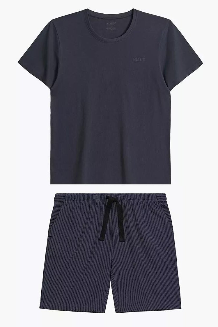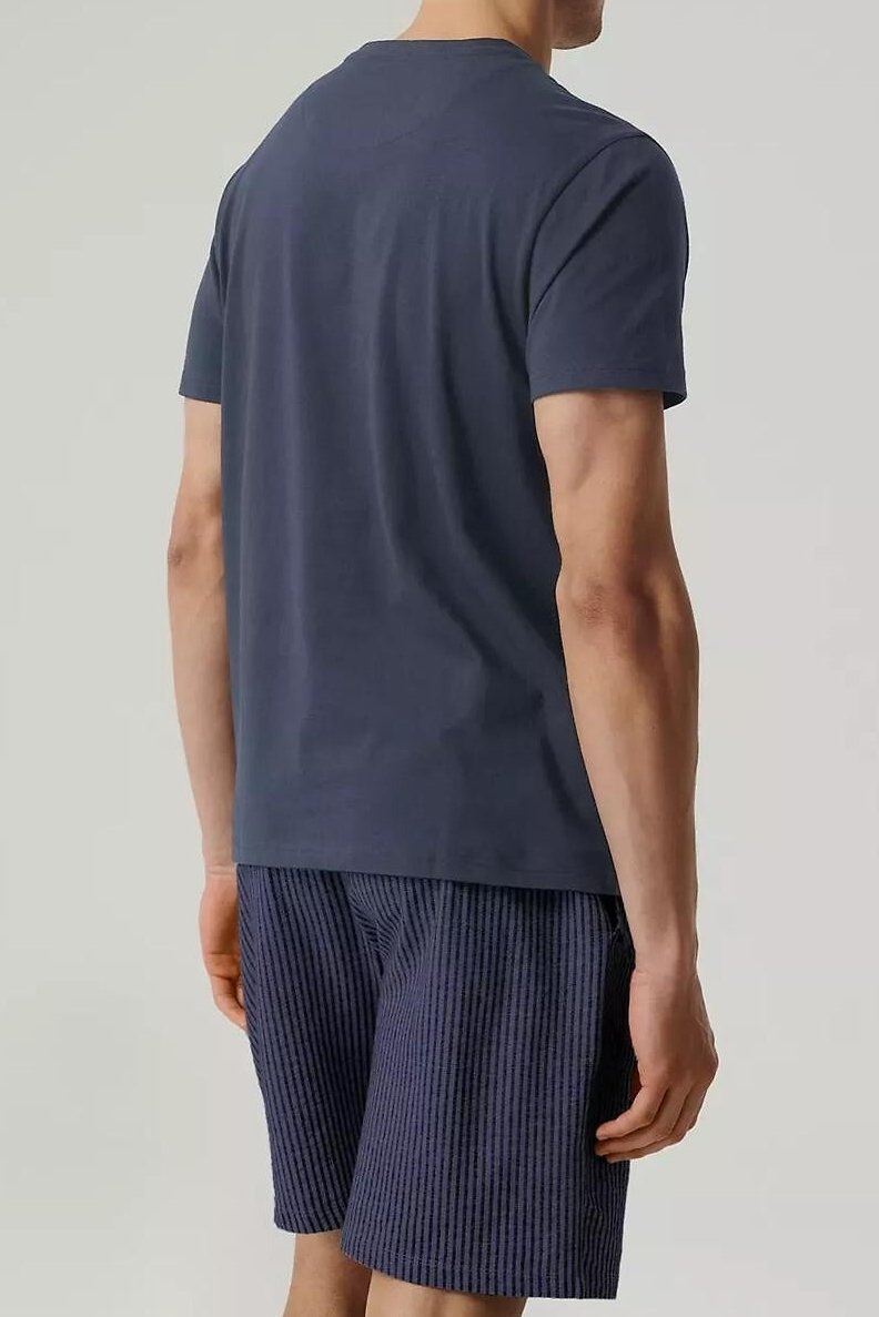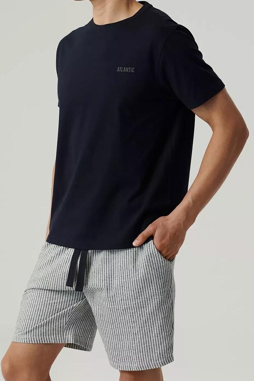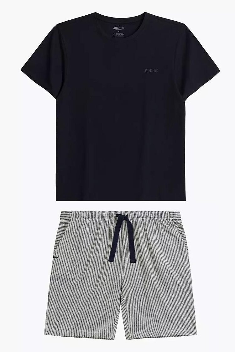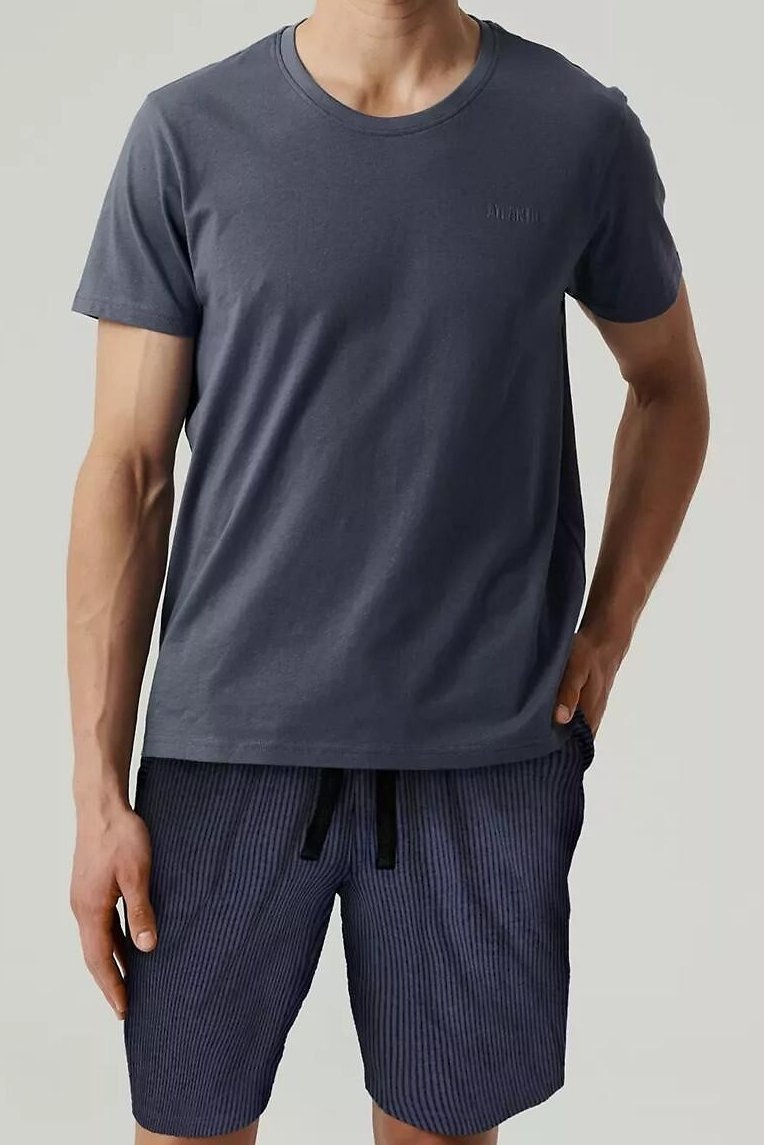 Letní pyžamo, které vypadá upraveně a přitom zůstává maximálně pohodlné. Tričko příjemně sedí na těle a proužkované šortky dodají setu čistý, sportovně-ležérní vzhled. Prodyšná (pletenina) pomáhá udržet komfort i v teplejších nocích, takže se budete cítit svěže při spánku i při ranní kávě. V pase si šortky snadno přizpůsobíte zavazováním na šňůrky – drží, ale netlačí. Skvělý kousek na dovolenou, víkendy i běžné domácí nošení.