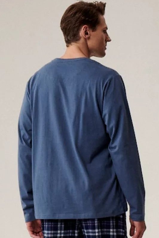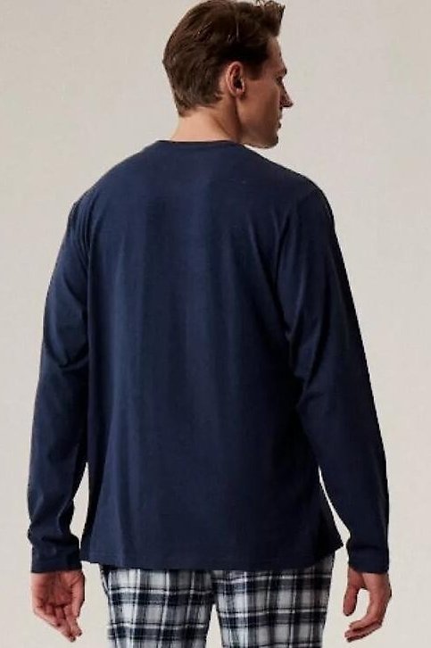 Pánské pyžamo Atlantic NMP-393 je perfektní pro chladnější večery i pohodlný spánek. Horní díl z jemné bavlněné tkaniny s efektem „peach effect“ je mimořádně měkký a příjemný na dotek. Flanelové kalhoty s klasickým kostkovaným vzorem dodávají pyžamu hřejivý a nadčasový charakter. Kalhoty mají v pase praktickou šňůrku pro úpravu obvodu a boční kapsy, které zvyšují komfort nošení. Kombinace pohodlí, kvality a stylového designu činí tento model ideálním pyžamem pro muže, kteří oceňují funkčnost i estetiku.