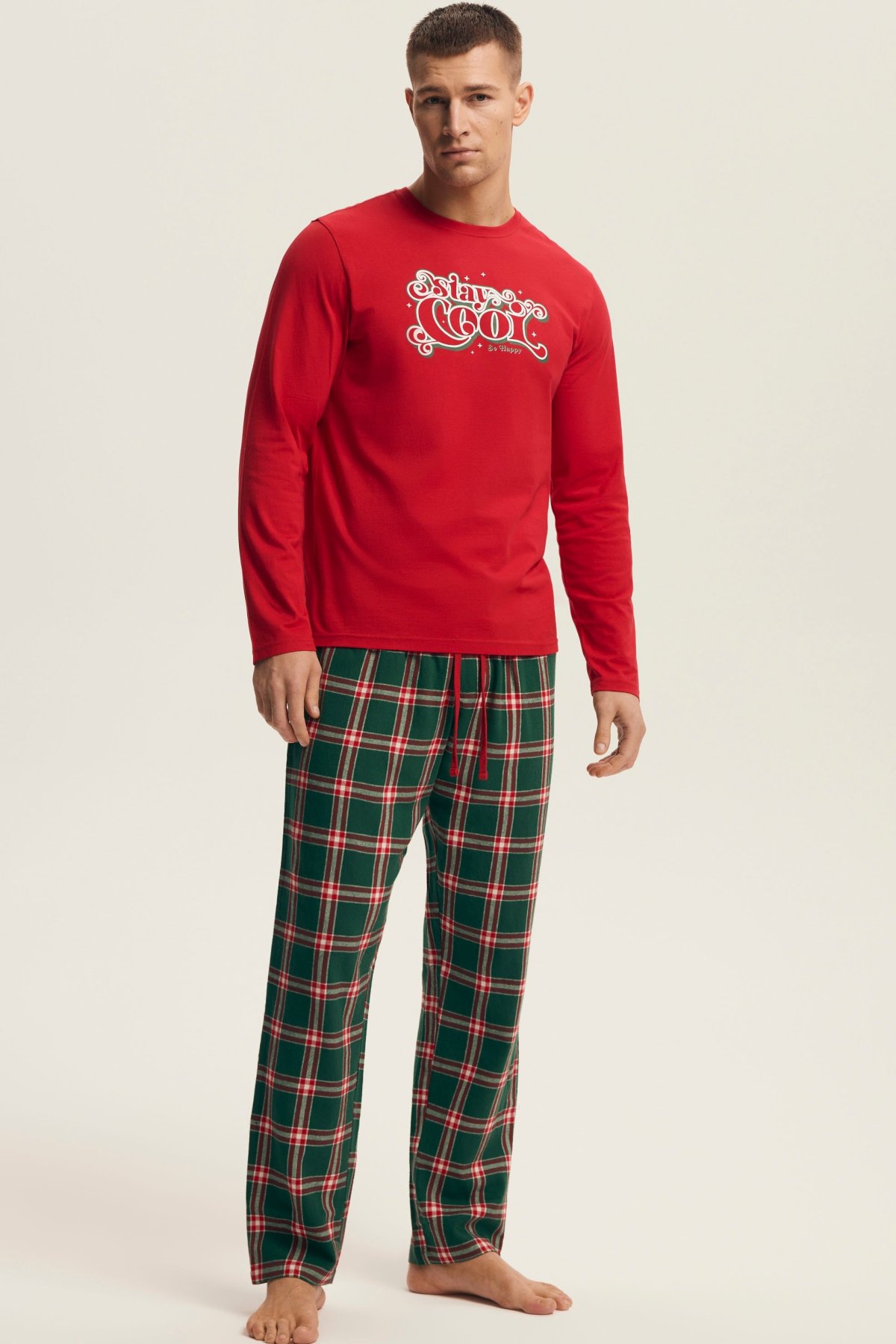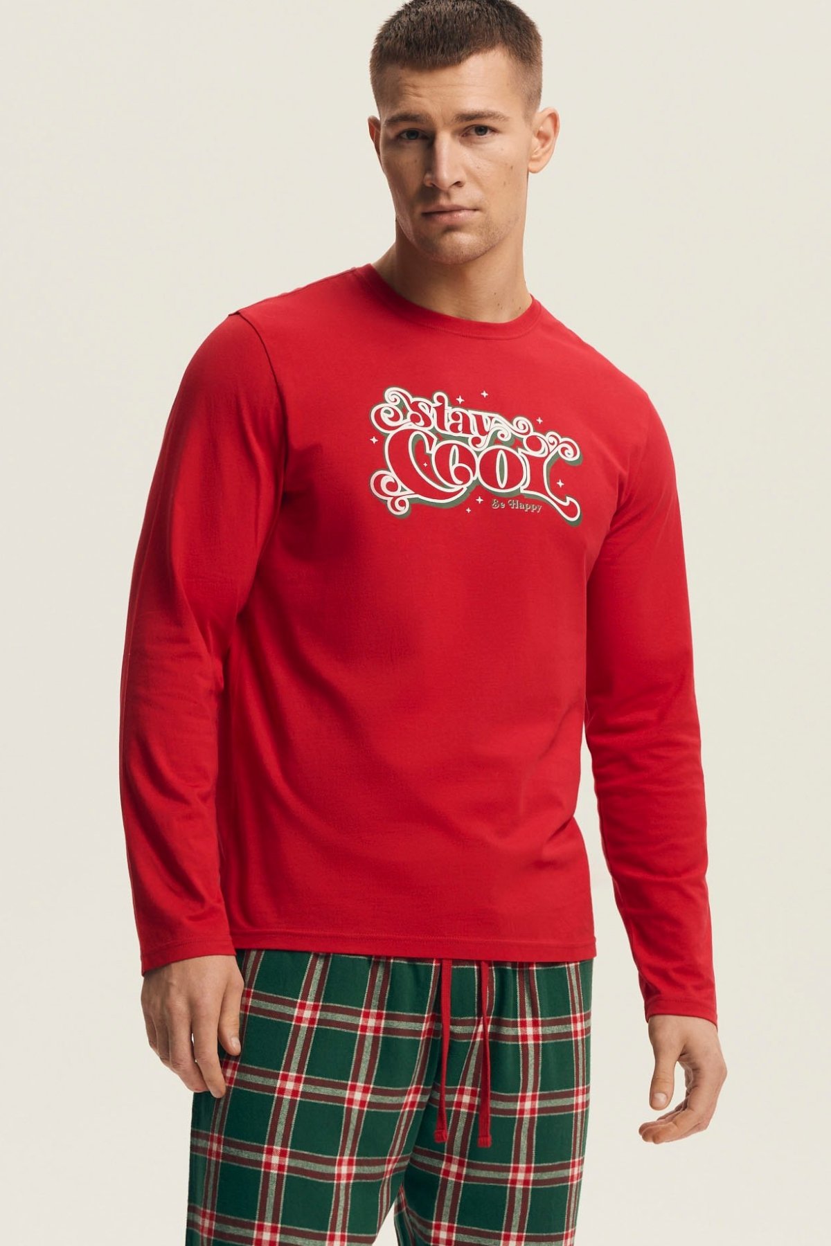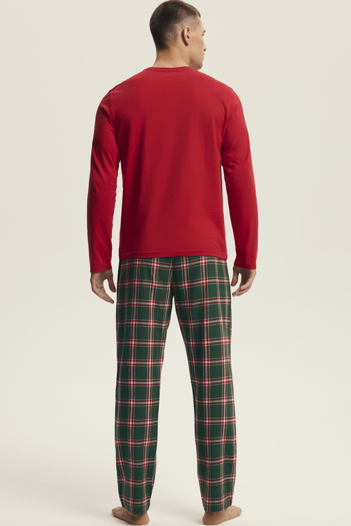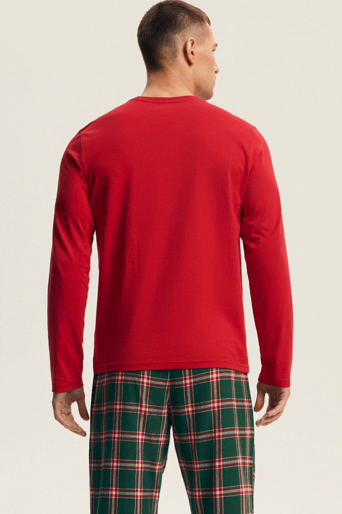 Pánské pyžamo Nougat přináší pohodlí a sváteční atmosféru v jednom. Horní díl z měkké bavlny má dlouhé rukávy a zdobí ho stylový vánoční motiv, který dodává pyžamu hravý, ale elegantní charakter. Dlouhé kalhoty z hřejivé flanelové látky s červeným kostkovaným vzorem zajišťují komfort během chladných večerů. Přírodní bavlna je prodyšná, příjemná na dotek a ideální pro každodenní nošení i klidný spánek. Tento model se skvěle hodí jako dárek nebo jako pohodlný outfit pro zimní večery strávené v teple domova.