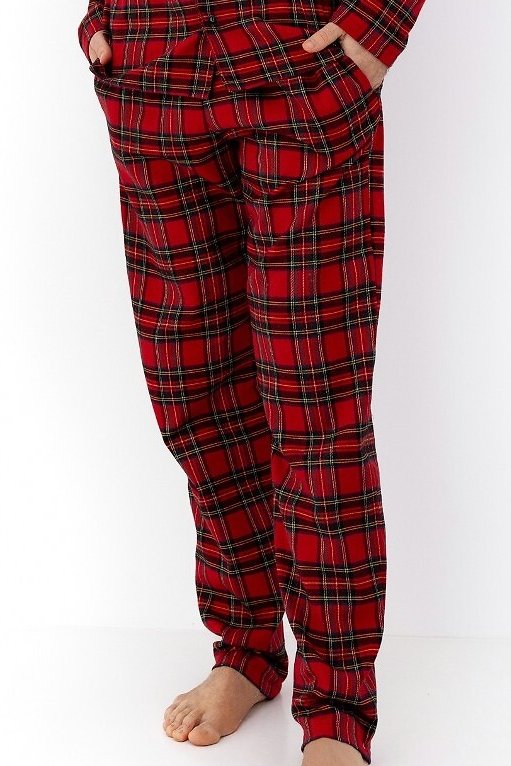 Košilový horní díl s dlouhým rukávem a zapínáním na knoflíky působí elegantně a nadčasově, dlouhé kalhoty s gumou v pase a praktickou šňůrkou nabízejí maximální volnost pohybu. Tradiční kostkovaný vzor v červeném tónu dodává pyžamu klasický zimní charakter.