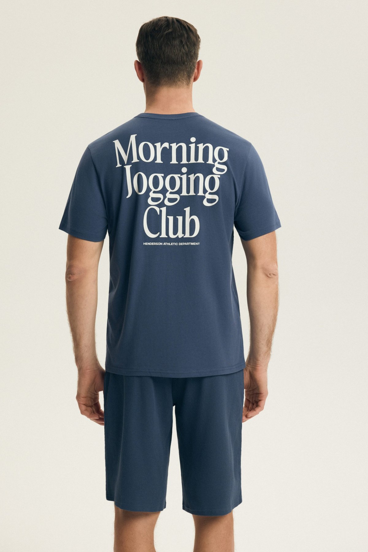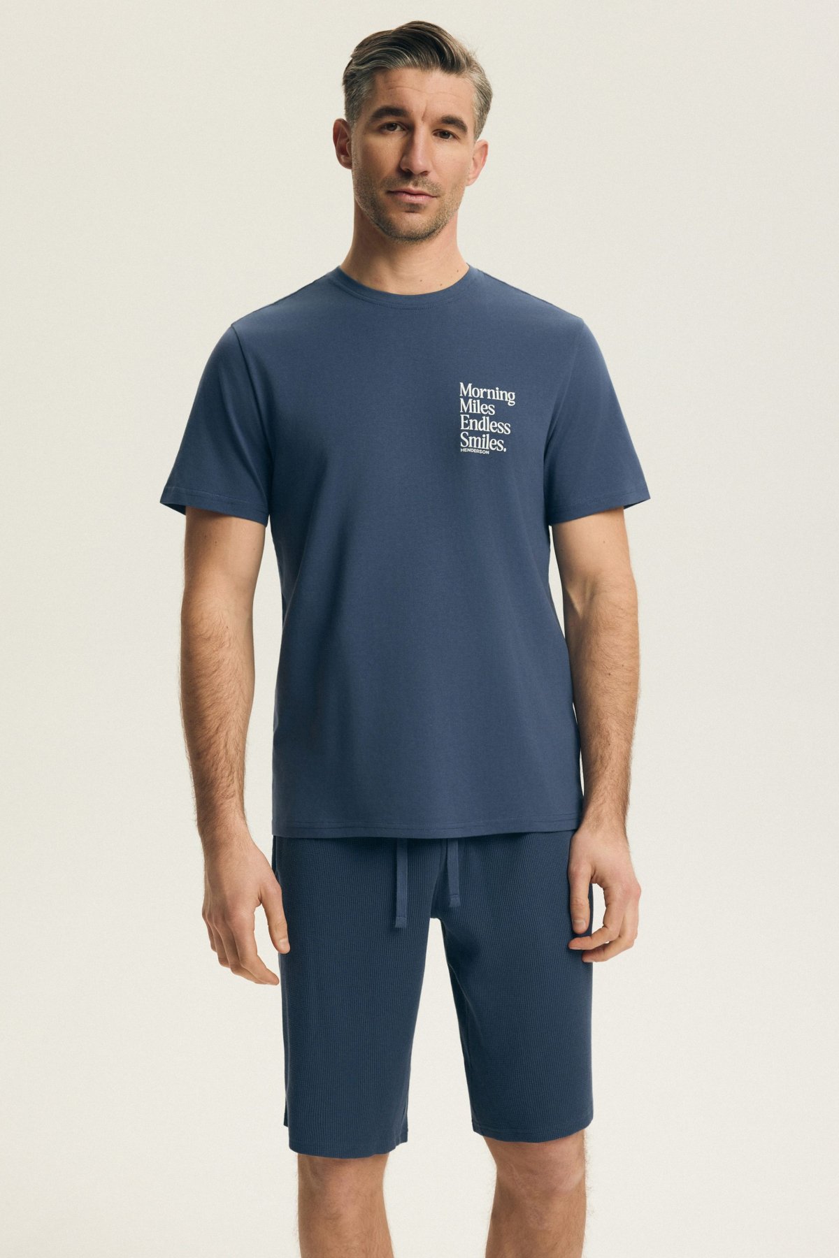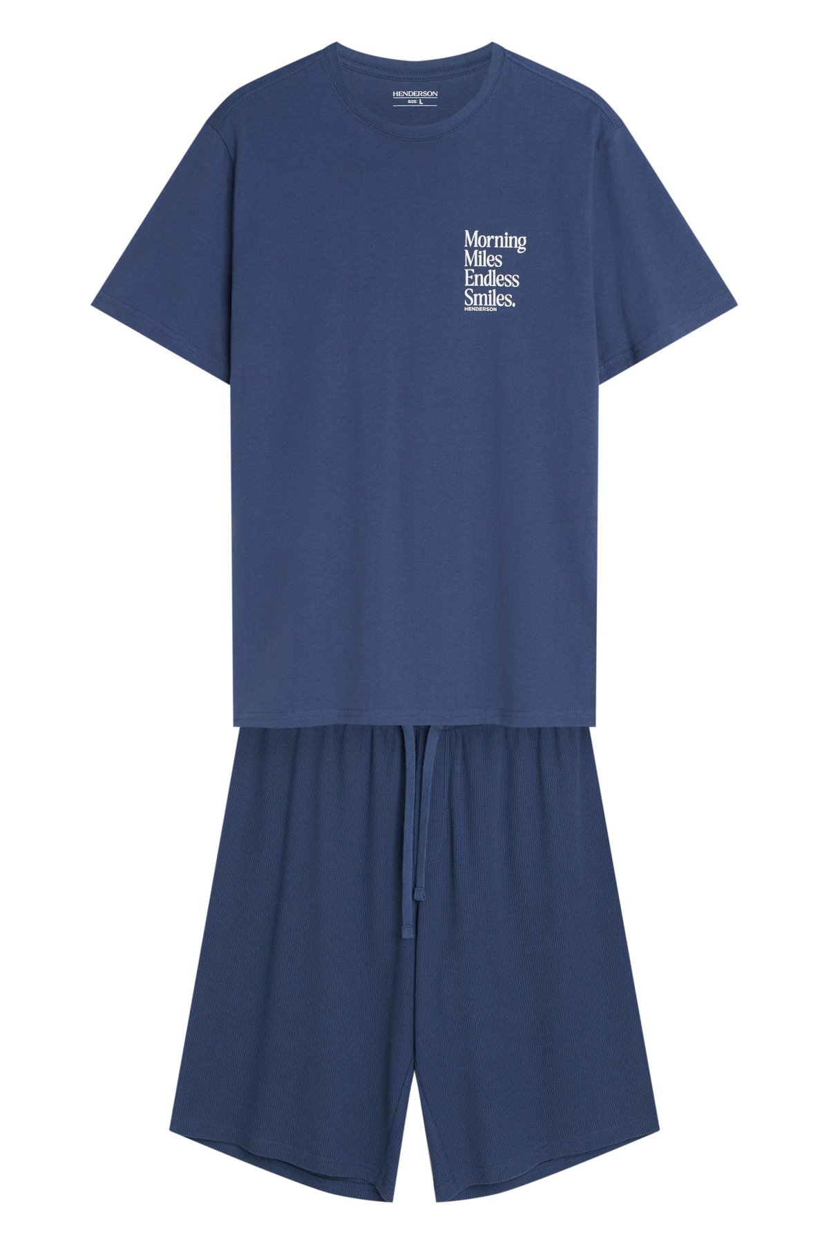 Pánské pyžamo Henderson Play je lehký komplet pro pohodlné spaní i domácí nošení v teplejším období. Tričko s krátkým rukávem doplňují šortky, takže pyžamo působí vzdušně a neomezuje v pohybu. 100% bavlna je příjemná na dotek, dobře prodyšná a vhodná pro každodenní nošení. Modré provedení se vzorem nápisů dodává modelu uvolněný a moderní vzhled.