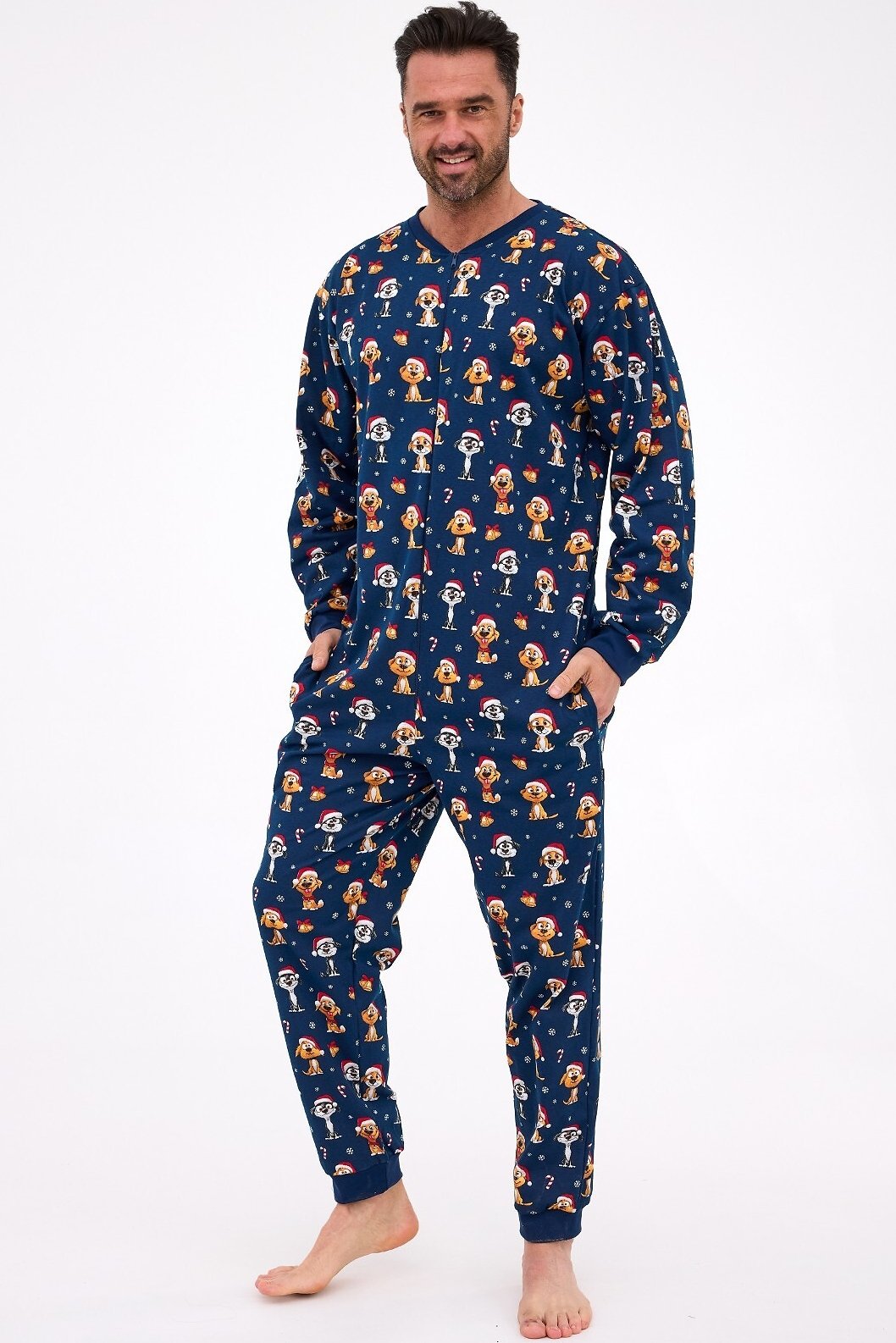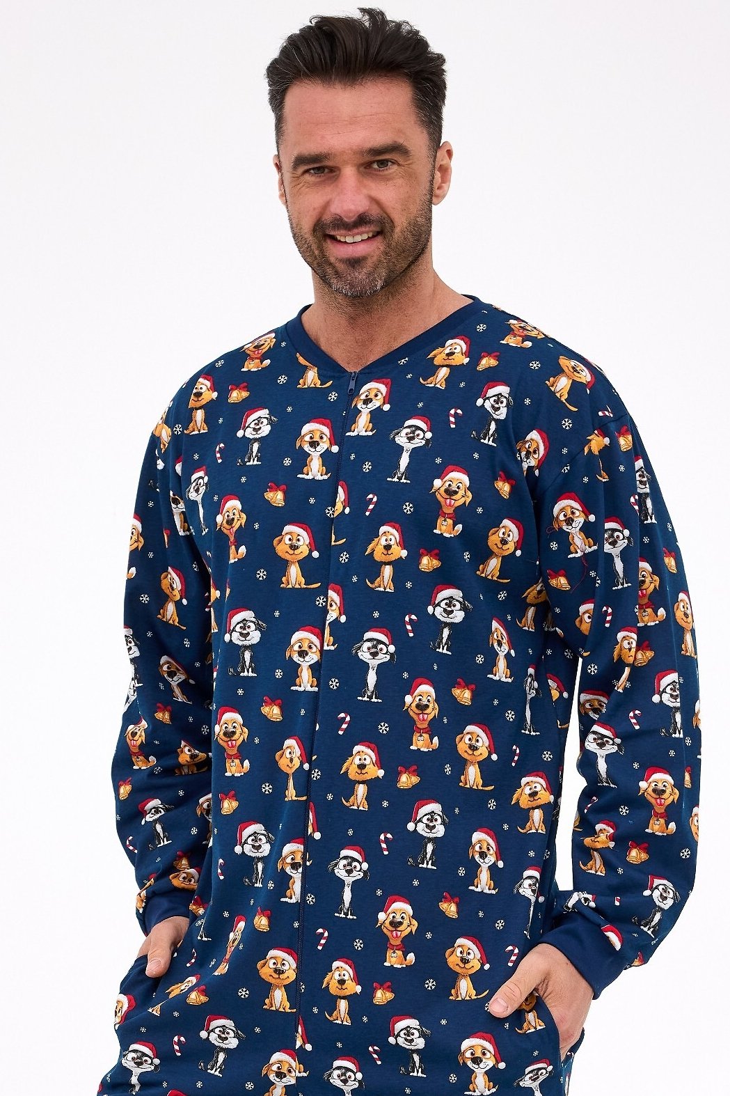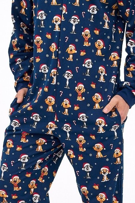 Pánský overal Dog 2 je veselý a pohodlný kousek, který zpříjemní zimní večery i sváteční chvíle. Měkká bavlna zajistí komfort a prodyšnost, volnější střih umožní volnost pohybu. Zapínání na zip je praktické a rychlé, takže oblékání i svlékání je otázkou okamžiku. Originální motiv s pejsky dodává modelu hravý, sváteční charakter, díky čemuž je overal ideální nejen na spaní, ale i na domácí pohodu během vánočního období. Praktické kapsy a pružné lemy na rukávech a nohavicích zvyšují pohodlí při každodenním nošení.
