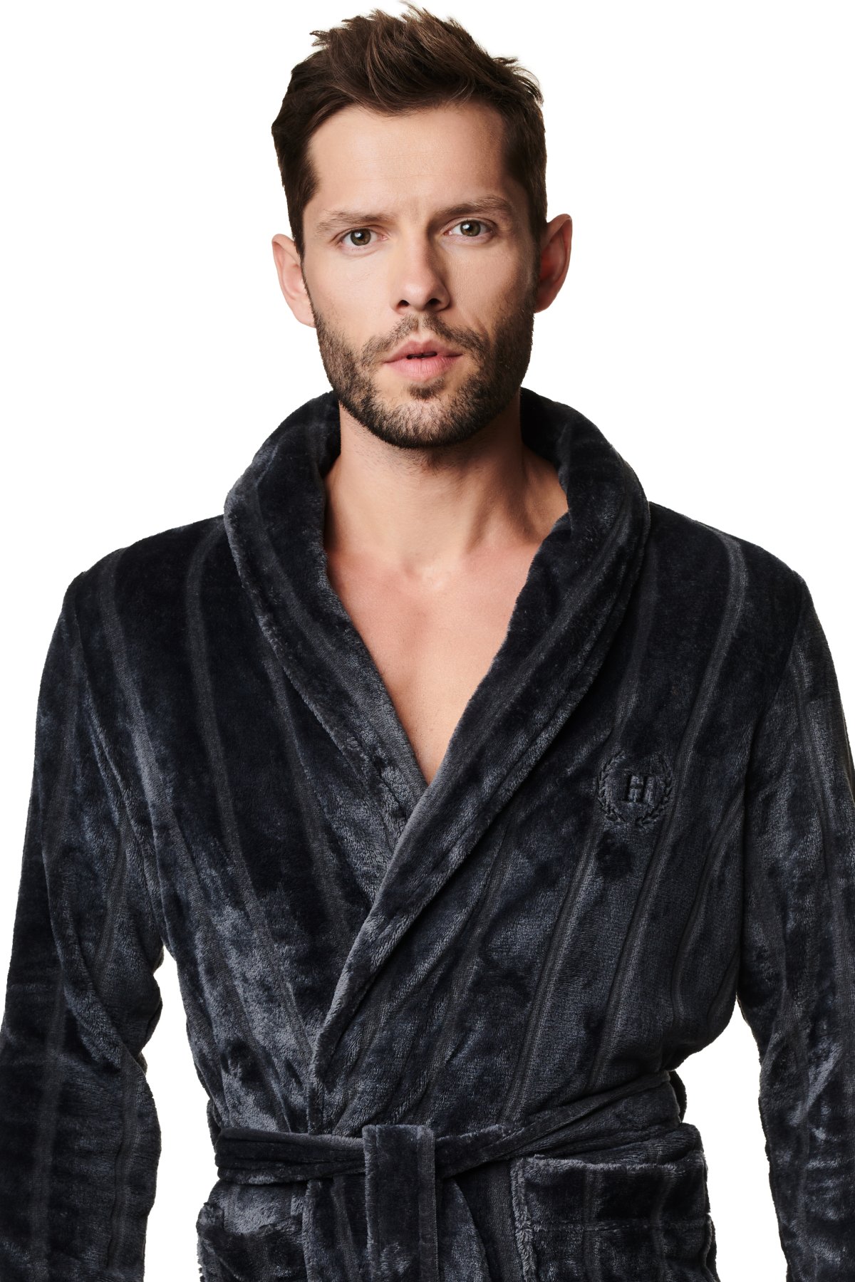Pánský hřejivý župan Mungo, si jistě oblíbí muži, kteří mají rádi černou barvu a nenápadný proužkovaný vzor.