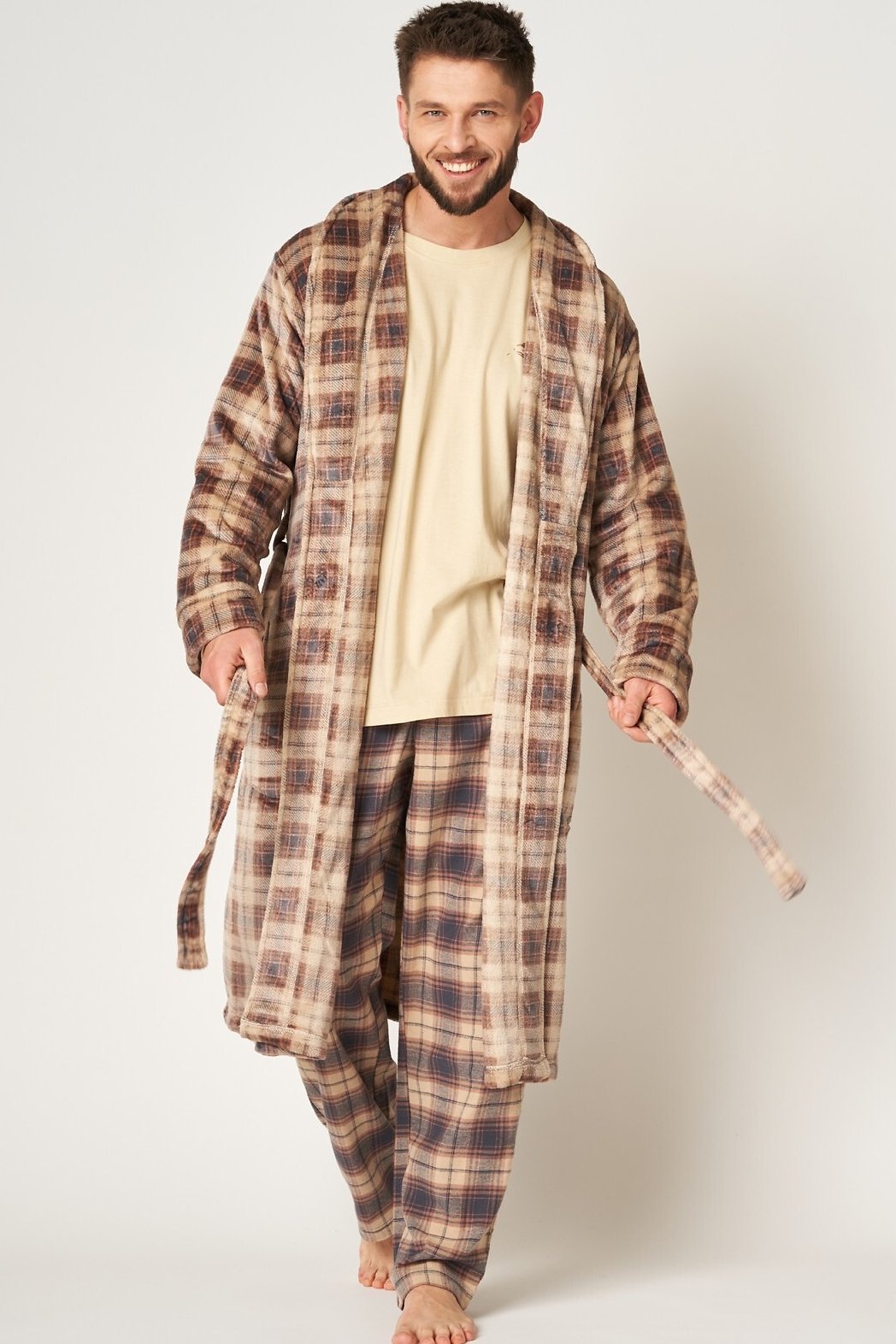- pánský župan z měkkého soft materiálu s kostkovaným vzorem