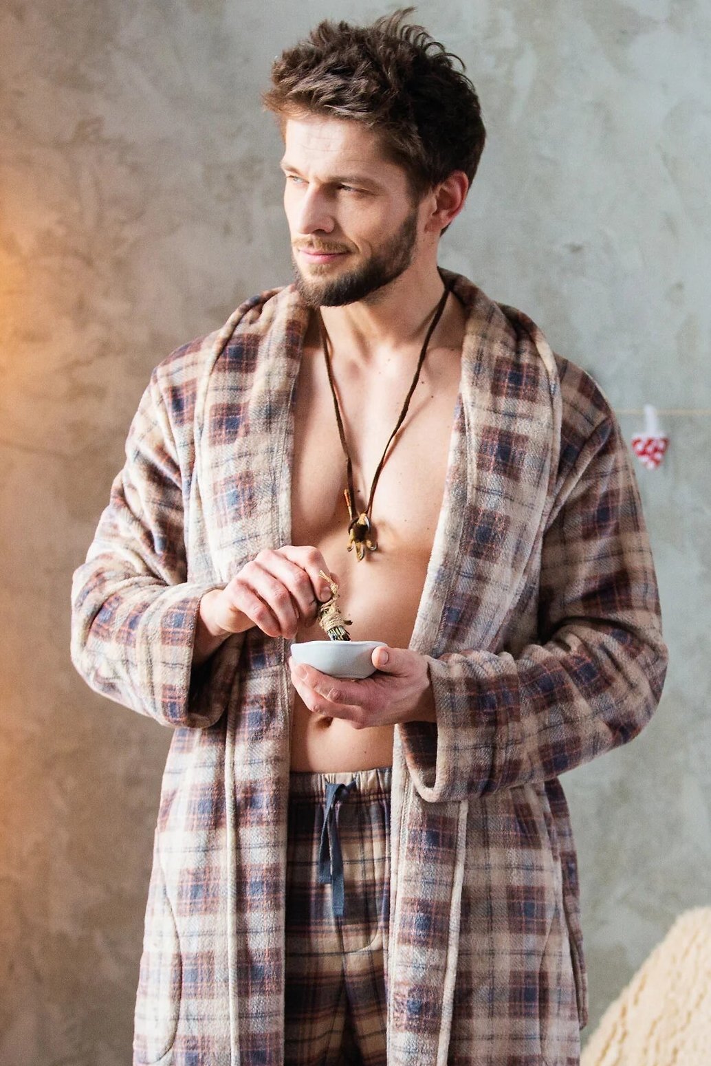 Pánský župan, který je kombinací klasického stylu a dokonalého pohodlí. Vyrobený z mimořádně hebkého soft materiálu, který nabízí příjemné teplo i měkkost na dotek. Tradiční kostkovaný vzor dodává modelu nadčasový charakter, šálový límec a délka pod kolena zajišťují elegantní vzhled. Pásek v pase umožňuje snadné přizpůsobení a dvě kapsy po stranách nabízejí prostor na zahřátí rukou. Tento župan ocení každý muž, který hledá kvalitní zpracování, příjemný materiál a střih, který poskytuje maximální pohodlí po koupeli i při odpočinku.