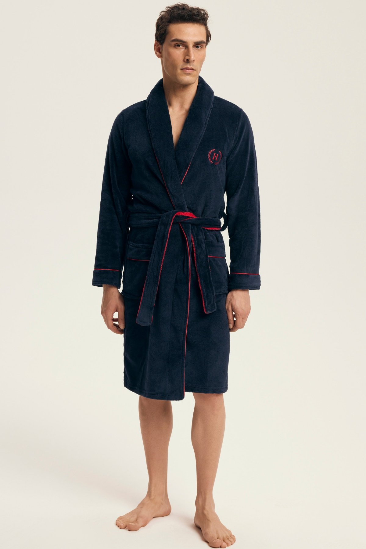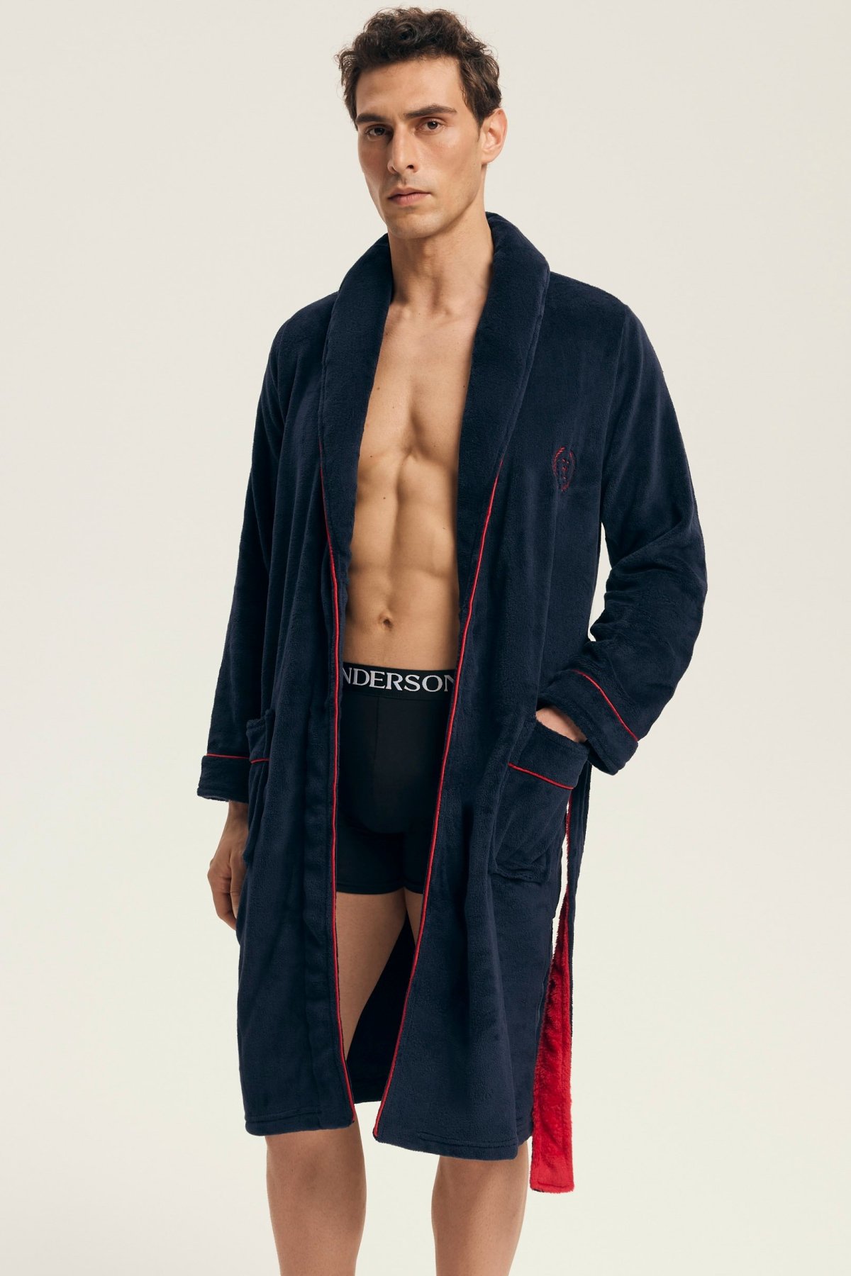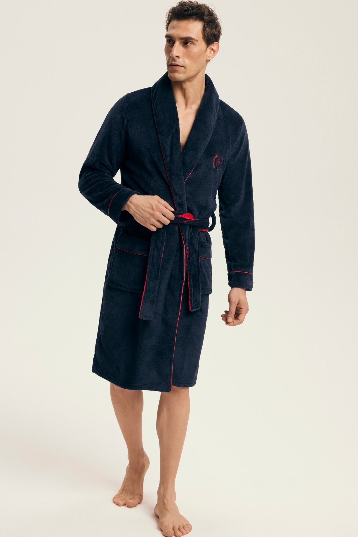 Tento elegantní pánský župan je ideální pro domácí pohodu a chvíle odpočinku. Měkký, hřejivý materiál poskytuje příjemný pocit při nošení, zatímco klasický střih s límcem dodává modelu nadčasový vzhled. Zavazování v pase a praktické kapsy zajišťují maximální funkčnost, ať už při ranní kávě, po sprše nebo během večerní relaxace. Jemná výšivka na hrudi podtrhuje mužnou eleganci tohoto kousku.