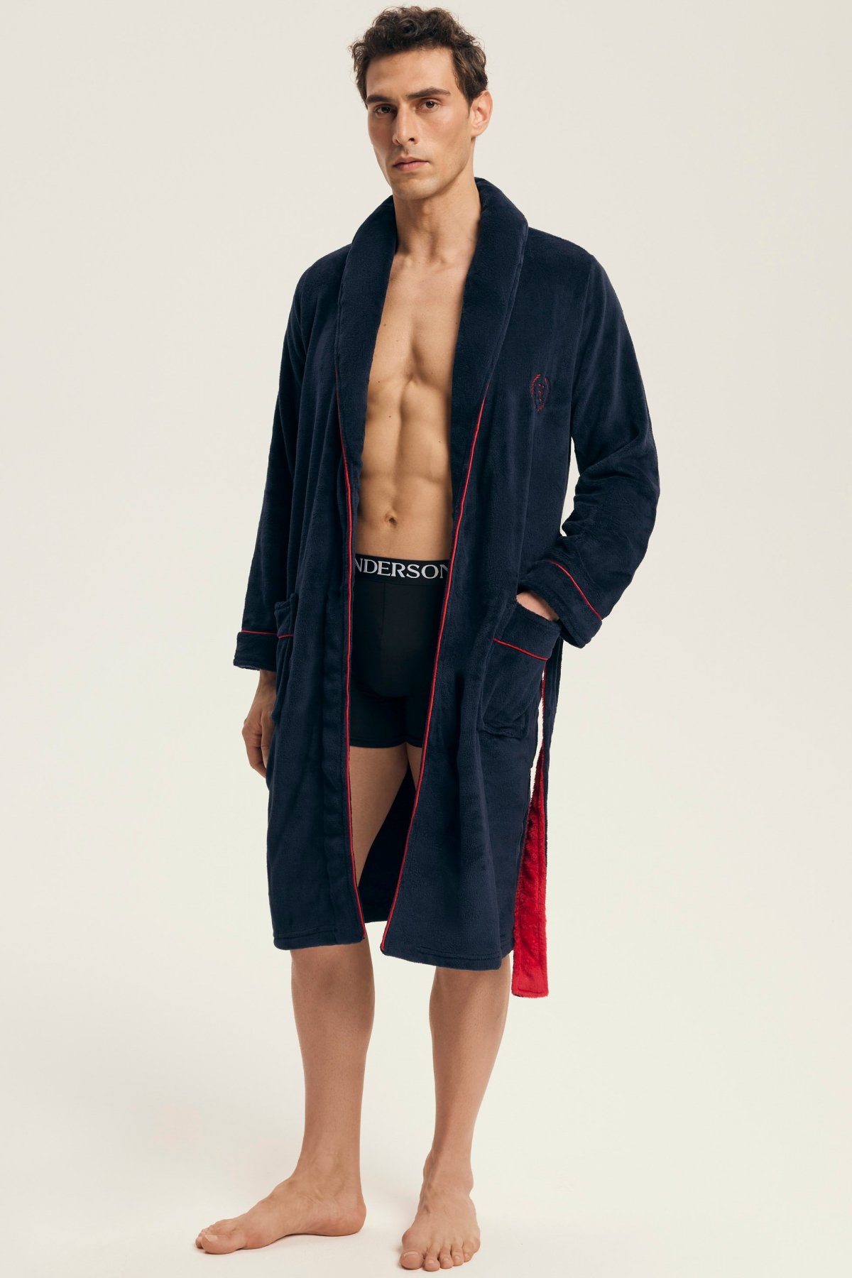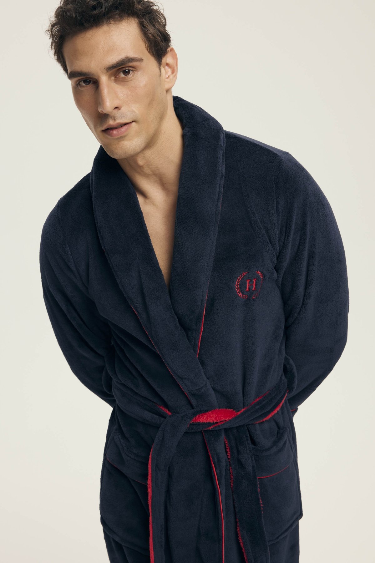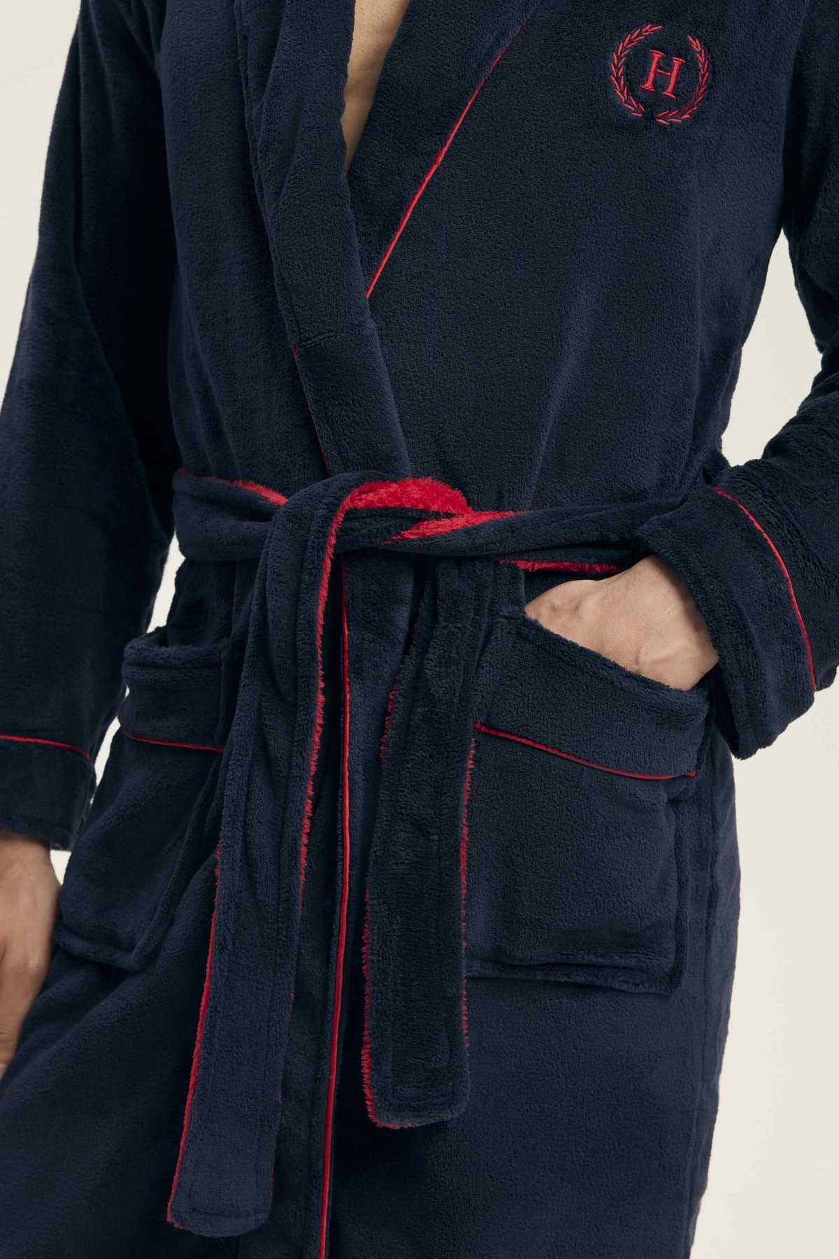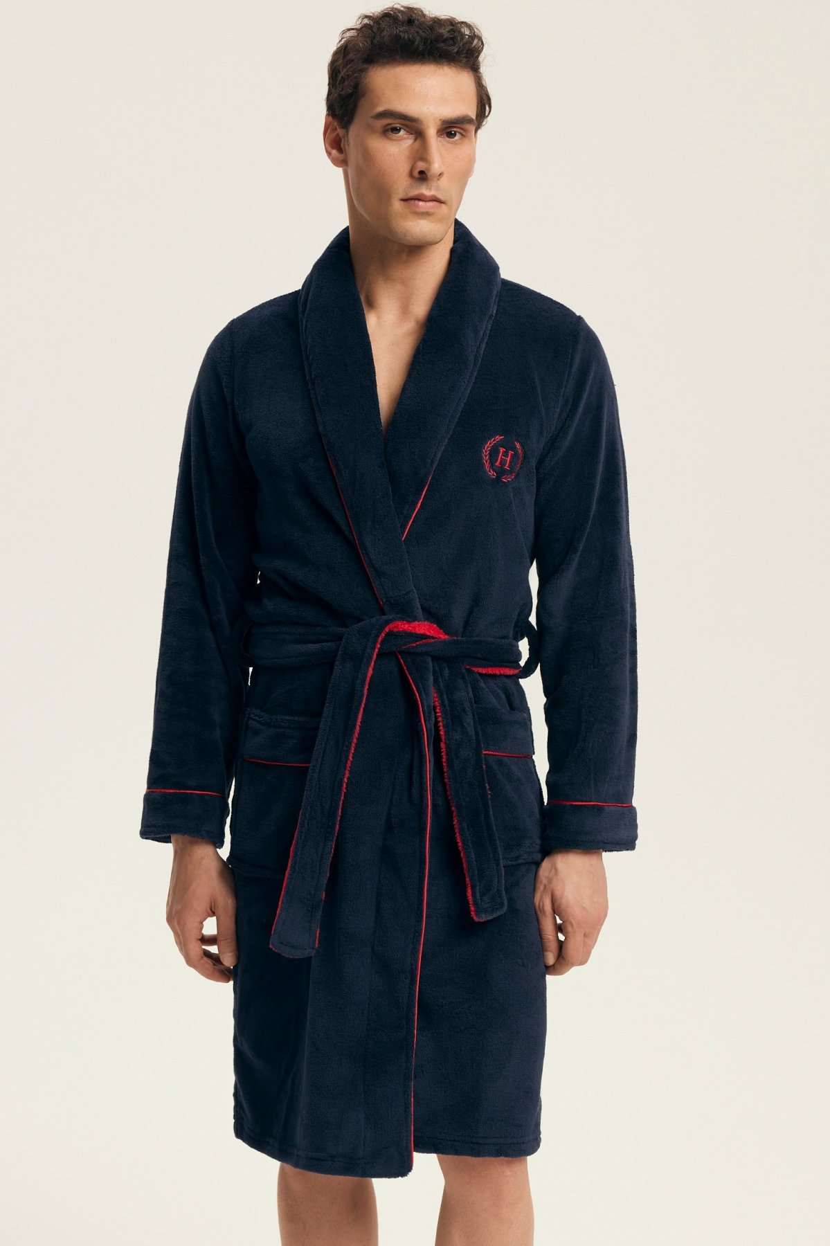 Tento elegantní pánský župan je ideální pro domácí pohodu a chvíle odpočinku. Měkký, hřejivý materiál poskytuje příjemný pocit při nošení, zatímco klasický střih s límcem dodává modelu nadčasový vzhled. Zavazování v pase a praktické kapsy zajišťují maximální funkčnost, ať už při ranní kávě, po sprše nebo během večerní relaxace. Jemná výšivka na hrudi podtrhuje mužnou eleganci tohoto kousku.