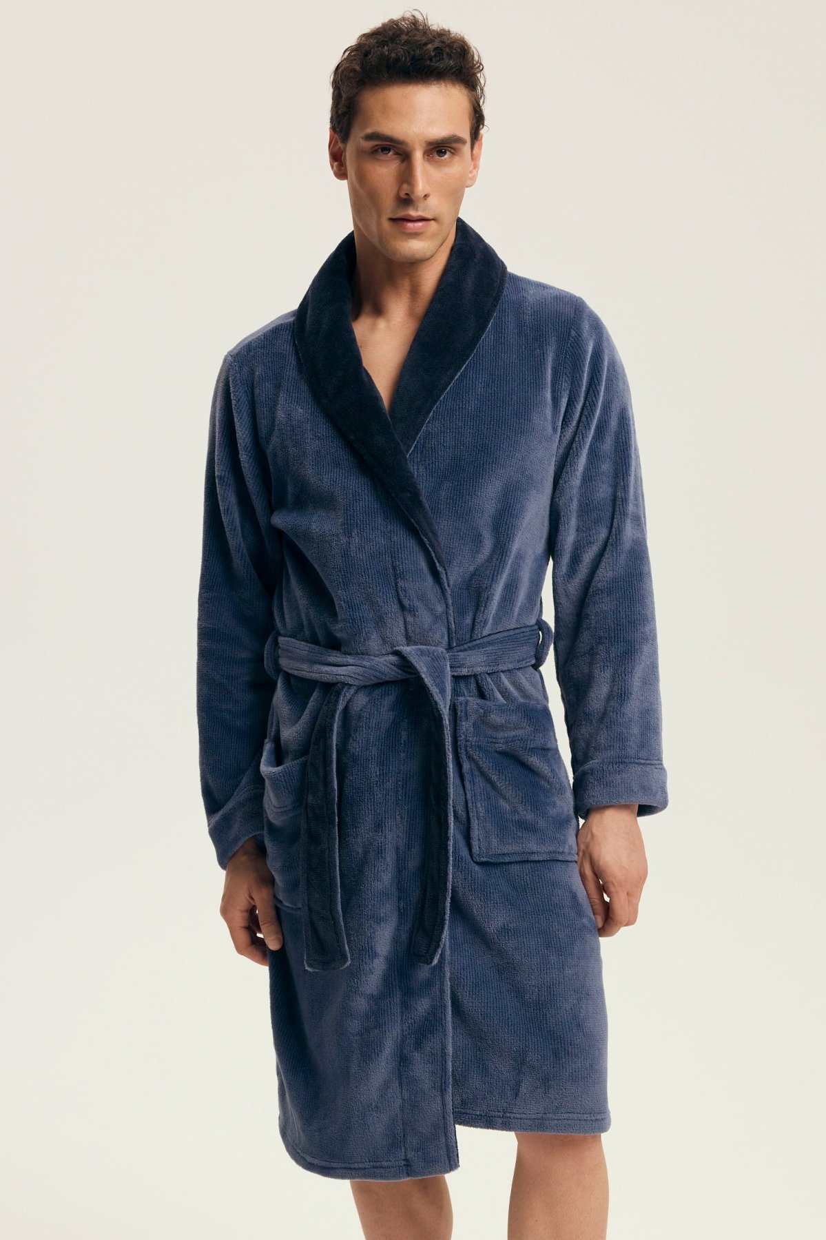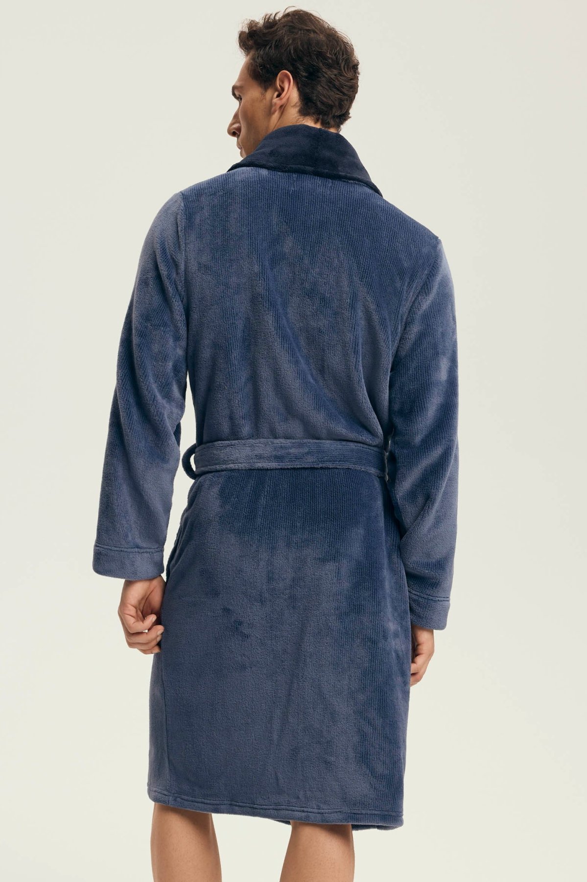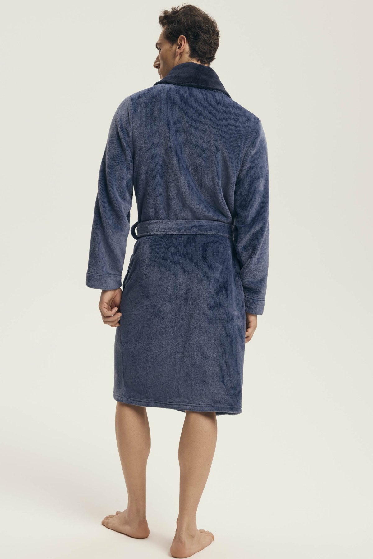 Pánský župan Nantes je kombinací elegance a pohodlí. Měkký materiál jemně obepne tělo a poskytne komfort jak po koupeli, tak při domácím odpočinku. Střih sahající nepatrně nad kolena je praktický a zajišťuje volnost pohybu. Kontrastní límec dodává modelu stylový vzhled, pásek a hluboké kapsy zvyšují funkčnost.
