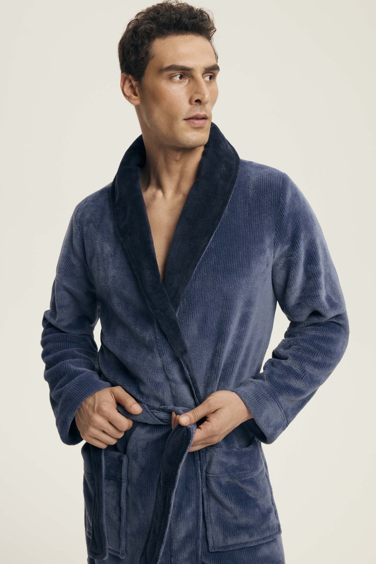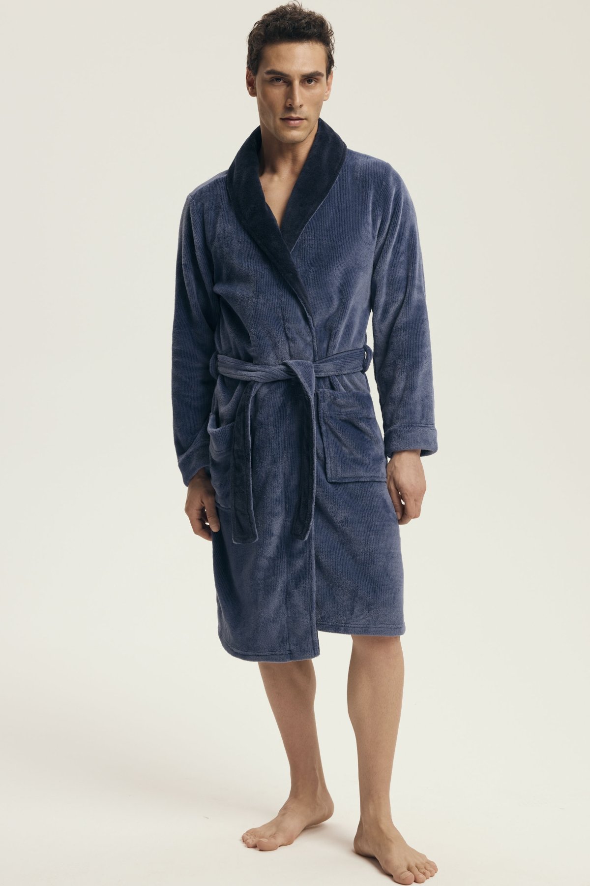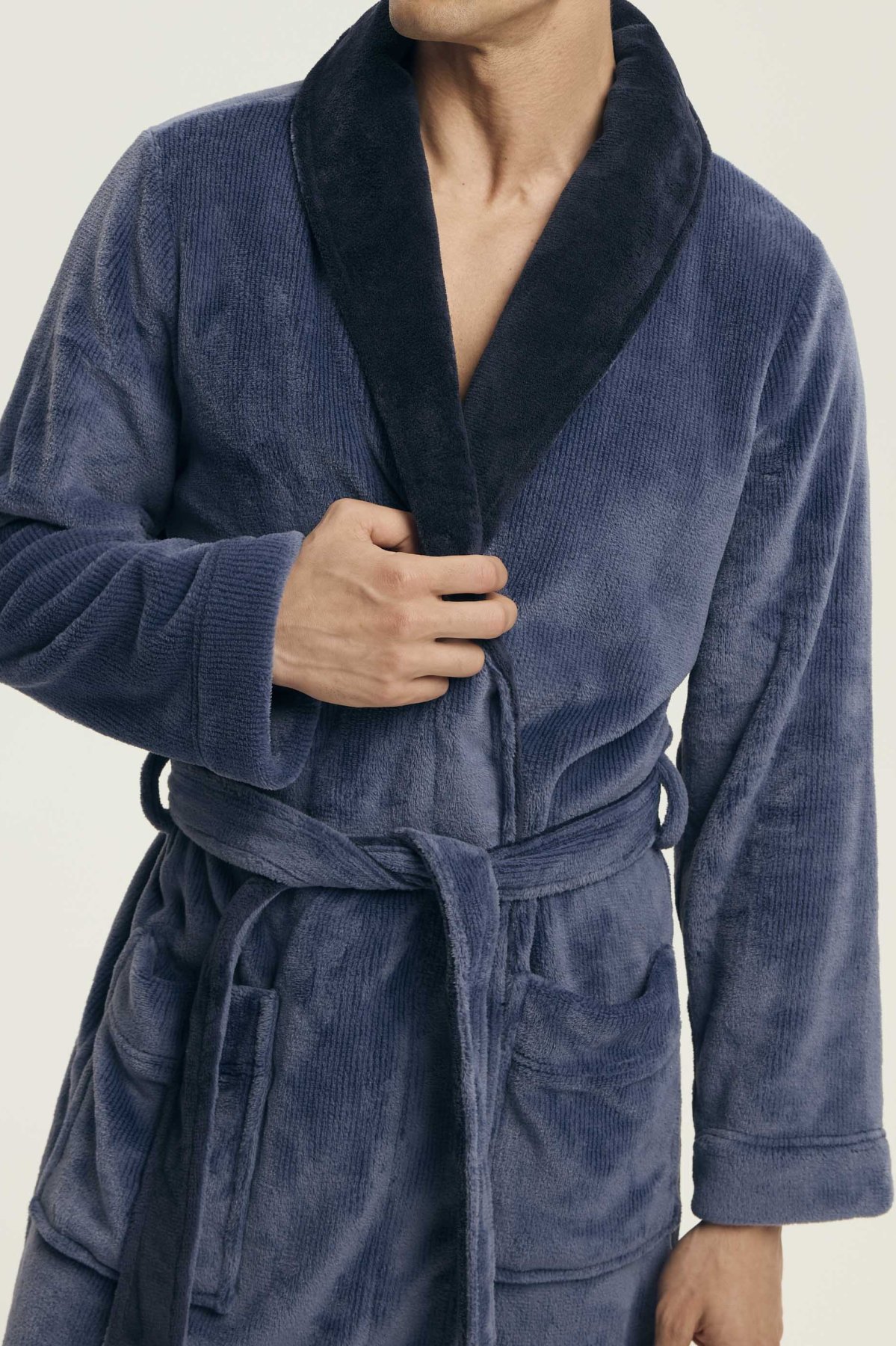 Pánský župan Nantes je kombinací elegance a pohodlí. Měkký materiál jemně obepne tělo a poskytne komfort jak po koupeli, tak při domácím odpočinku. Střih sahající nepatrně nad kolena je praktický a zajišťuje volnost pohybu. Kontrastní límec dodává modelu stylový vzhled, pásek a hluboké kapsy zvyšují funkčnost.