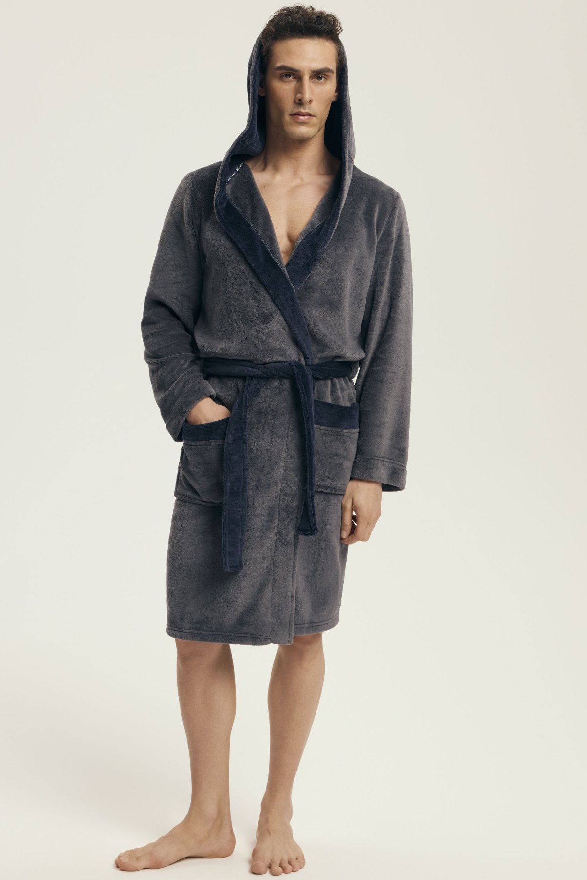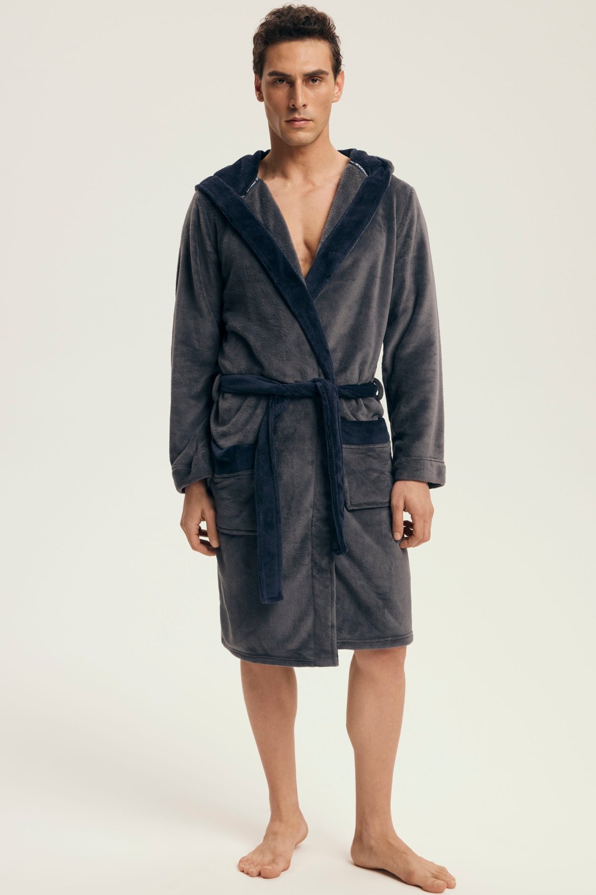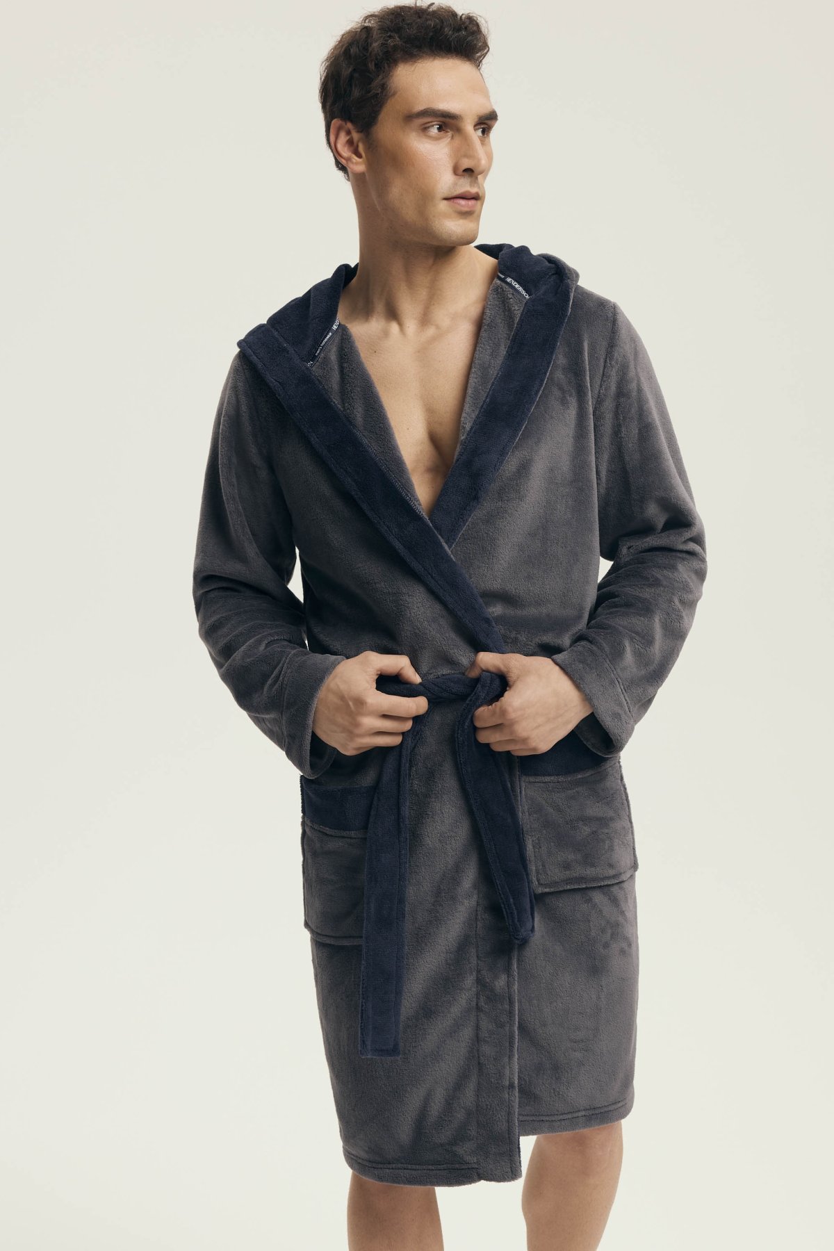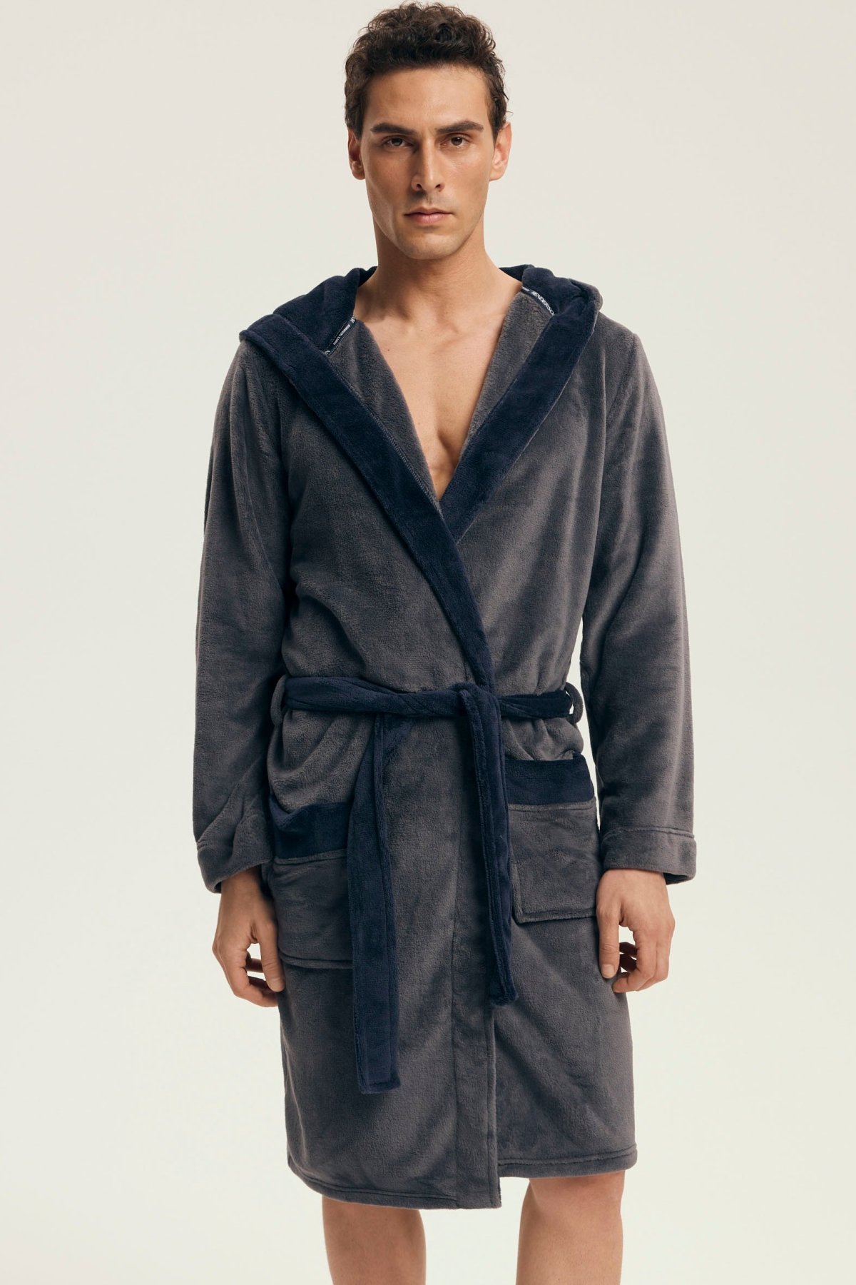 Hebký materiál poskytuje příjemný pocit při nošení a spolehlivě zahřeje i během chladnějších rán či večerů. Díky kontrastnímu provedení působí župan moderně a elegantně, kapuce dodává na praktičnosti. Zavazování v pase a dvě prostorné kapsy zvyšují komfort při každodenním používání.