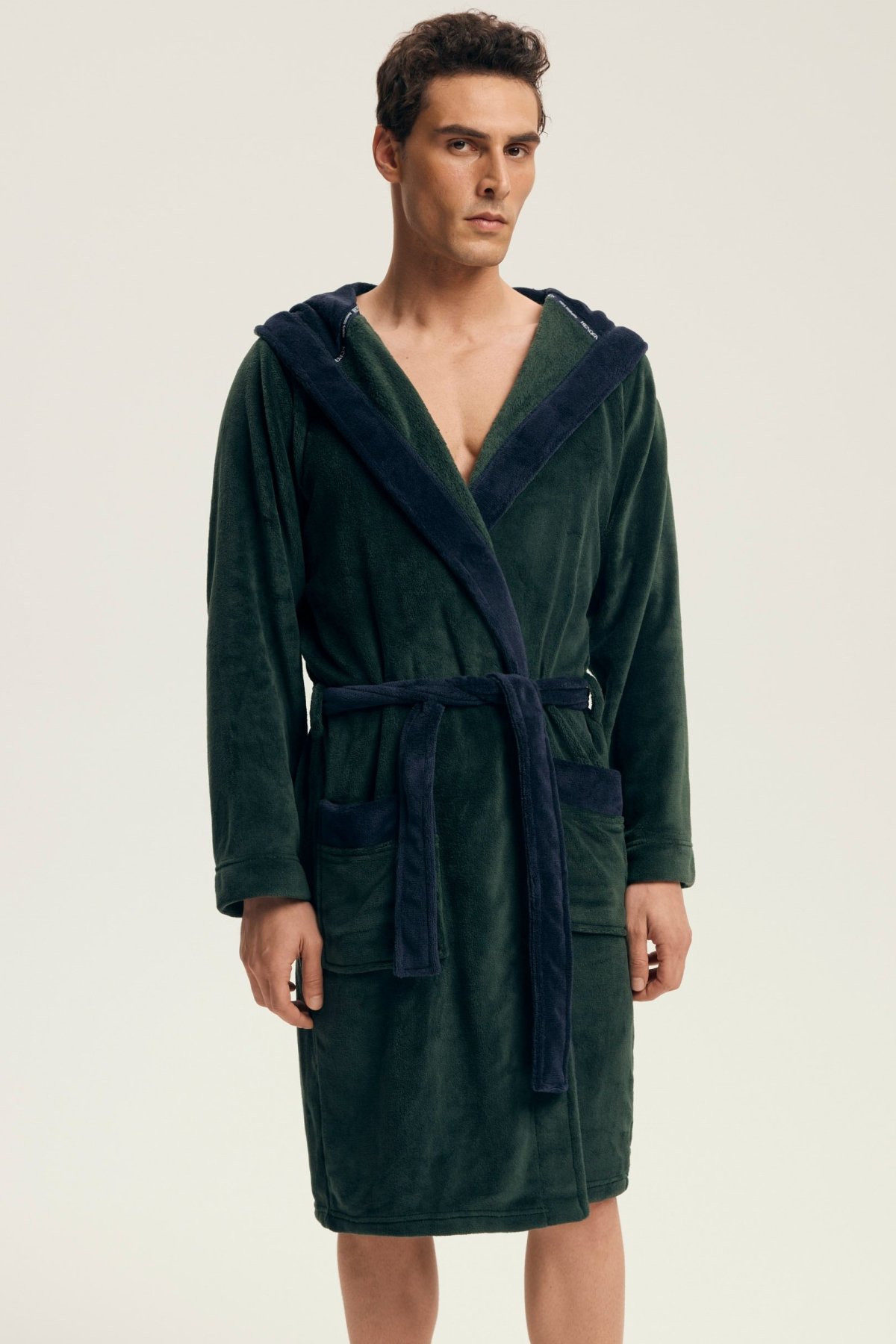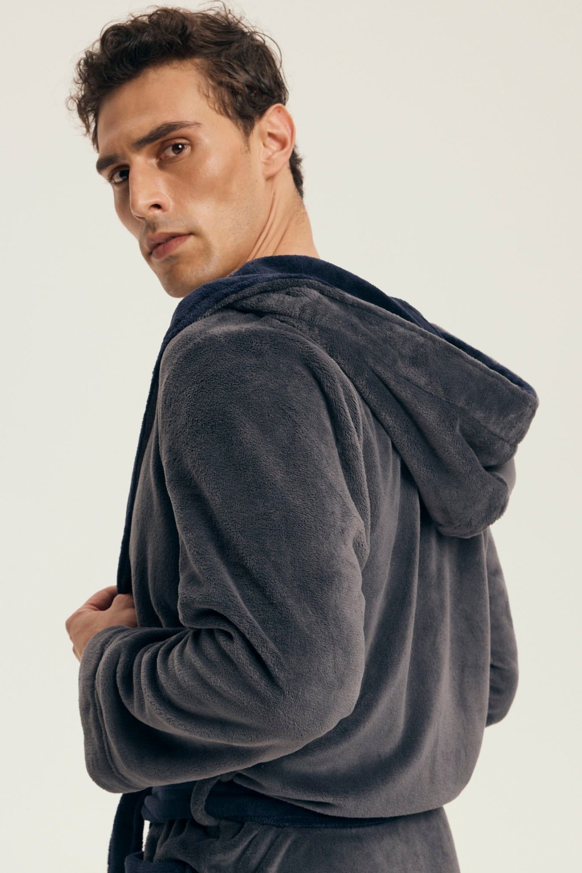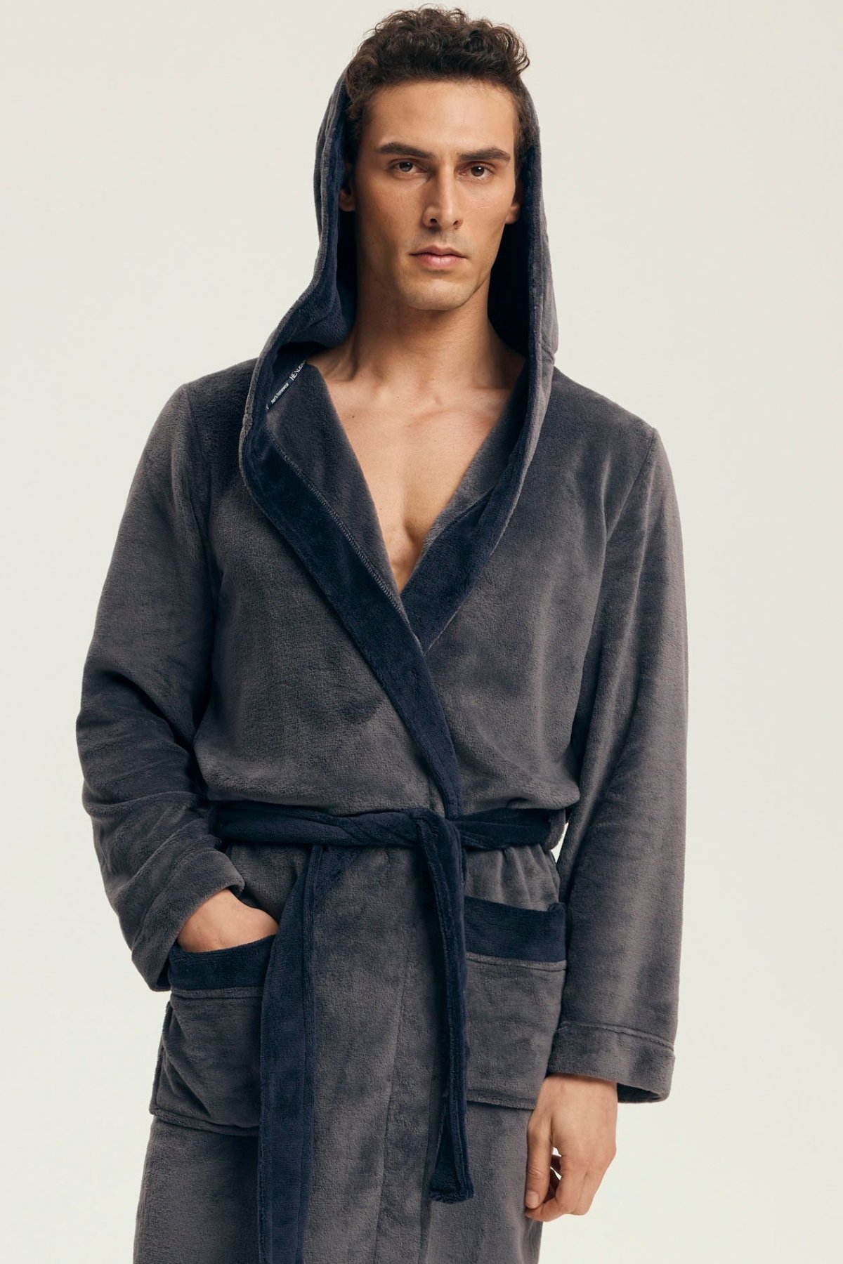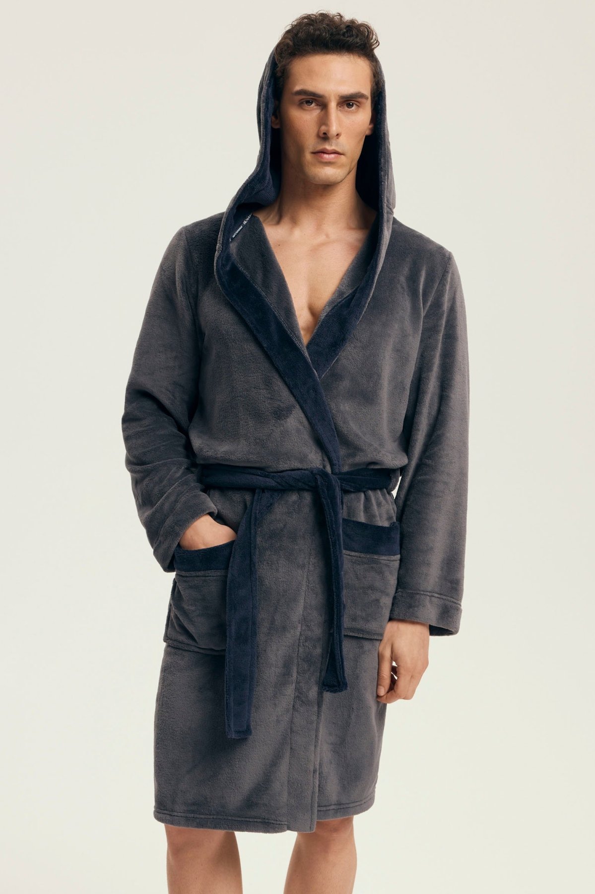 Hebký materiál poskytuje příjemný pocit při nošení a spolehlivě zahřeje i během chladnějších rán či večerů. Díky kontrastnímu provedení působí župan moderně a elegantně, kapuce dodává na praktičnosti. Zavazování v pase a dvě prostorné kapsy zvyšují komfort při každodenním používání.