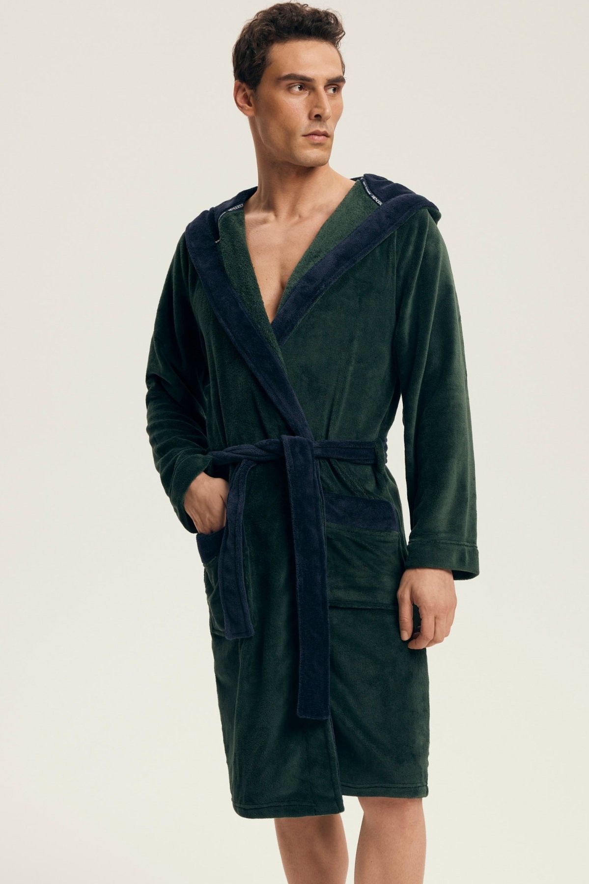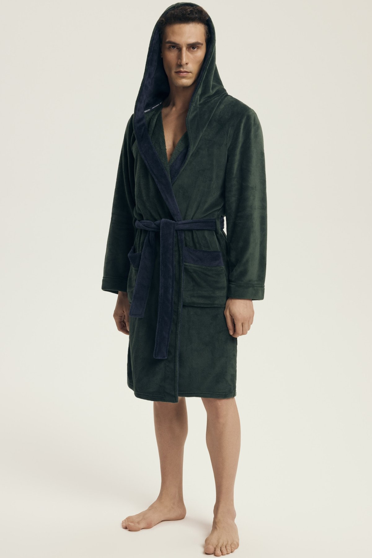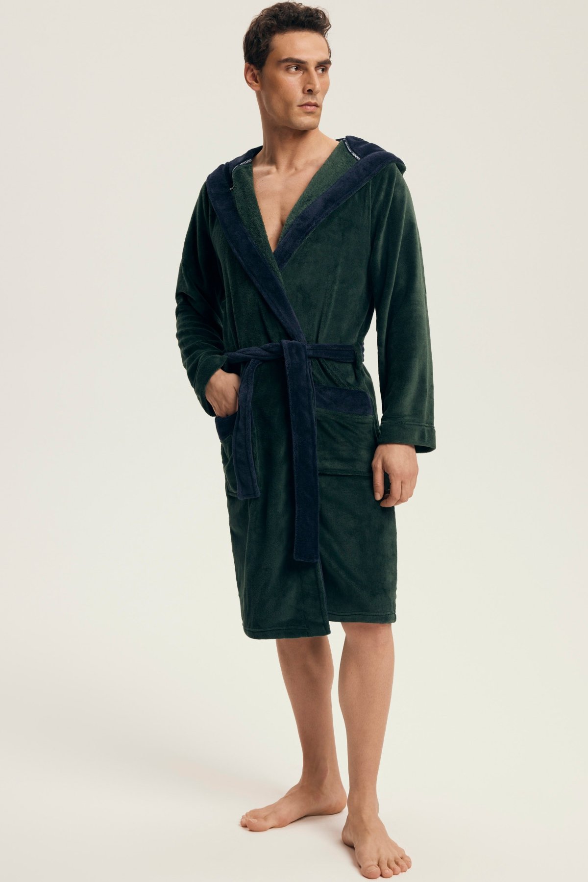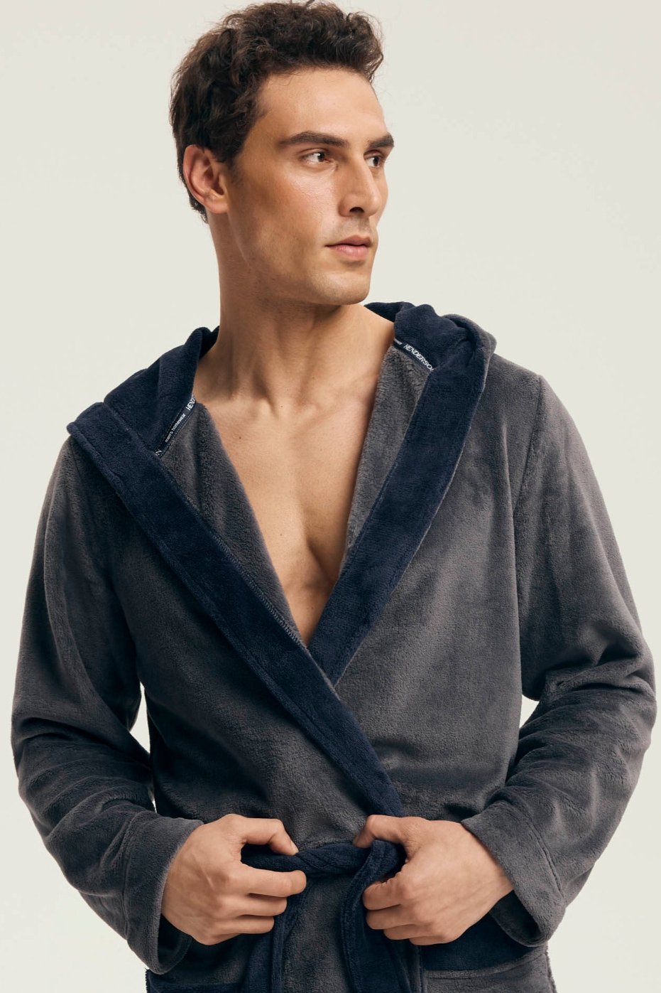 Hebký materiál poskytuje příjemný pocit při nošení a spolehlivě zahřeje i během chladnějších rán či večerů. Díky kontrastnímu provedení působí župan moderně a elegantně, kapuce dodává na praktičnosti. Zavazování v pase a dvě prostorné kapsy zvyšují komfort při každodenním používání.