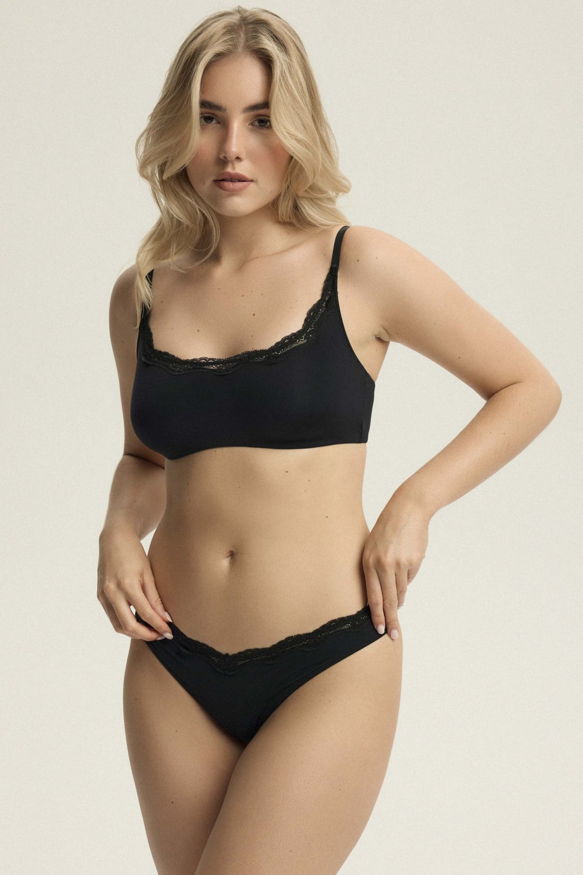 Dámský top Arien spojuje jemnost, ženskost a lehkost. Měkký materiál s vysokým podílem elastanu se přizpůsobí tělu, zatímco absence kostic zajistí naprosté pohodlí při každodenním nošení. Dekolt zdobí elegantní krajka, která dodává topu romantický charakter a vytváří jemný kontrast k hladké tkanině.