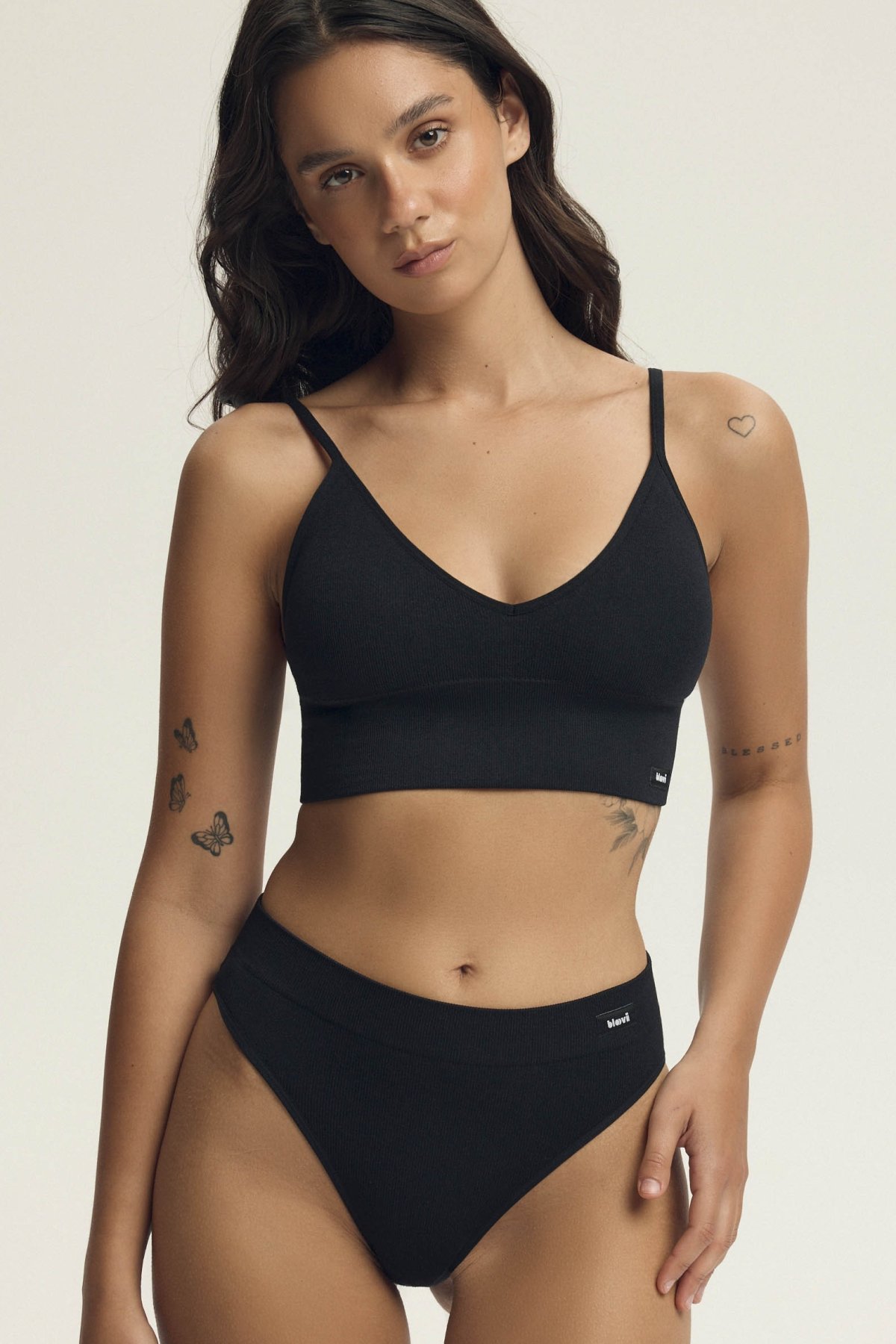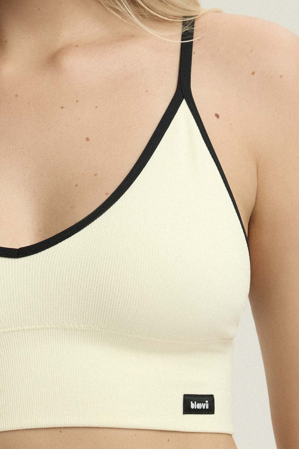 Top lze nosit dvěma způsoby – s ramínky vedenými klasicky nebo překříženými na zádech, což umožňuje snadné přizpůsobení outfitu i osobním preferencím. Ramínka lze také snadno regulovat.