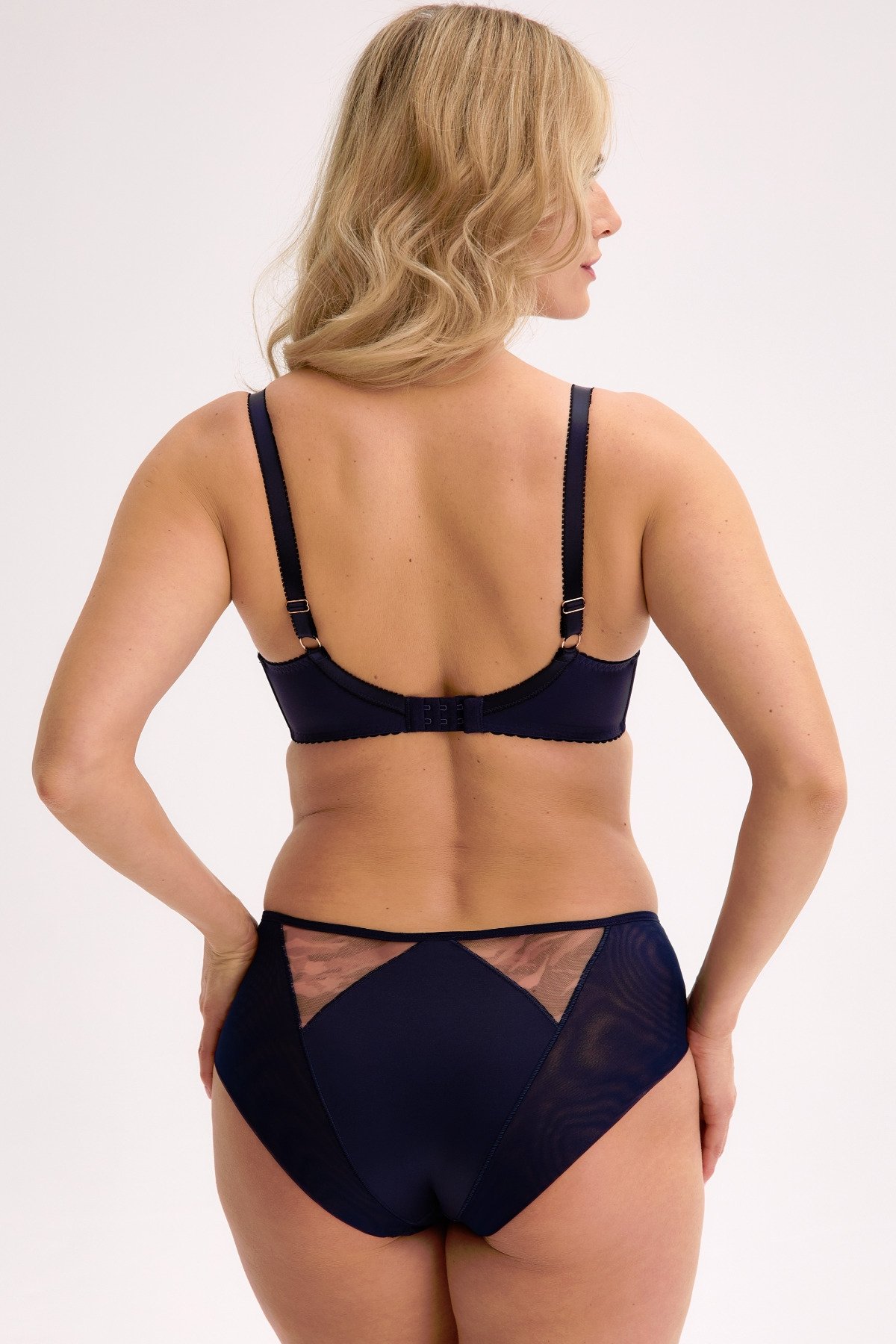 Polovyztužená kráska Sienna v elegantní kombinaci tmavě modré a jemně růžové barvy.