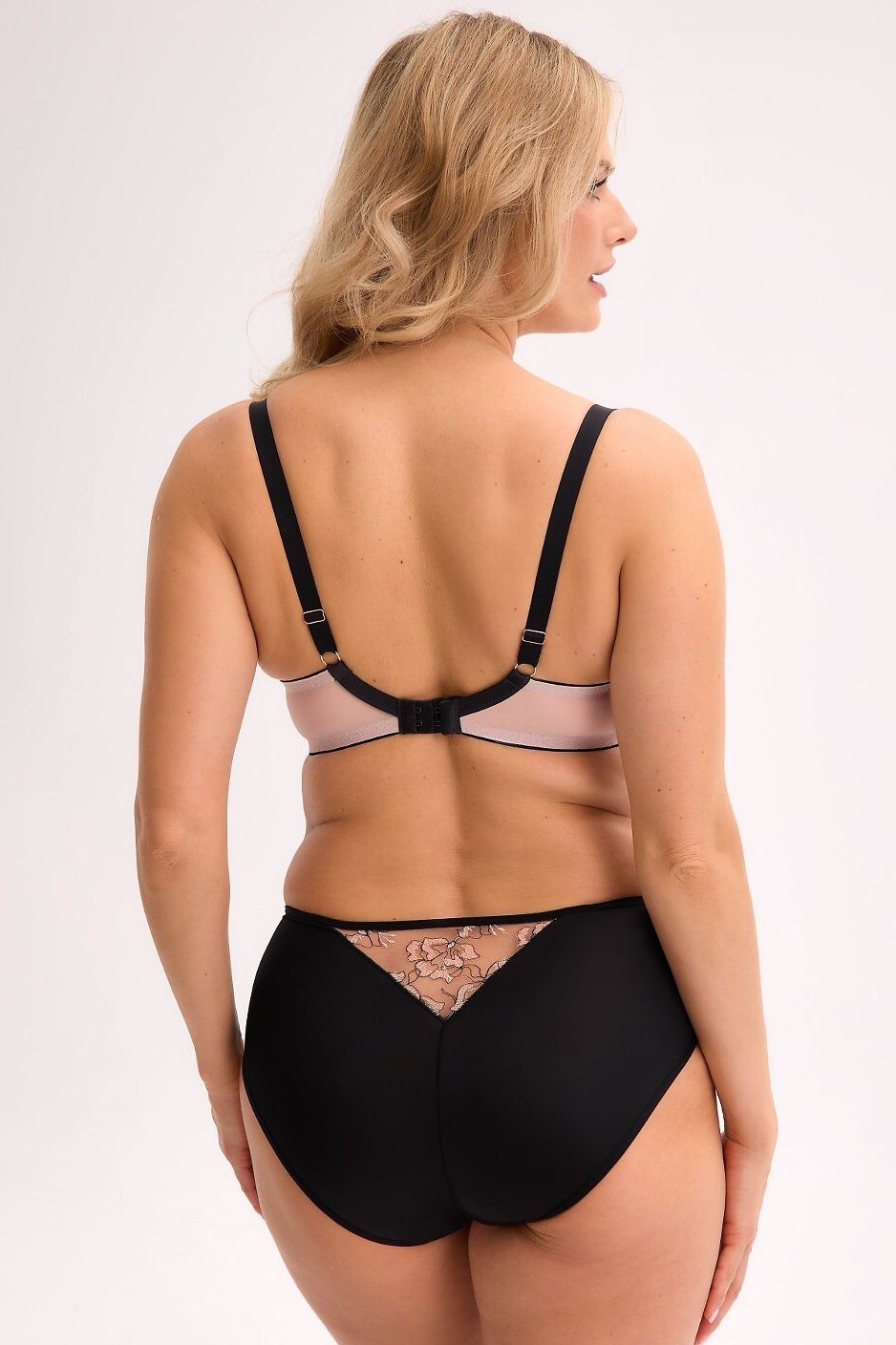 Podprsenka Xenia spojuje jemnost s výraznou elegancí a dokonale zvýrazňuje ženské křivky. Spodní část košíčků je ozdobena detailní květinovou výšivkou, která působí romanticky. Horní část z jemného tylu dodává modelu lehkost a smyslnost. Polovyztužená konstrukce poskytuje ideální podporu i pro plnější poprsí – lehká pěna tvaruje prsa a zároveň zachovává přirozený vzhled. Ramínka s decentní ozdobou a kovová přezka umožňují perfektní nastavení. Růžovo-černé provedení dodává podprsence moderní charakter.
