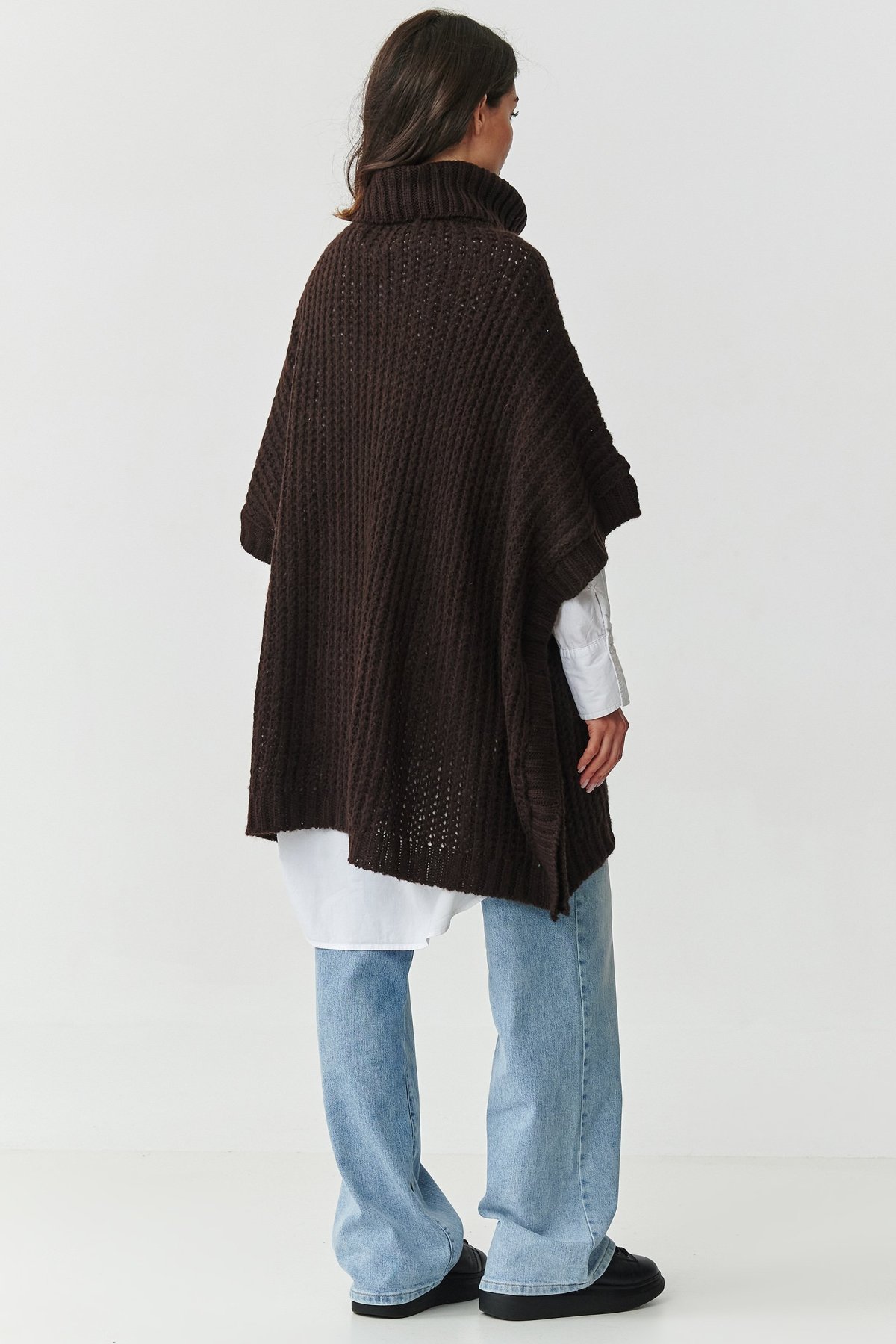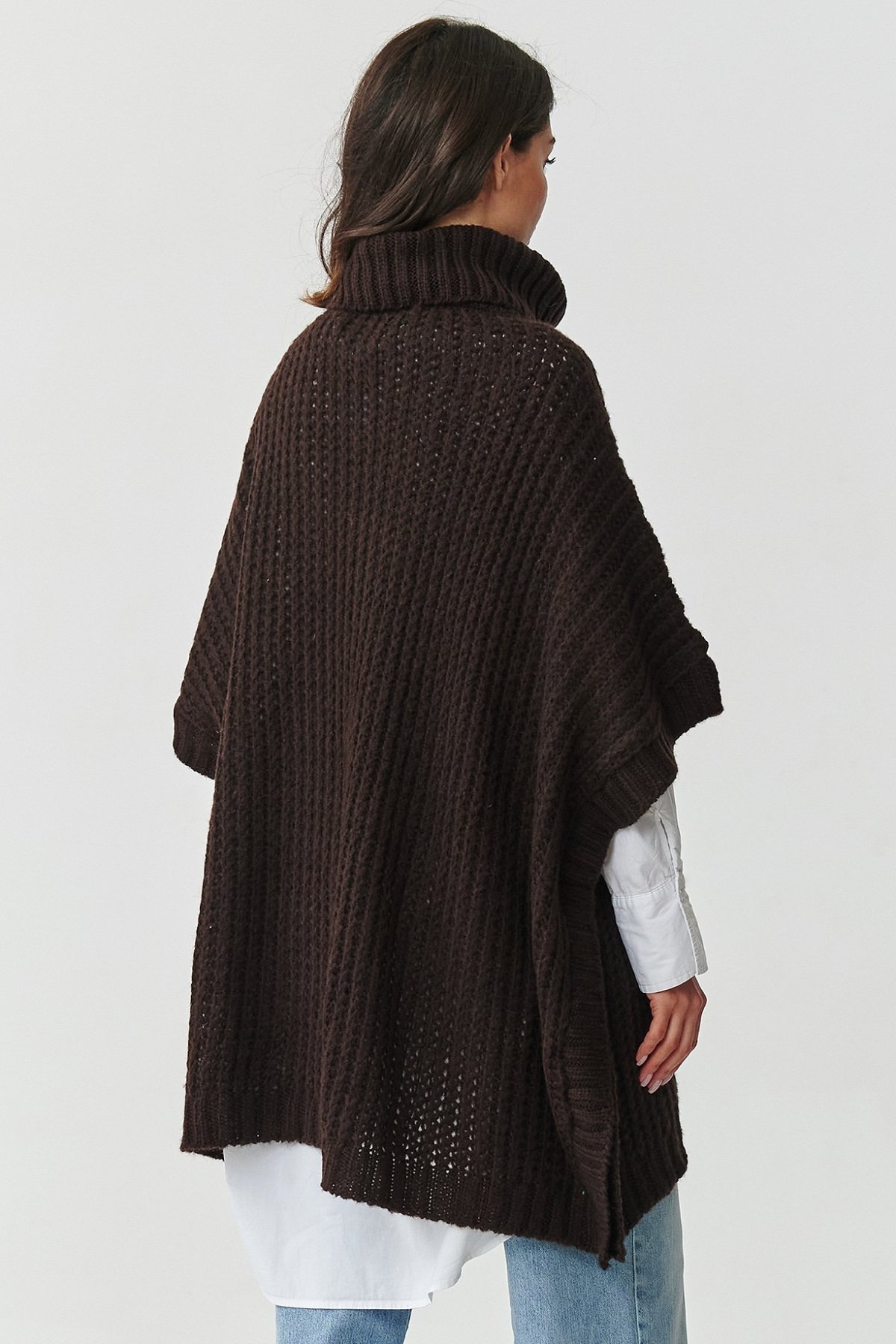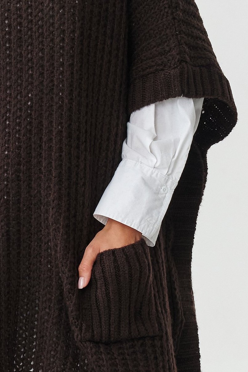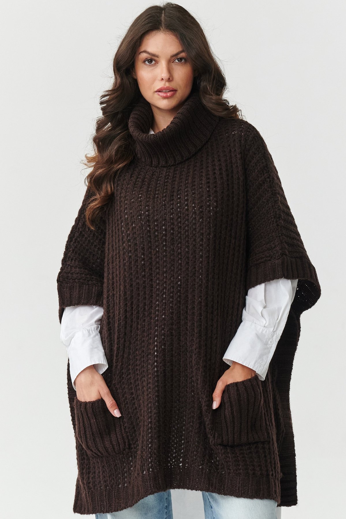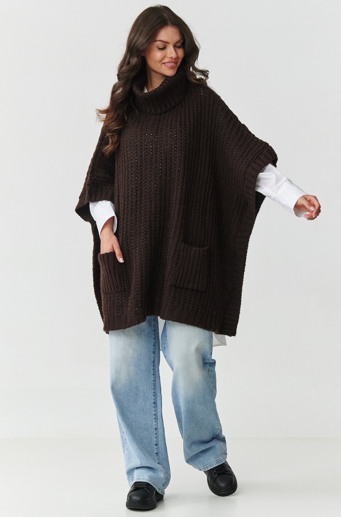 Odhalte tento výjimečný dámský svetr v podobě ponča, které v sobě spojuje módní design a neobvykle komfortní střih. Volný oversize střih s rukávy dlouhými k loktům a vysokým, volným límcem, krásně zahalí postavu a dodá ji nejen příjemné teplo, ale i žádoucí šmrnc. Praktické ,velké kapsy na přední straně svetru dodávají celku casual charakter a zaručují, že se tento kousek bude hodit pro každodenní nošení, ale doplní i elegantnější outfity. Rukávy i spodní lem jsou zakončeny úzkou manžetou. Pončo je vyrobeno ze směsice vláken akrylu, polyestru, vlny a polyamidu. Díky tomu je perfektně měkké, příjemné na dotek a zároveň pevné a odolné proti vytahání. Tlustý úplet dodává celku speciální charakter, což z něj tvoří stylový doplněk pro podzimní i zimní outfity. Nadčasové, moderní barvy se hodí ke všemu. Světle béžová představuje klasiku hodící se ke všemu, tmavě zelená je výrazná a elegantní, hnědá zase příjemně teplá a smyslná a grafitová moderní i univerzální. Pokud hledáte svetřík, který bude praktický i stylový zároveň - tohle je trefa do černého! Krásně vynikne s džínami, leginami nebo i klasickou košilí jako efektní, vrstvená stylizace. Vsaďte na teplo, pohodlí a nadčasovou eleganci - vyberte si tento kousek s rolákem a kapsami, který se rychle stane jedním z nejoblíbenějších prvků vašeho šatníku.
