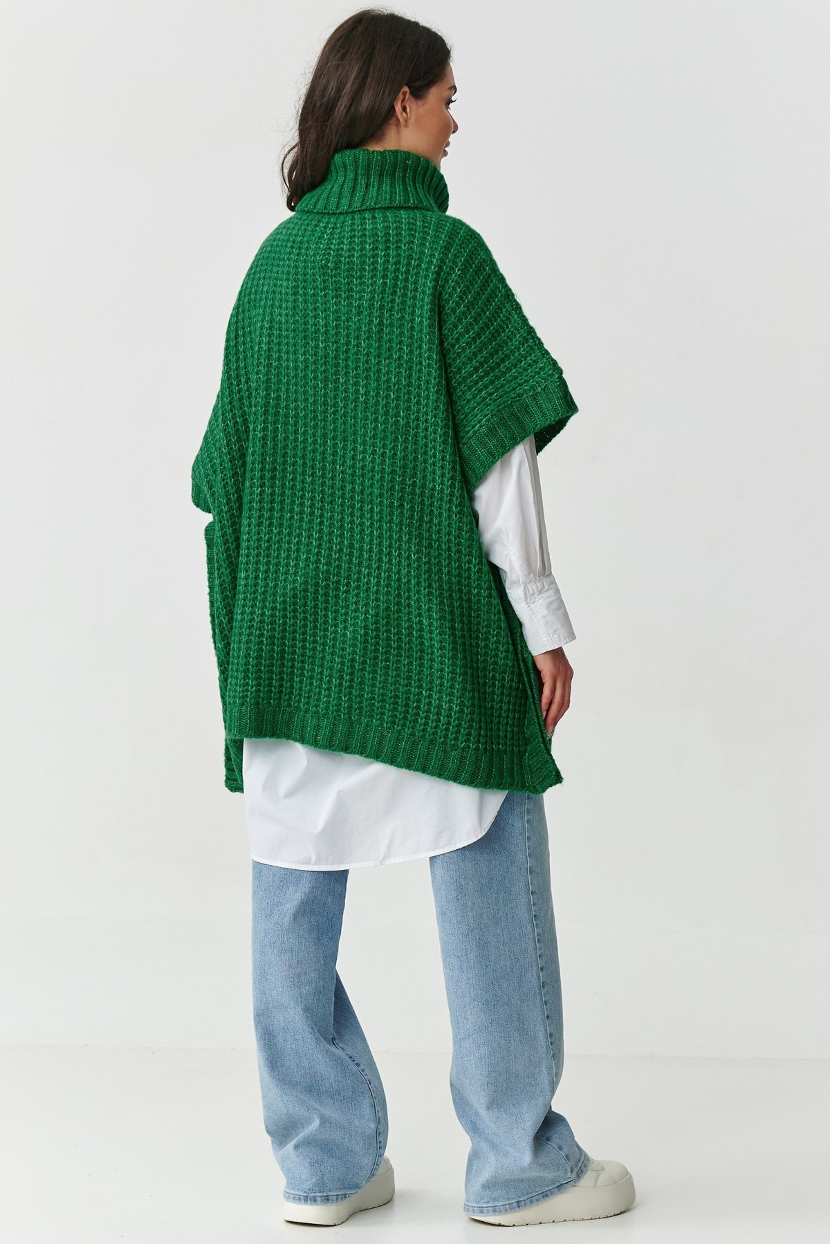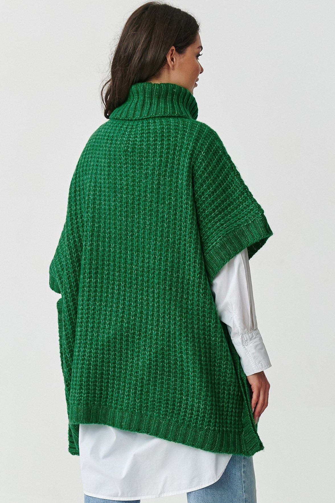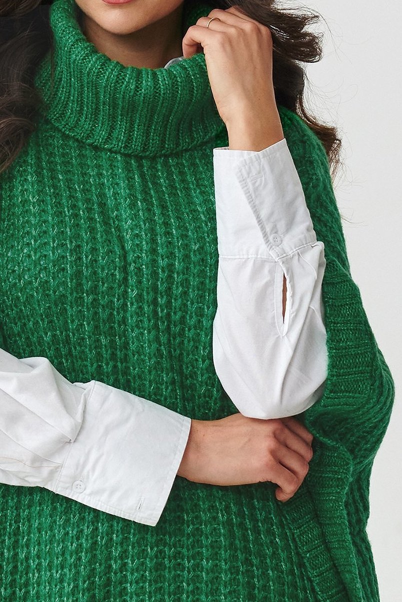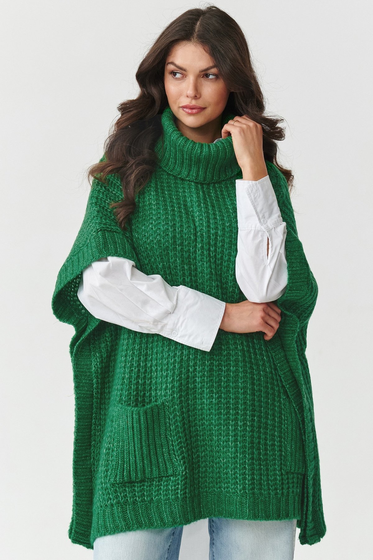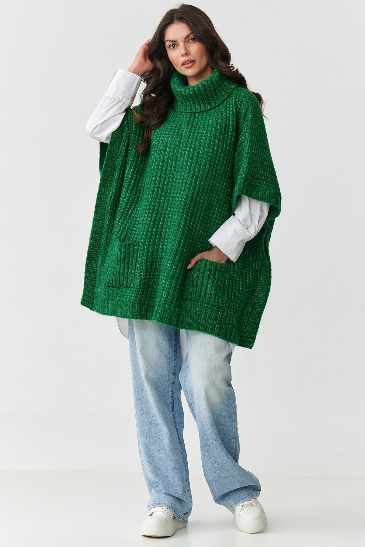 Odhalte tento výjimečný dámský svetr v podobě ponča, které v sobě spojuje módní design a neobvykle komfortní střih. Volný oversize střih s rukávy dlouhými k loktům a vysokým, volným límcem, krásně zahalí postavu a dodá ji nejen příjemné teplo, ale i žádoucí šmrnc. Praktické ,velké kapsy na přední straně svetru dodávají celku casual charakter a zaručují, že se tento kousek bude hodit pro každodenní nošení, ale doplní i elegantnější outfity. Rukávy i spodní lem jsou zakončeny úzkou manžetou. Pončo je vyrobeno ze směsice vláken akrylu, polyestru, vlny a polyamidu. Díky tomu je perfektně měkké, příjemné na dotek a zároveň pevné a odolné proti vytahání. Tlustý úplet dodává celku speciální charakter, což z něj tvoří stylový doplněk pro podzimní i zimní outfity. Nadčasové, moderní barvy se hodí ke všemu. Světle béžová představuje klasiku hodící se ke všemu, tmavě zelená je výrazná a elegantní, hnědá zase příjemně teplá a smyslná a grafitová moderní i univerzální. Pokud hledáte svetřík, který bude praktický i stylový zároveň - tohle je trefa do černého! Krásně vynikne s džínami, leginami nebo i klasickou košilí jako efektní, vrstvená stylizace. Vsaďte na teplo, pohodlí a nadčasovou eleganci - vyberte si tento kousek s rolákem a kapsami, který se rychle stane jedním z nejoblíbenějších prvků vašeho šatníku.