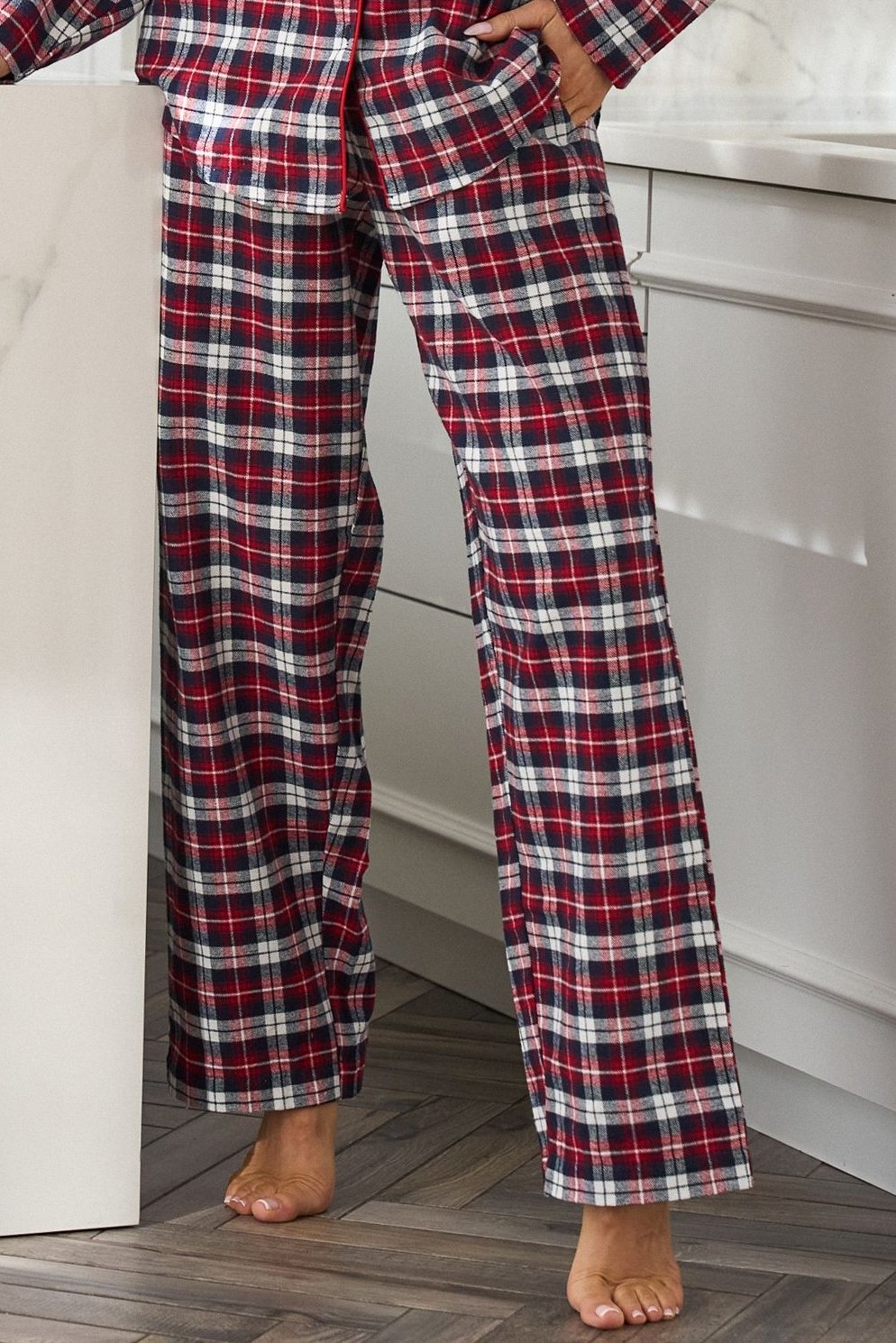 Celé pyžamo je v dlouhém provedení s nadčasovým kostkovaným vzorem, který si v oblasti módy vždy najde své místo.