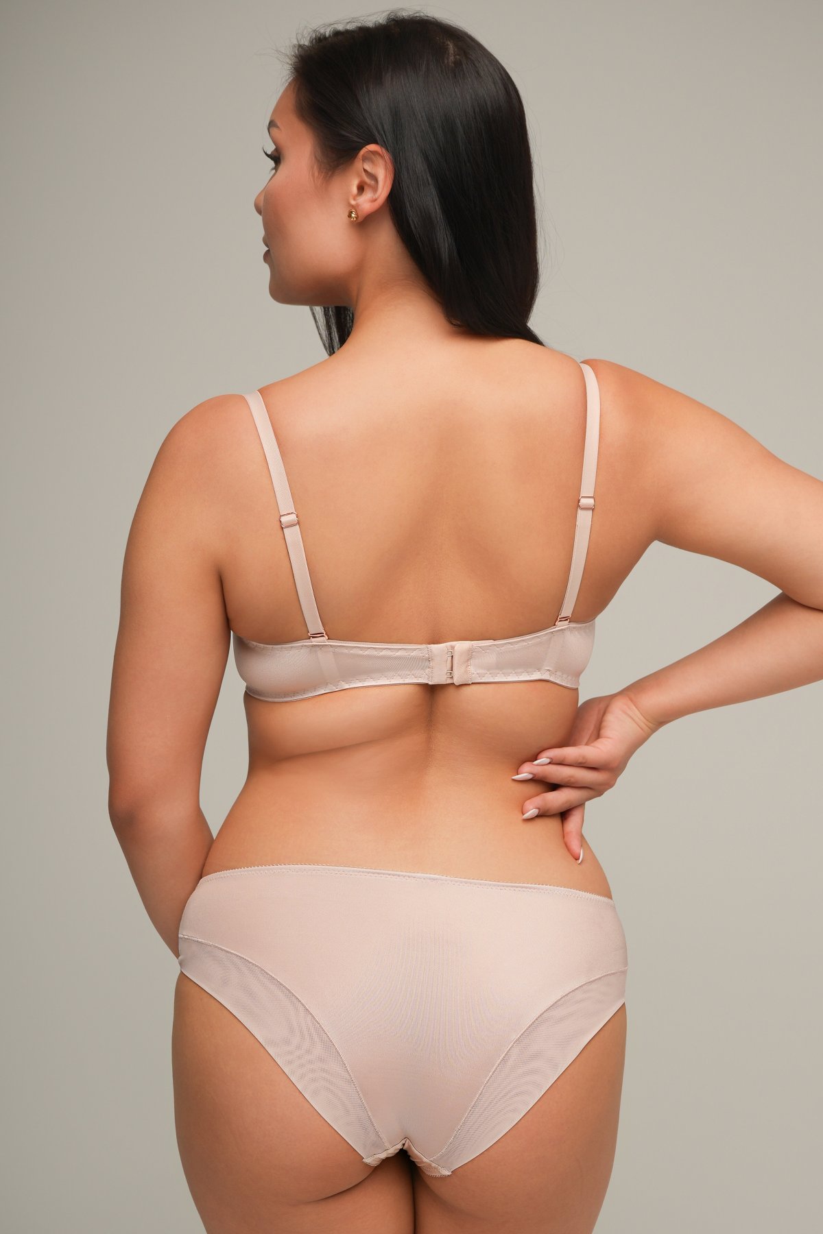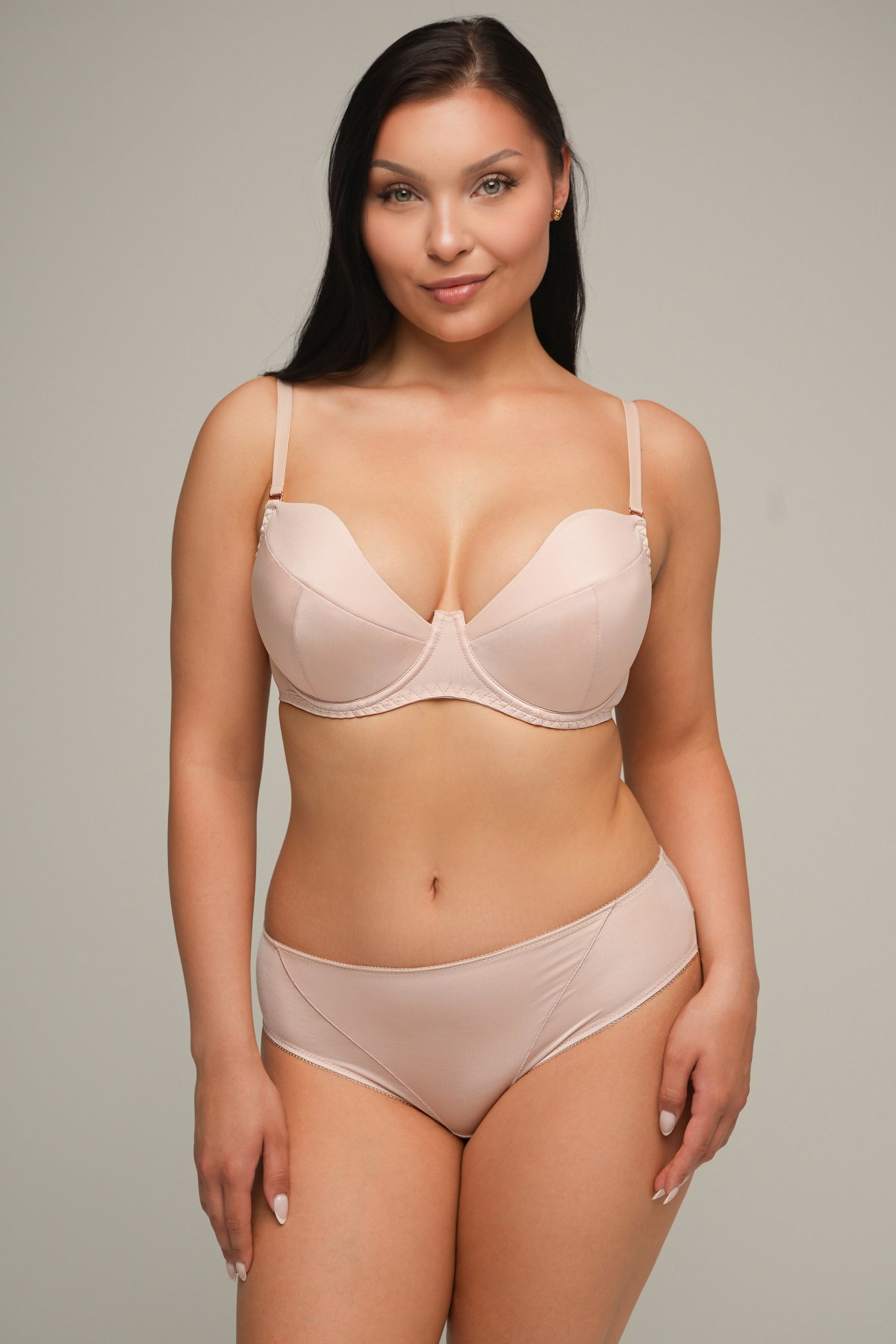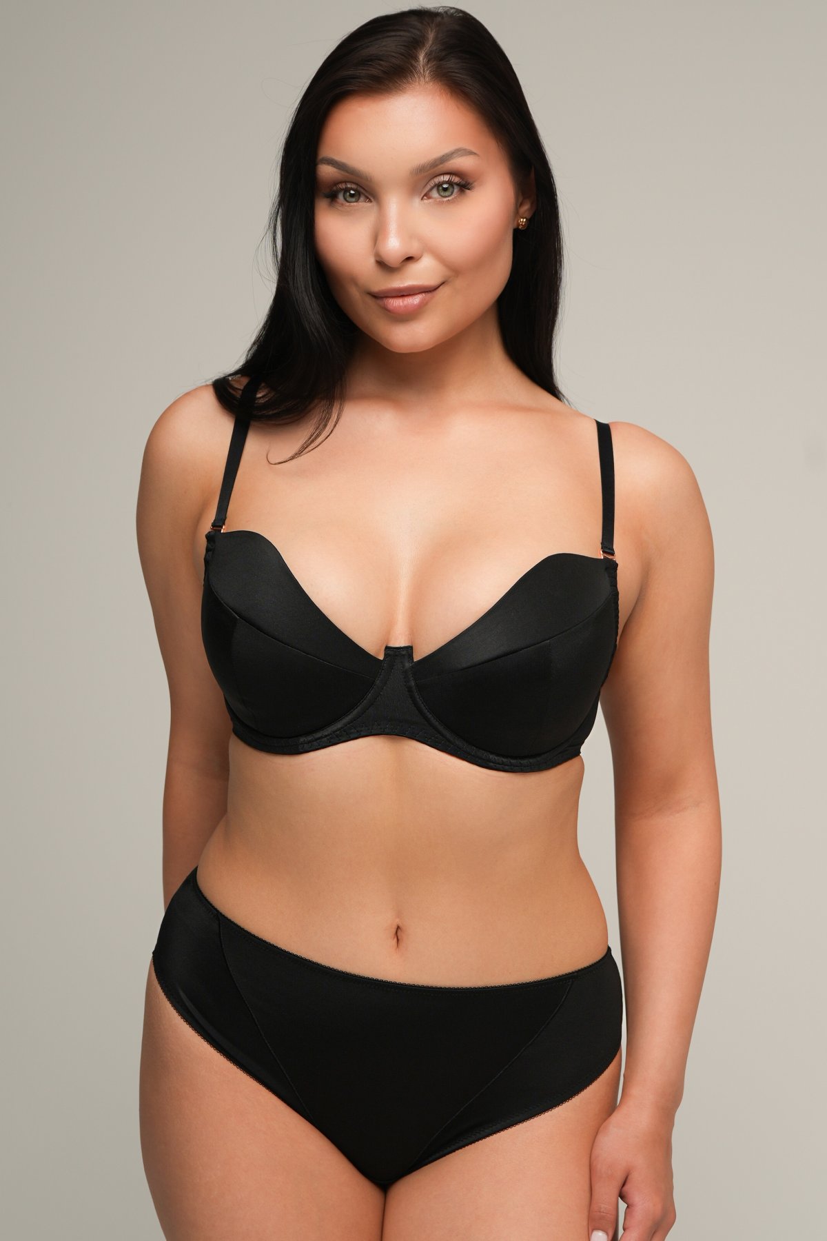 Hladké mikrovlákno dodává modelu minimalistický vzhled, precizní střih košíčků s push-up efektem krásně tvaruje poprsí a zvýrazňuje dekolt. Vyjímatelné vycpávky umožňují přizpůsobit objem podle potřeby – od přirozeného tvaru až po výraznější efekt.
