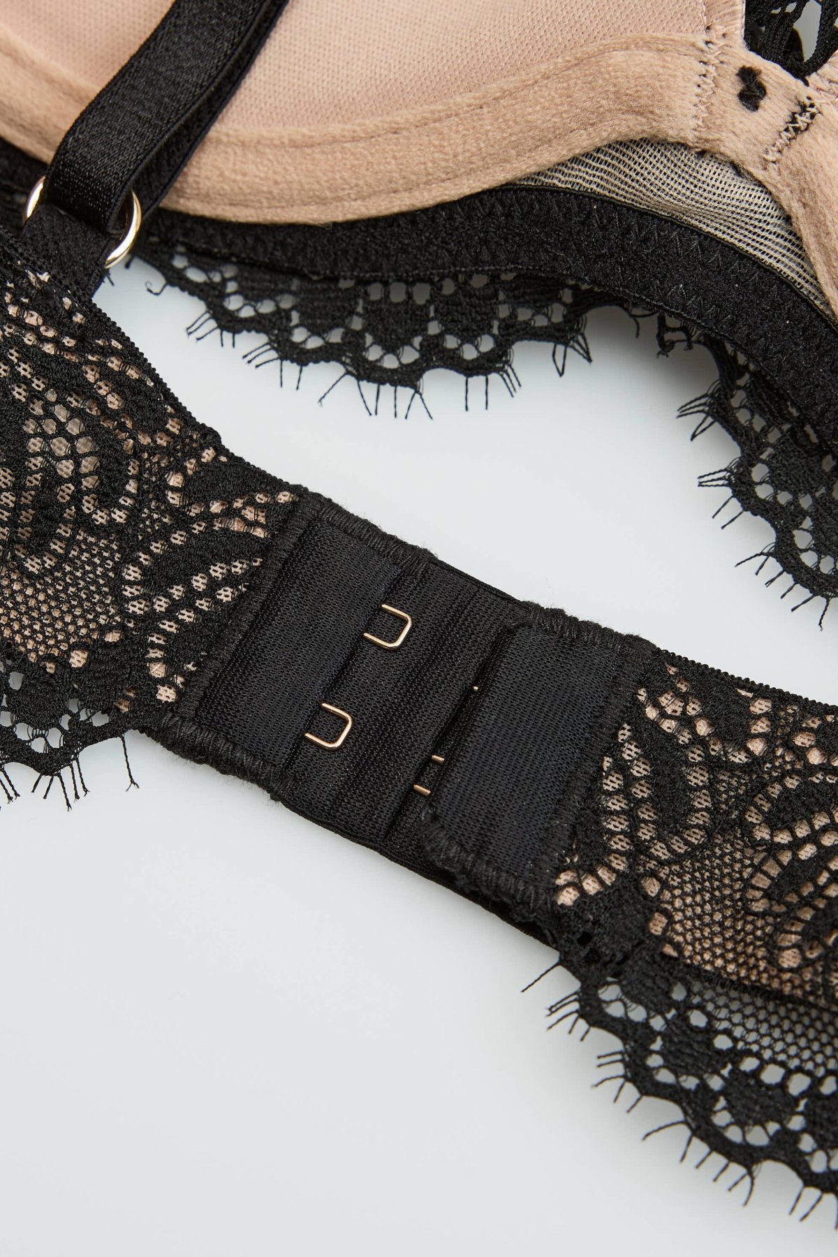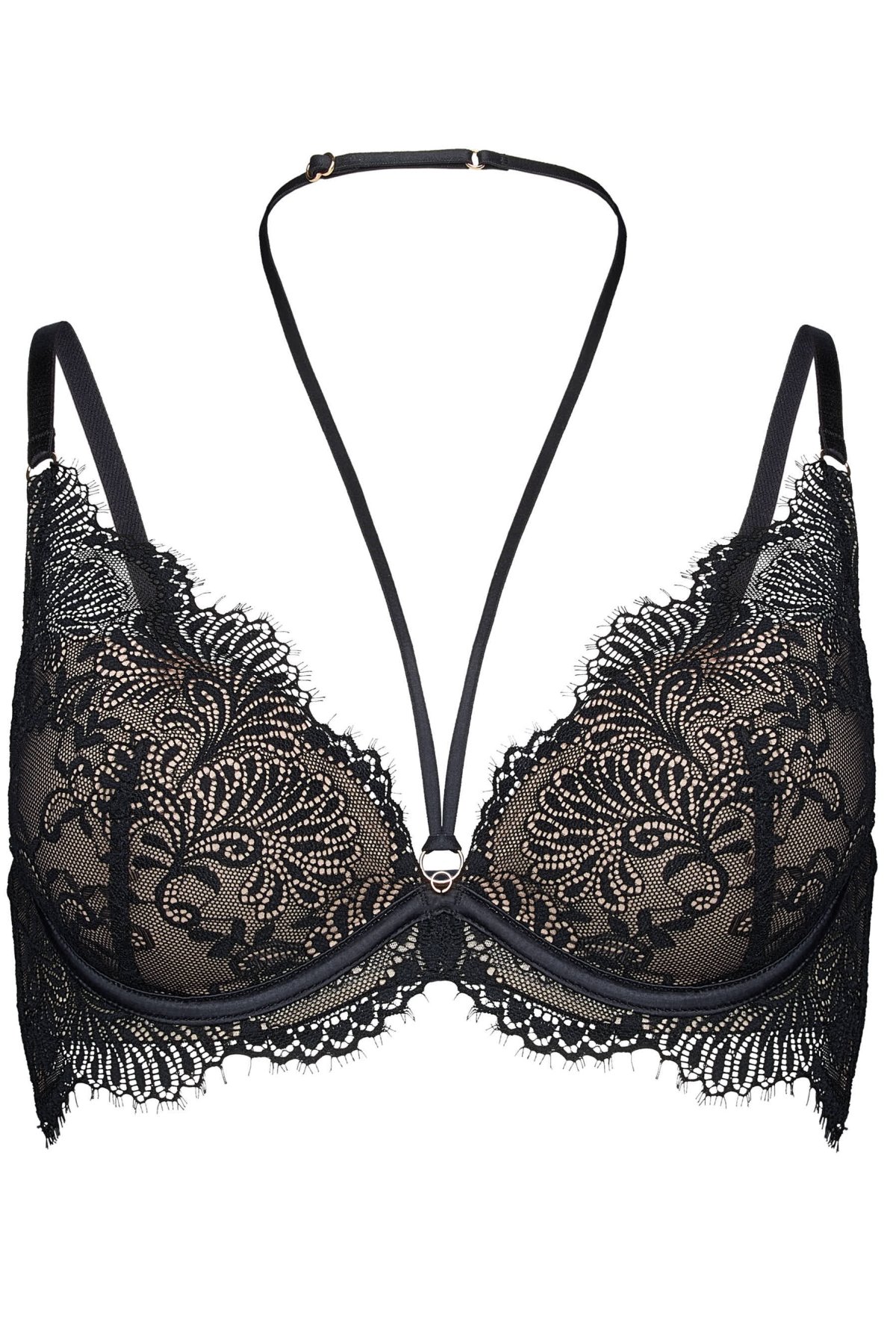 Konstrukce plunge se hodí pod hlubší výstřihy do tvaru písmene V a pomáhá vytvořit plnější, souměrnější linii poprsí. Pevně všité vycpávky jemně přidávají objem, zatímco kostice drží tvar a zajišťují stabilní oporu při nošení. Krajkový povrch působí elegantně a dodává modelu výraznější, večerní charakter. Ramínka jsou snadno regulovatelná, zapínání řeší klasické háčky.