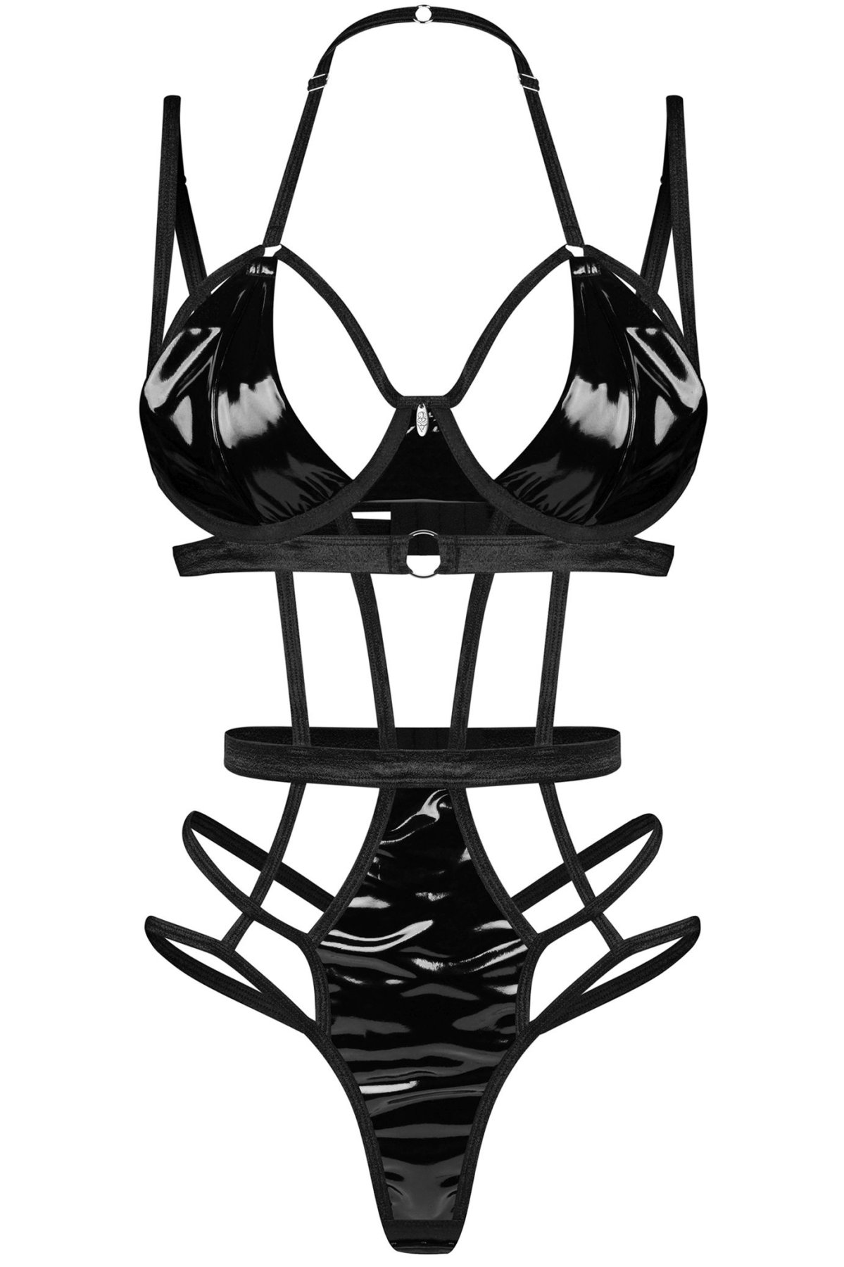 Body Keira Lise Teddy je odvážný kousek, který kombinuje lesk latexového efektu s elegancí propracovaných detailů.