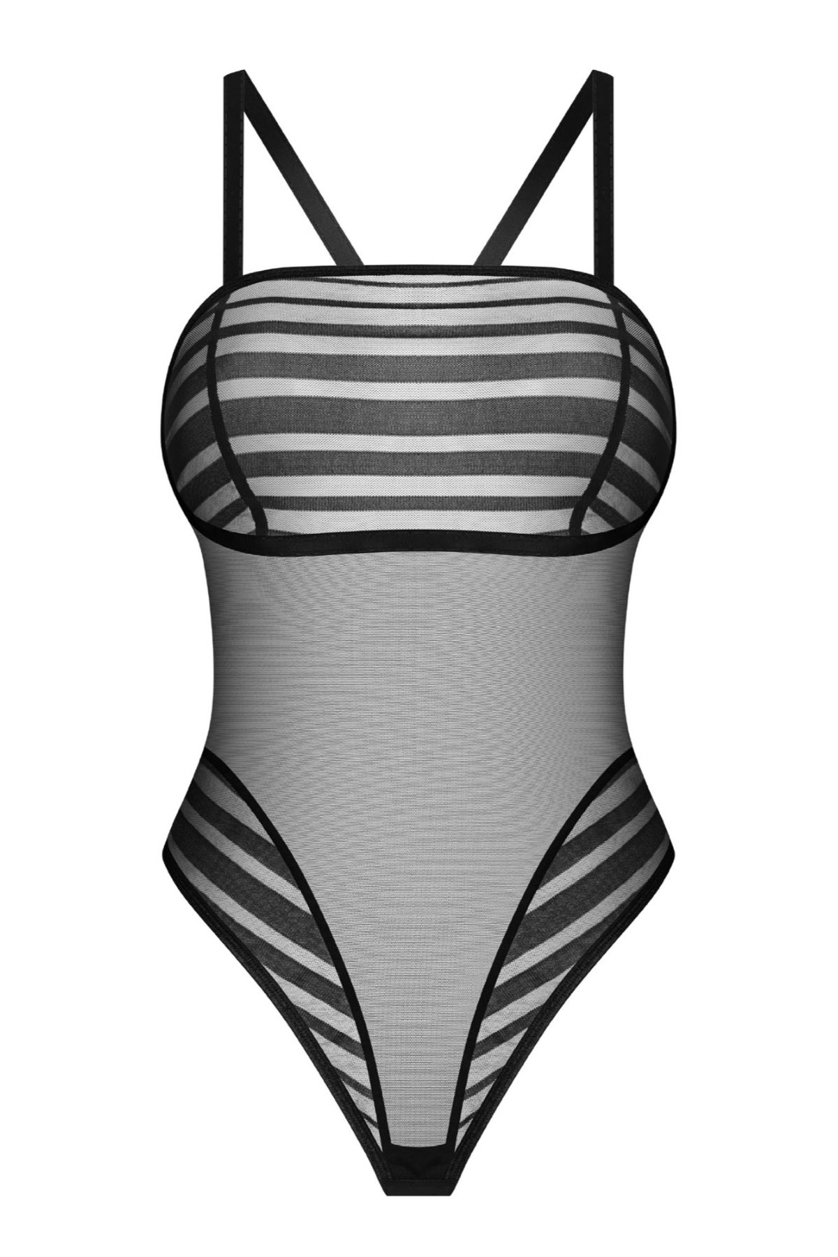 Body Lune Bellis je elegantní kousek, který zvýrazní křivky bez zbytečných ozdob. Transparentní materiál jemně obepne tělo jako druhá kůže a odhalená záda dodají vzhledu odvážný, ale stále sofistikovaný nádech. Výrazné kontrastní pásky na biustu a bocích přitahují pozornost, opticky formují siluetu a krásně podtrhnou pas i boky. Díky nastavitelným ramínkům, která se na zádech kříží, sedí body přesně tam, kde má – a drží pohodlně i při delším nošení. Skvěle funguje jako svůdné prádlo na speciální chvíle, ale klidně i jako dominantní prvek večerního outfitu pod sako nebo s vysokým pasem. Navrženo v EU a bez obsahu niklu pro větší komfort citlivé pokožky.