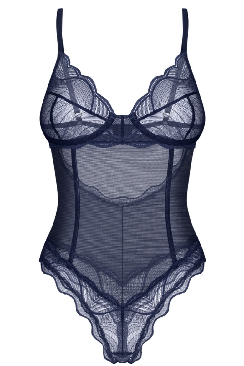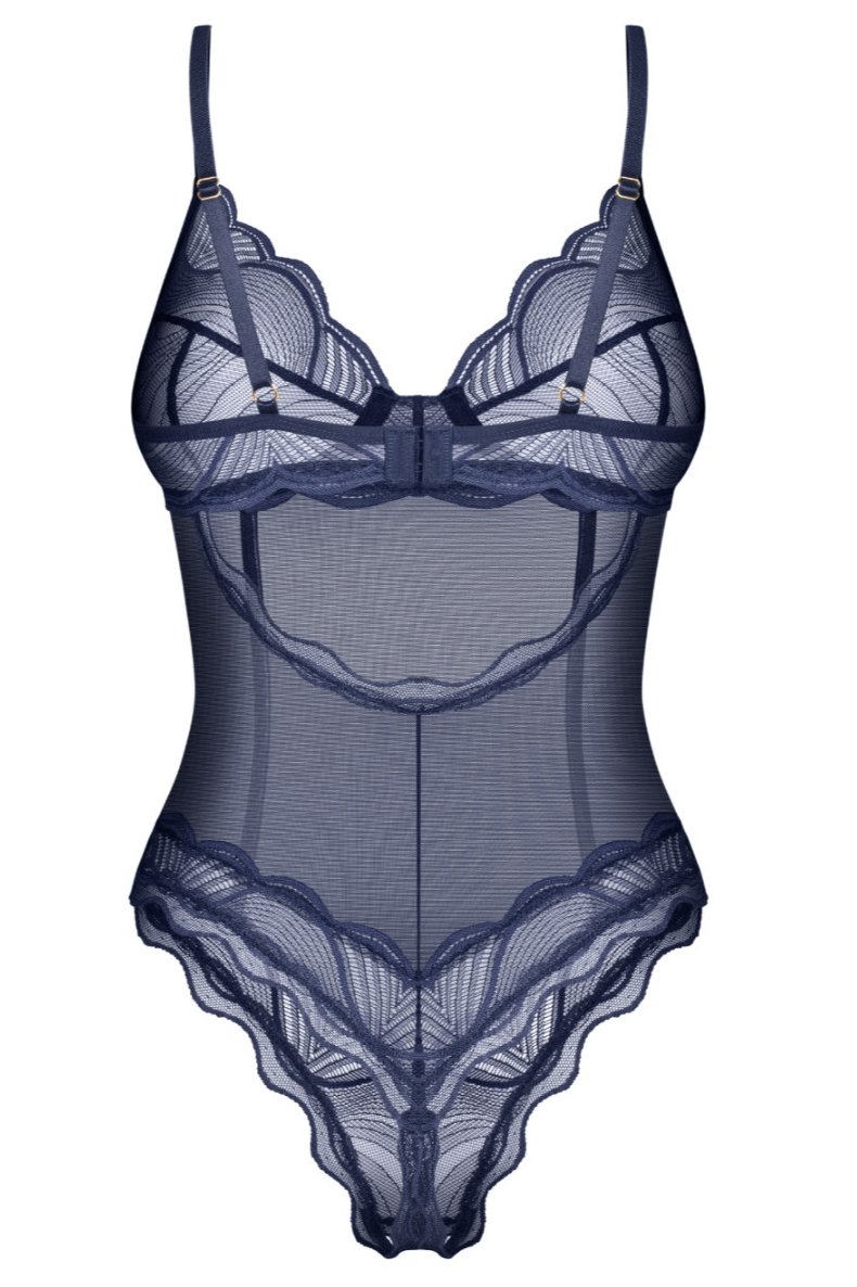 Luxusní body MP Blue z jemného meshe a elastické krajky s organickým vzorem