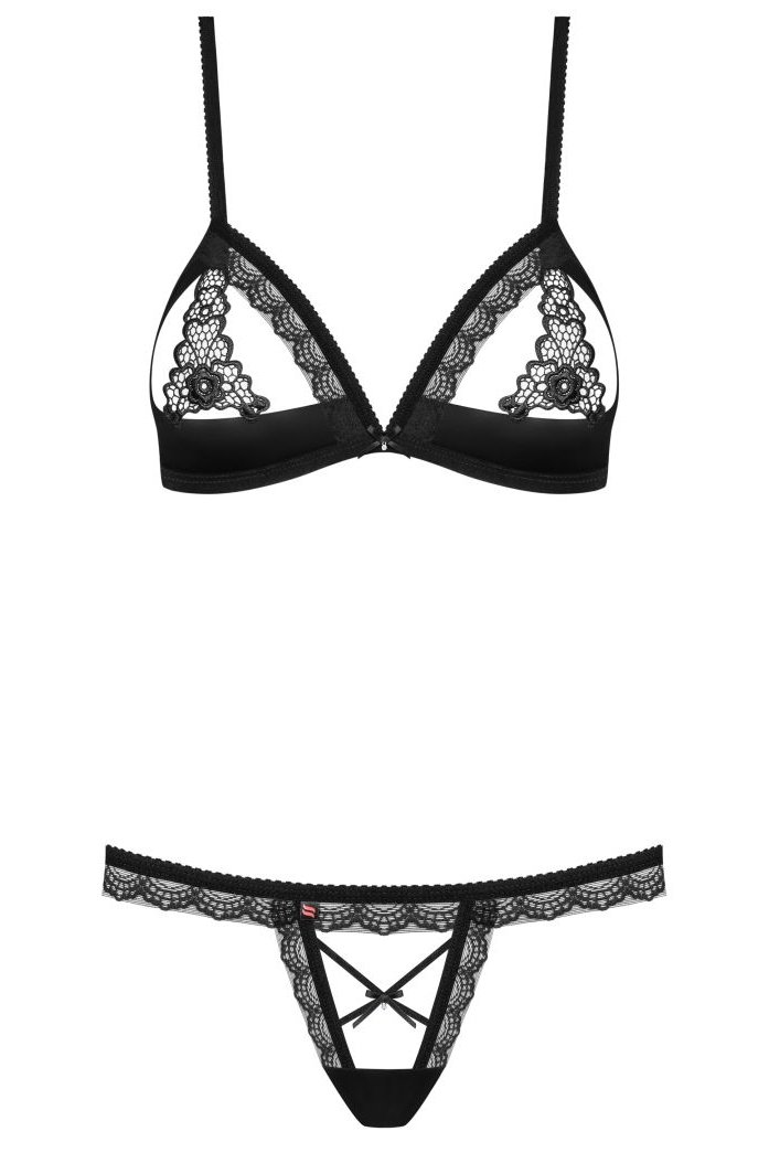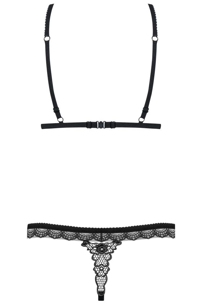 Toužíte po prádle, které zvýrazní vaše křivky a přinese do ložnice nádech svůdné hry? Je stvořen pro ženy, které se nebojí ukázat svou smyslnost. Otevřená podprsenka s krajkovými detaily svůdně rámuje poprsí, zatímco tenká ramínka umožňují dokonalé nastavení a pohodlné nošení. Tanga s ozdobnou mašličkou vpředu a rafinovaným střihem na zadní straně zvýrazní boky i zadeček a zaručí nezapomenutelný dojem. Hebký, elastický materiál se jemně přizpůsobí tělu, čímž podtrhne ženské křivky a dodá pocit sebevědomí. Tento odvážný, přesto elegantní komplet je ideální volbou pro výjimečné chvíle, kdy chcete zůstat v paměti.