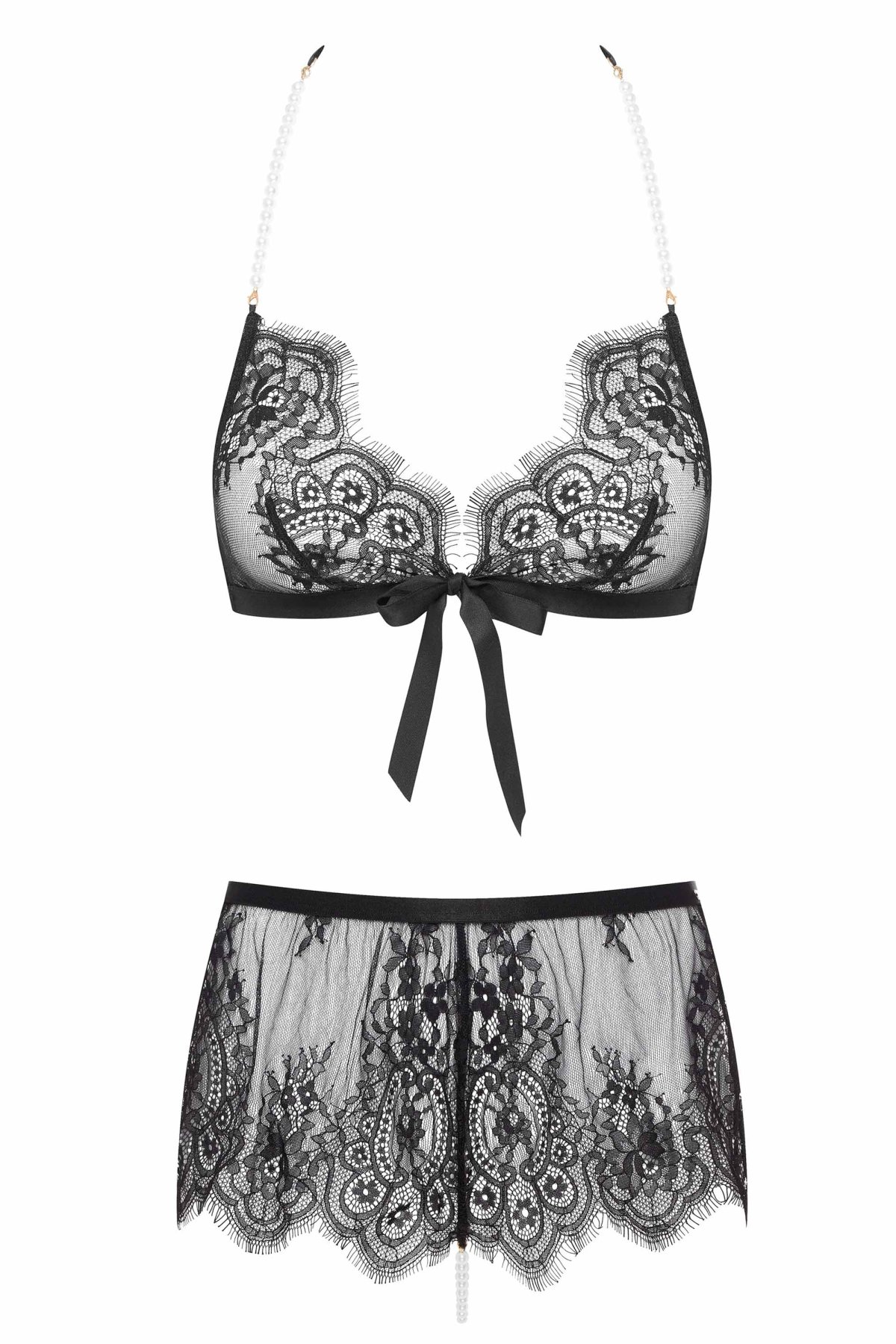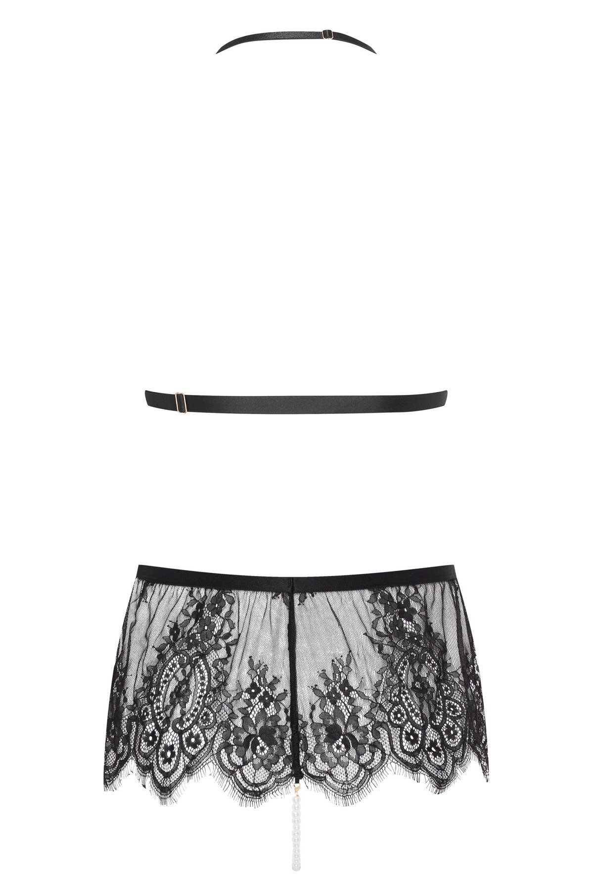 dvoudílný erotický komplet Perhaps měkká podprsenka s krajkou a smyslnými průstřihy choker s perlovým řetízkem…