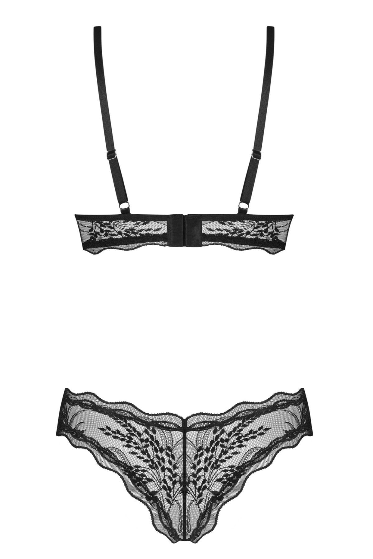 Set Obsessive Perisia z kolekce Exquisite působí elegantně, romanticky a přitom svůdně. Průsvitný mesh vytváří lehký, rafinovaný vzhled, zatímco výrazná výšivka na košíčcích i kalhotkách přitáhne pozornost k detailům a zvýrazní křivky. Podprsenka s trojúhelníkovým střihem krásně otevře dekolt a díky zvlněným lemům působí jemně a luxusně. Tanga navazují stejným motivem a nechají vyniknout siluetě bez zbytečné robustnosti. Výsledkem je prádlo, které vypadá prémiově už na první pohled a zároveň se skvěle hodí do sladěného setu pro chvíle, kdy chcete mít styl i sebevědomí na maximum.