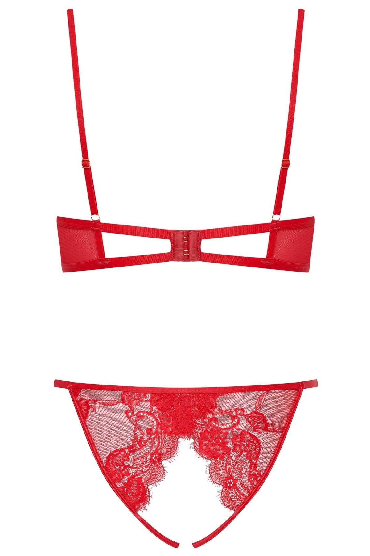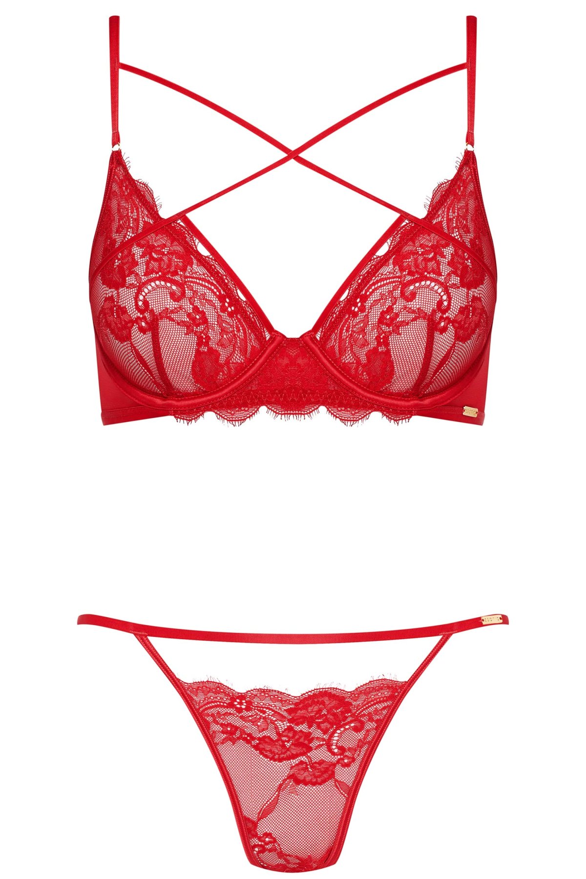 Komplet Radiant je ztělesněním ženské síly, vášně a sebevědomí. Žhavě červená krajka se smyslně vine po těle, odhaluje přesně tolik, kolik je potřeba, a probouzí fantazii.