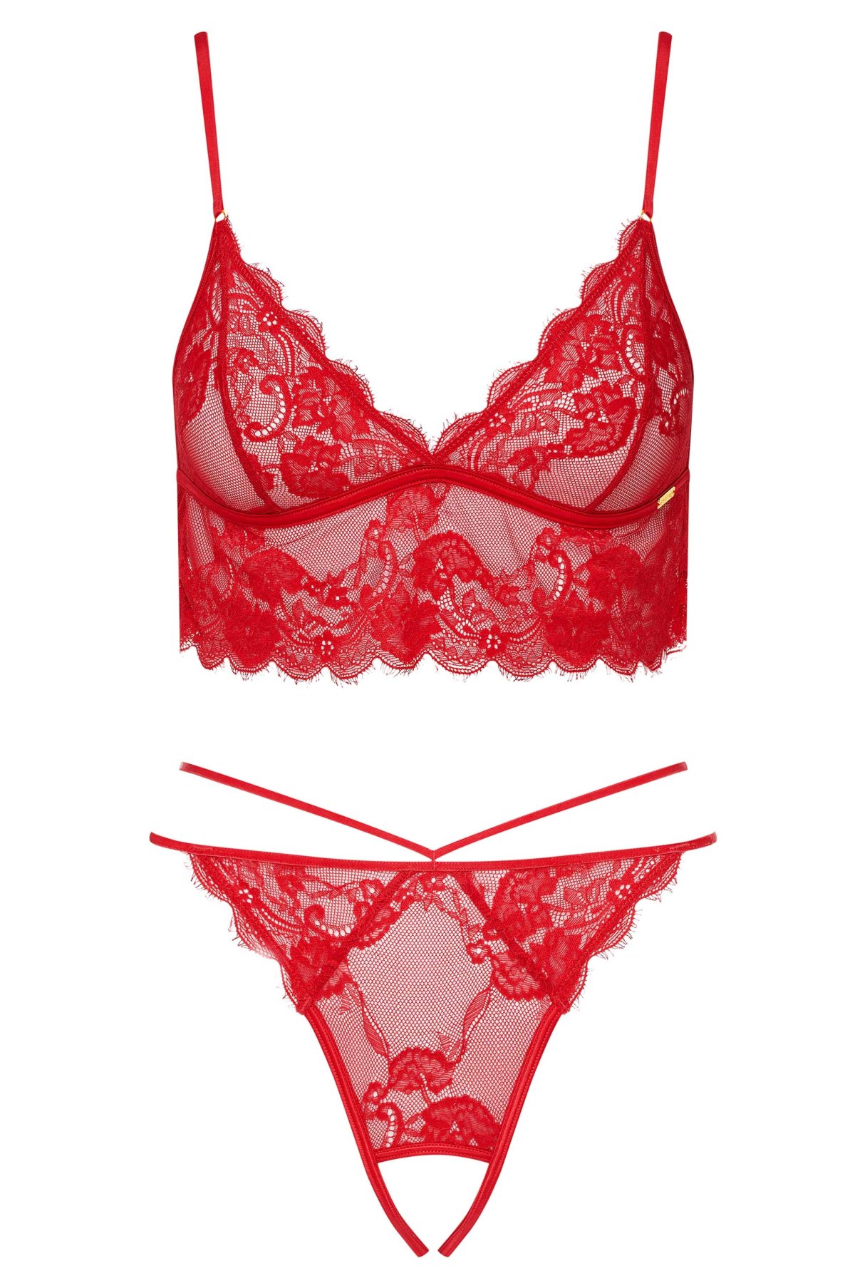 Erotický komplet Risky v ohnivě červeném odstínu je stvořen pro ženy, které se nebojí projevit svou ženskost a vášeň. Jemná krajka s průsvitnými prvky dokonale zvýrazňuje siluetu a podtrhuje přirozenou krásu těla.