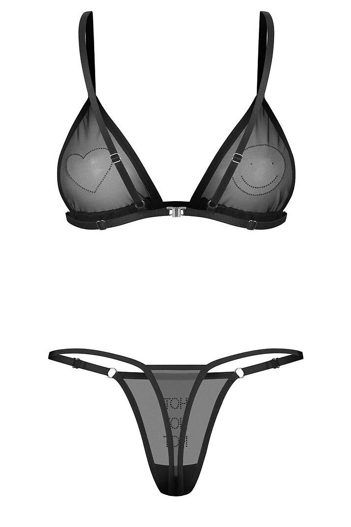 Černý set spodního prádla z transparentního recyklovaného materiálu působí lehce, moderně a velmi žensky. Jemná síťovina se přizpůsobí postavě a vytváří přirozený, vzdušný efekt, který nechá vyniknout siluetě. Podprsenka je doplněná decentními lesklými detaily, které dodávají modelu hravý a rafinovaný nádech. Díky nastavitelným ramínkům si snadno upravíte padnutí podle potřeby, zatímco zapínání na zádech přispívá k pohodlnému nošení. Minimalistické provedení dělá z tohoto kompletu výrazný, ale stále čistý kousek, který se hodí jak pro běžné nošení, tak pro chvíle, kdy chcete sáhnout po něčem odvážnějším.