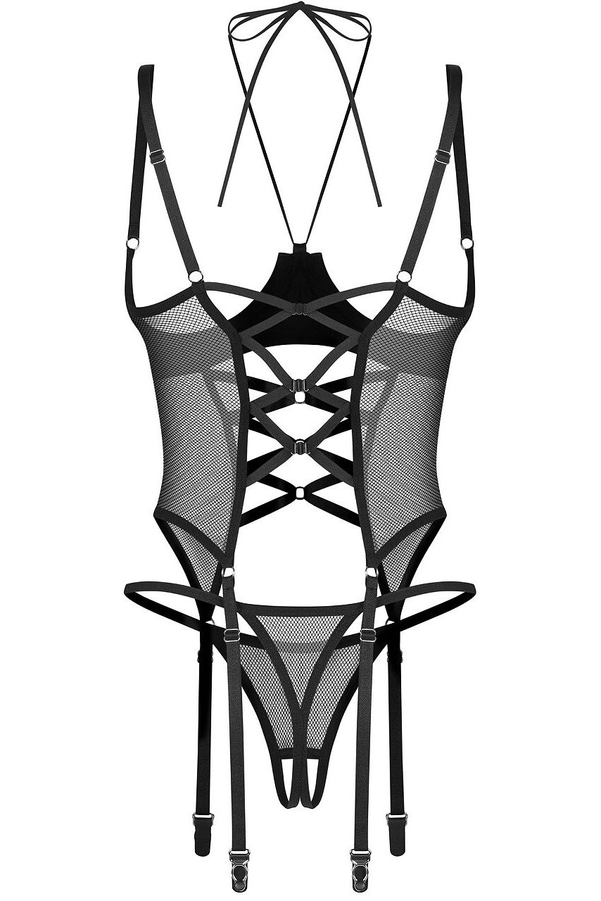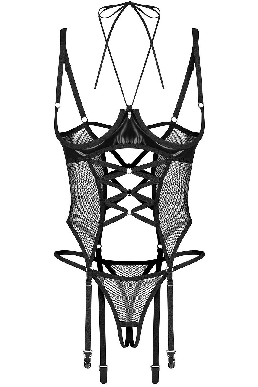 Odvážný, smyslný a naprosto neodolatelný – tento komplet z kolekce Dominna je stvořen pro ženy, které chtějí zaujmout každým detailem. Korzet z lesklé imitace kůže v kombinaci s průhlednou síťovinou elegantně obepíná tělo a opticky ho tvaruje. Otevřené košíčky s kosticemi dodávají poprsí svůdný tvar, zatímco šněrování vpředu i na zádech podtrhuje ženské křivky a přidává nádech dominance. Nastavitelná ramínka a podvazky umožňují perfektní přizpůsobení postavě i stylu. Součástí setu jsou otevřená tanga, která celý look posouvají do ještě odvážnější roviny. Tento model je ideální pro sebevědomé ženy, které se nebojí experimentovat a vychutnávat si sílu svádění.