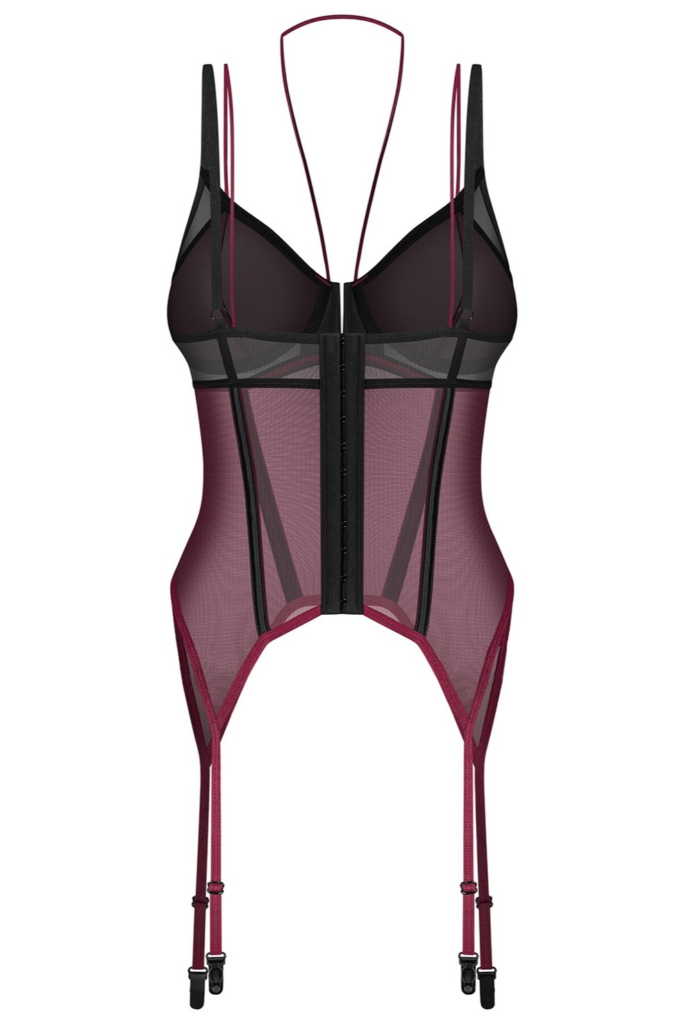 Korzet Parisel je výrazně ženský kousek, který spojuje luxusní vzhled s promyšleným střihem. Průsvitná látka jemně odhaluje kůži, zatímco přiléhavý střih krásně tvaruje pas a zvýrazní poprsí. Košíčky s kosticemi a podšitím drží tvar, poskytují pohodlí a zároveň vytváří atraktivní dekolt. Svislé kostice opticky zeštíhlují a dodávají korzetu elegantní, „corset“ siluetu. Díky regulovatelným ramínkům a zapínání na zádech si vše snadno nastavíte přesně podle postavy. Integrované podvazky z korzetu dělají hotový základ pro punčochy – ideální na výjimečné večery, romantické chvíle i chvíle, kdy chcete působit sebejistě a neodolatelně.